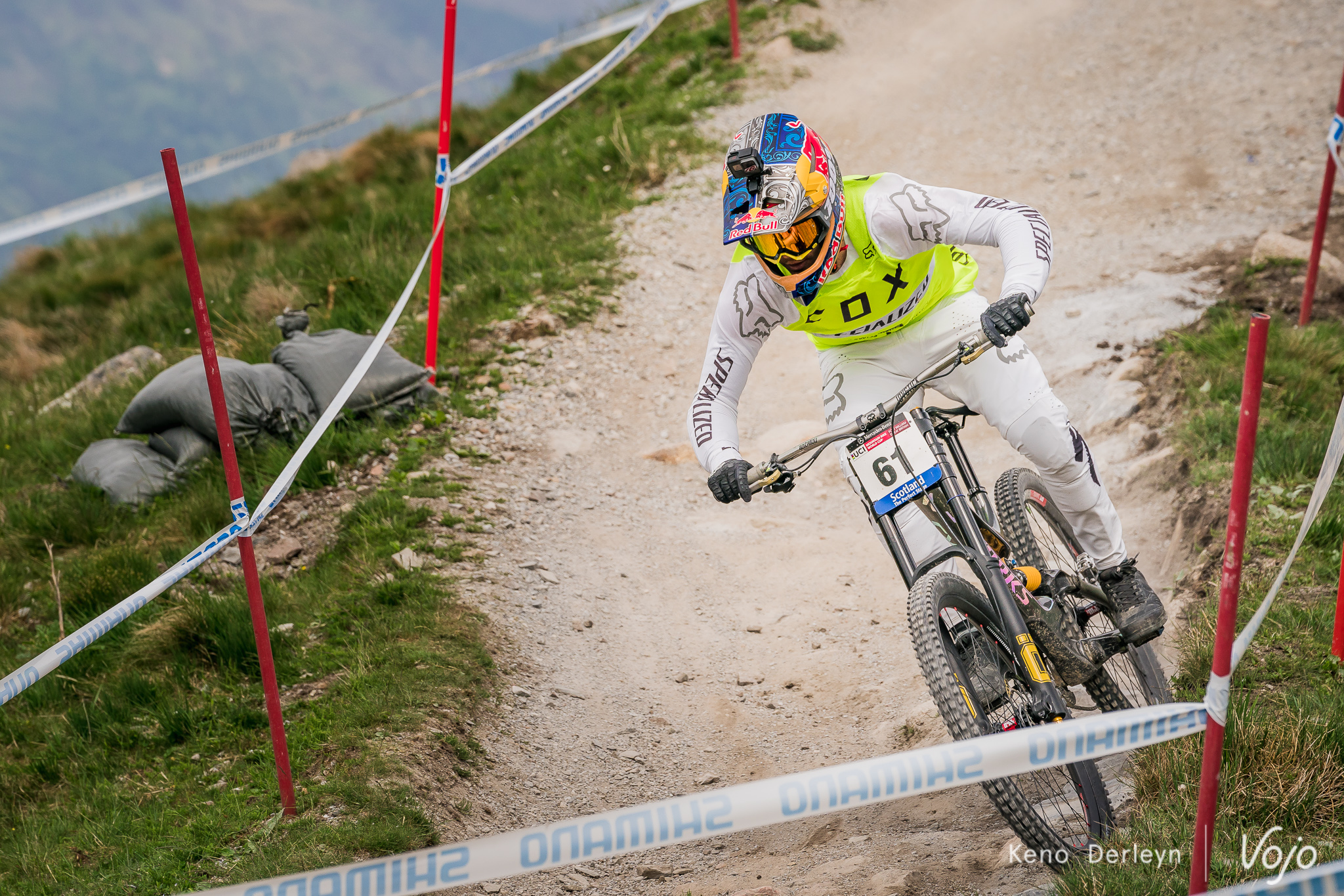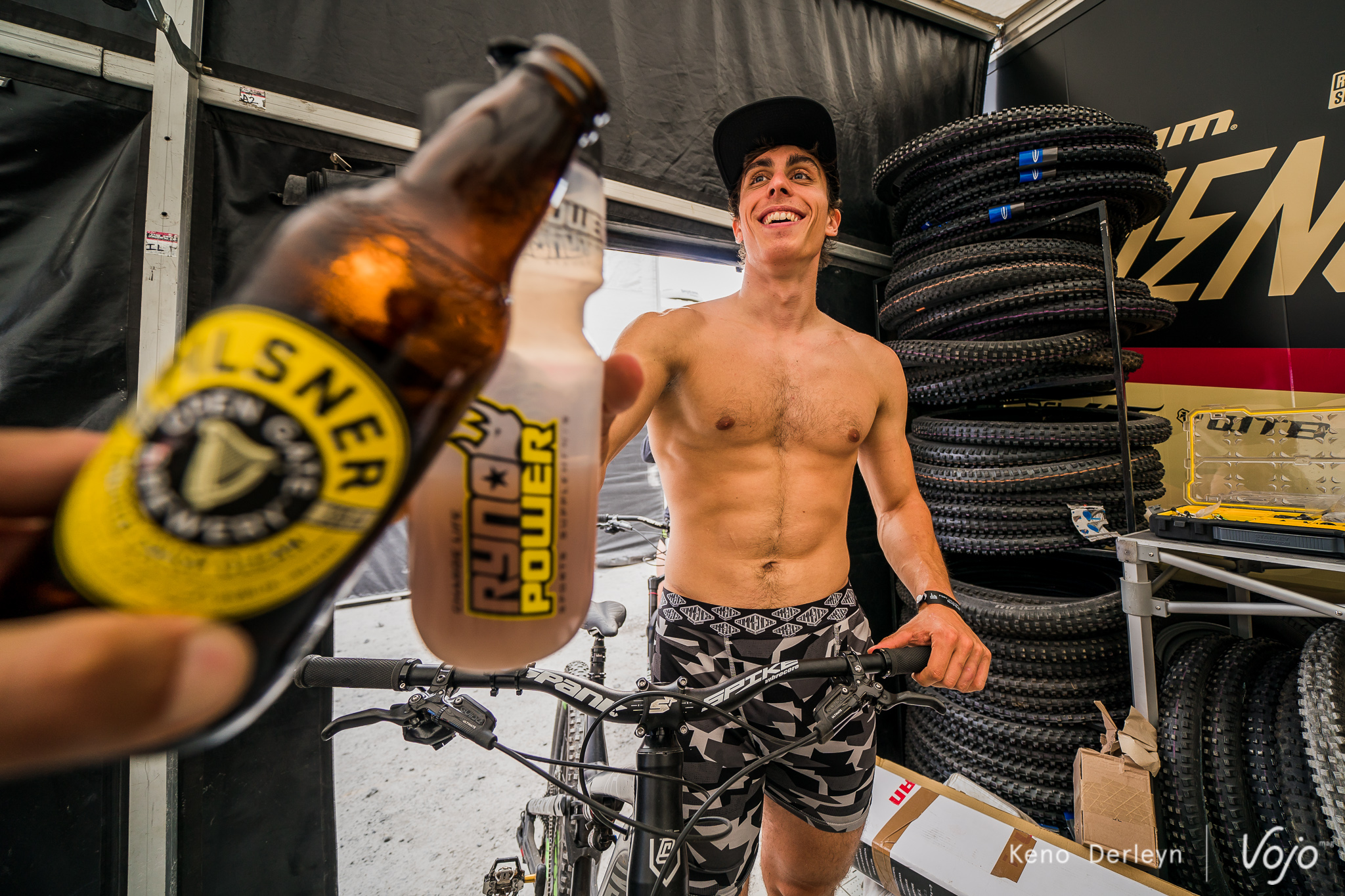 Passons à un autre retour, celui de Loïc Bruni. Lui aussi avait chuté en Croatie en s’abimant le coude et avait à coeur de revenir pour cette manche. On l’a croisé après ses premières runs et il nous disait que son coude ne lui faisait pas plus mal que ça et que ce sont plus les bras, tout simplement, qui sont douloureux : « Mais ça, c’est juste parce que c’est Fort William et que la piste est difficile », rigole-t-il.