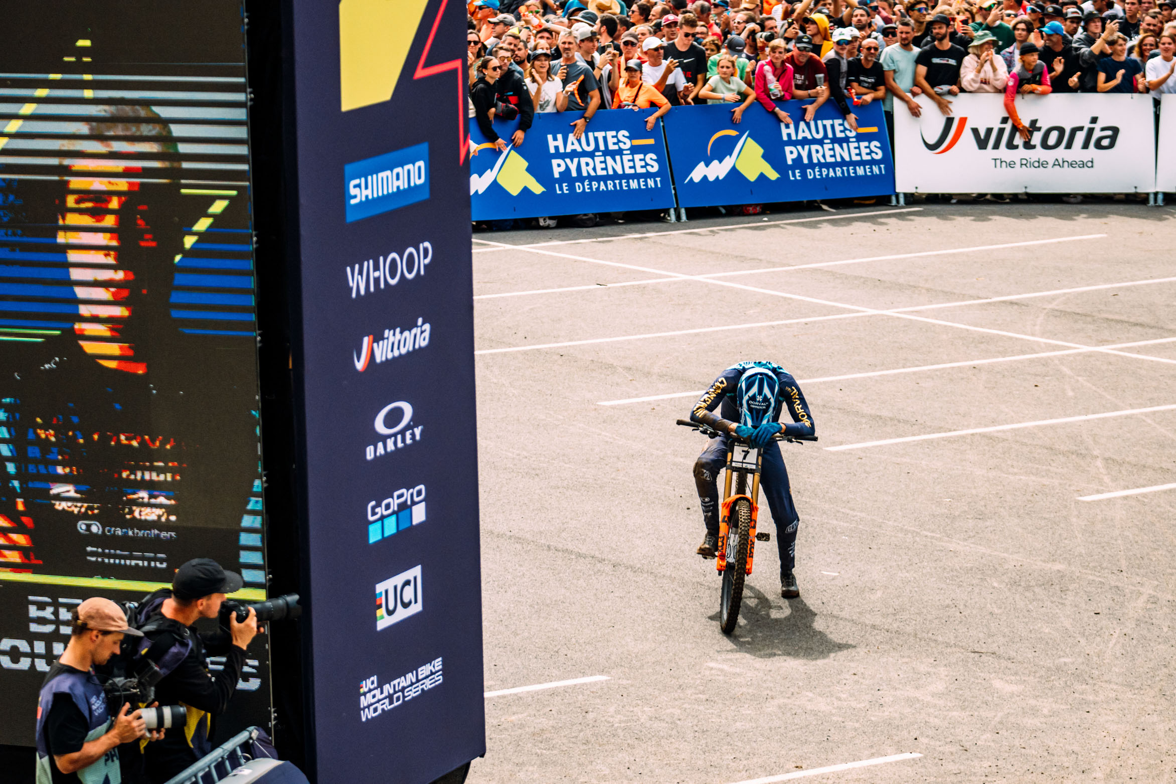 C’est au tour des hommes de s’affronter à Loudenvielle ! Après plusieurs pilotes, c’est finalement Rémi Thirion qui réveillera le public français en début d’après-midi avec son pilotage signature dans la pente et le technique. Beaucoup de précision et de rythme pour le pilote du Giant Factory Off-Road qui s’empare du hot-seat avec autorité devant un public en feu.