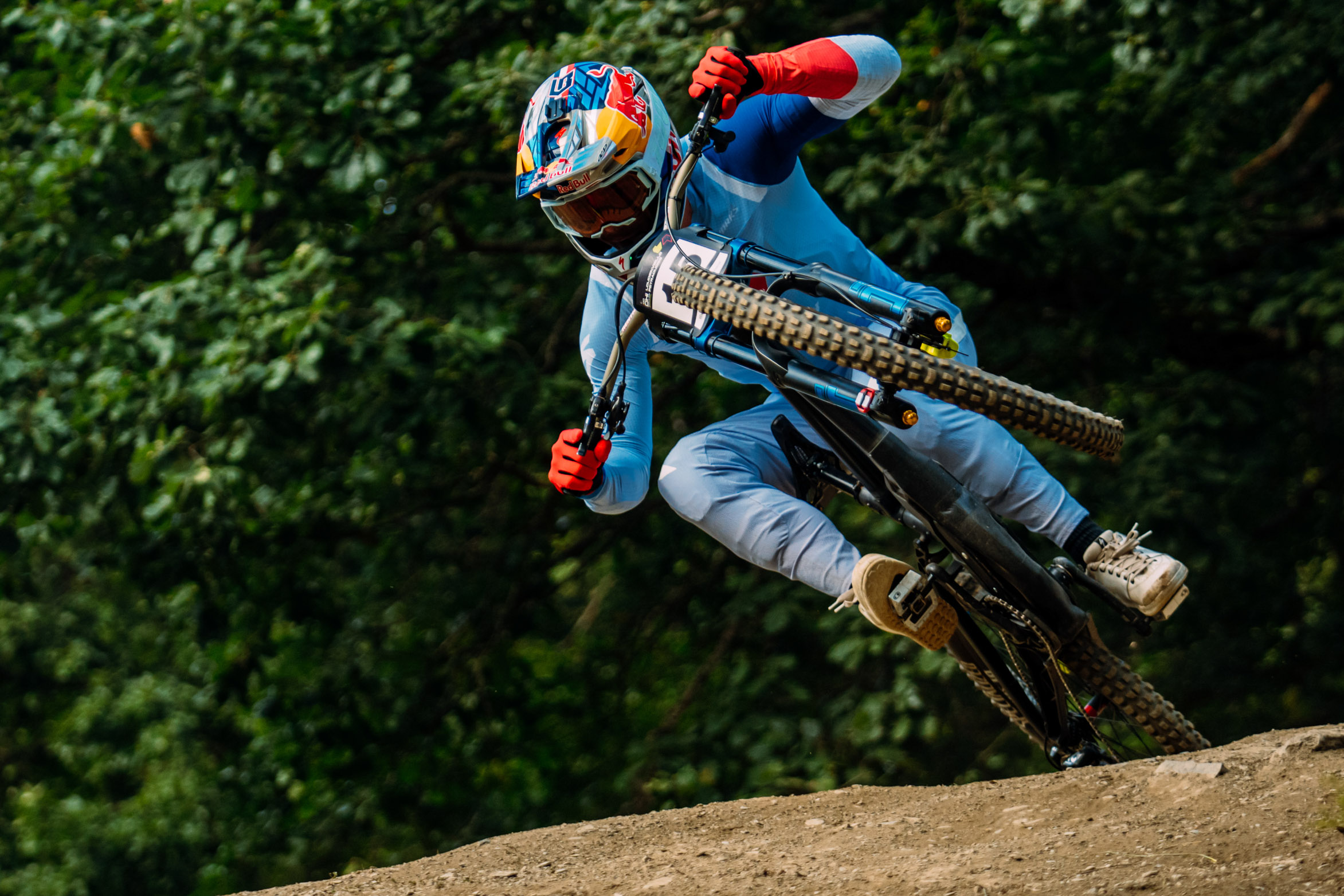 Avec un pilotage très aérien et léger, Laurie Greenland est un des pilotes capables de jouer des coudes avec le trio de Français en tête après la séance de qualifications sur ce technique circuit de Loudenvielle. Le pilote du Santa Cruz Syndicate déjoue les différents pièges de cette piste et vient se placer en 3e place.