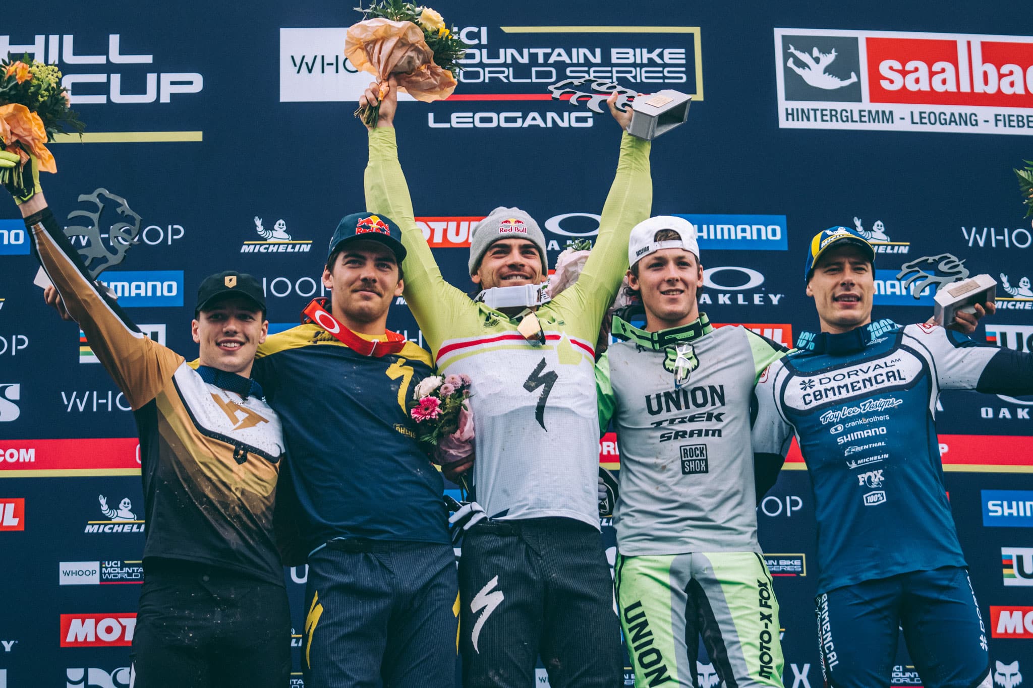 Certes, on pourra toujours reprocher à la piste de Leogang son côté trop « bike park ». Mais les portions rapides et aériennes sont ponctuées de quelques sections pentues et bien techniques, avec leur lot de souches et racines rendues délicates à négocier par la pluie qui s’invite régulièrement le week-end de la course. Ce fut encore le cas cette année d’ailleurs, cette fois dans la nuit avant les finales… Bref, une course qui, quoi qu’on en dise, se montre souvent excitante à suivre. Alors, qui pour succéder à Andreas Kolb et Vali Höll, victorieux à domicile l’année dernière ? Réponses :