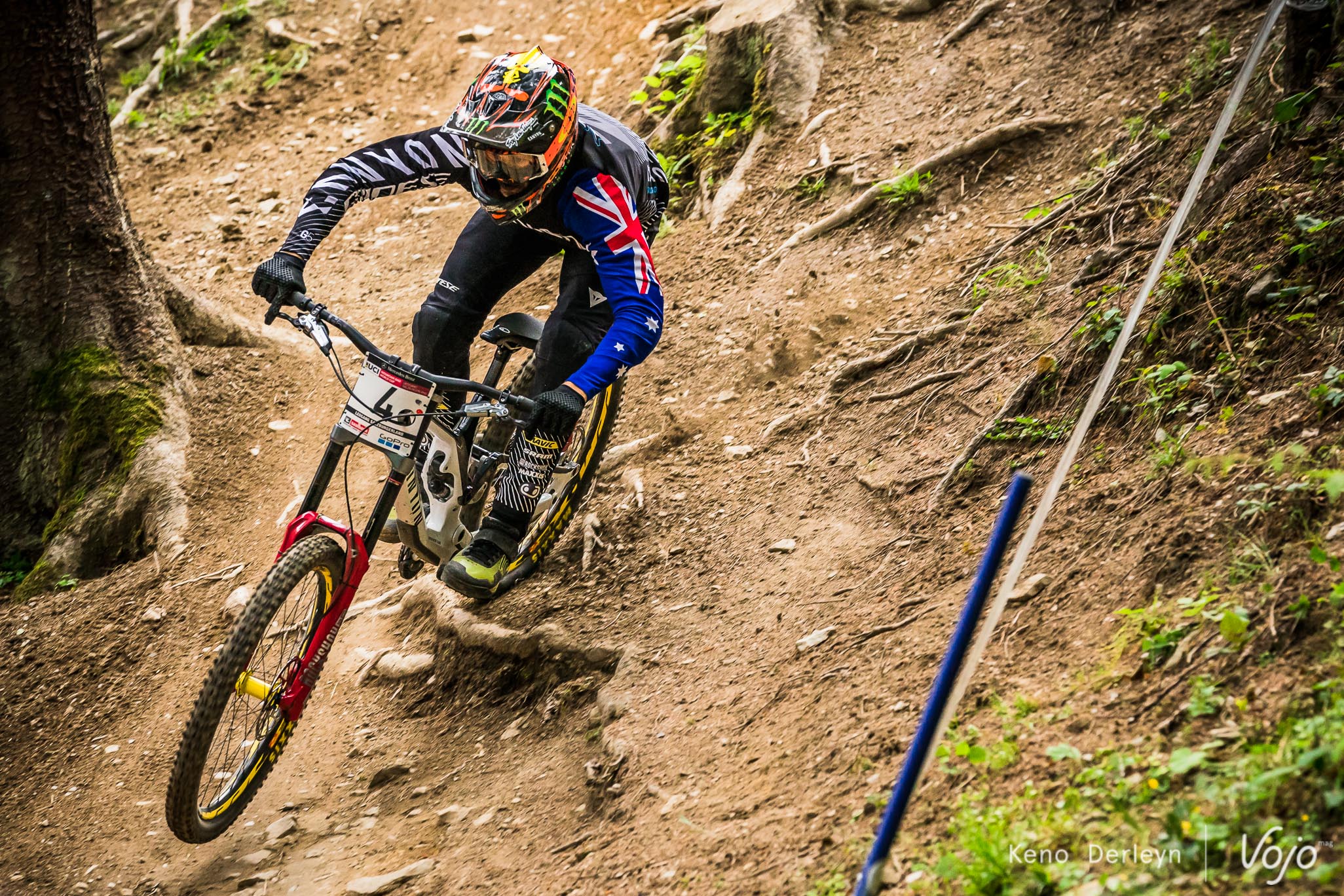 Il termine 42ème et pourtant… il partait peut-être pour remporter sa première victoire de Coupe du Monde. Tout comme à Fort William (où il crève de la roue arrière), Luca Shaw a joué de malchance et cette fois-ci, c’est une chute qui l’empêche de continuer son run comme il le voulait. Après sa course, il était présent sous son stand Santa Cruz Syndicate et tentait de relativiser. Il était d’ailleurs étonné d’être septième au classement général (286 points) malgré ses déboires car selon lui, il a « clairement l’impression d’avoir terminé dernier aux deux dernières manches ». Tiens bon Luca, ça va finir par passer !
