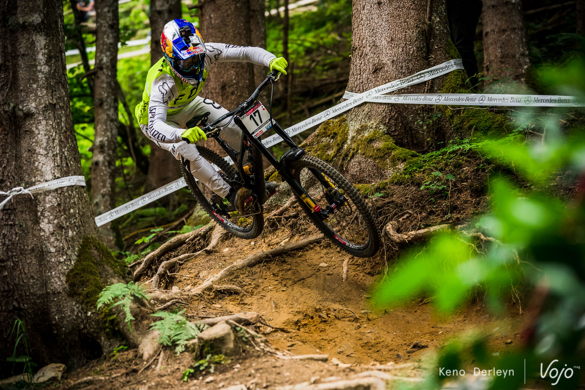 Le récent vainqueur de Fort William, Amaury Pierron se place 7ème à +2.838 secondes : « La piste se creuse à plusieurs endroits et je me suis souvent arrêté pour regarder les différentes lignes. C’est franchement cool à rouler même si pour le moment, c’est dur de trouver la bonne vitesse. »