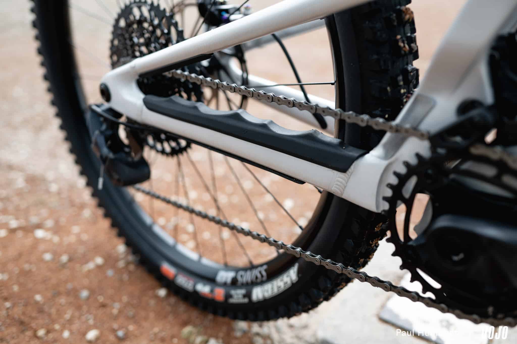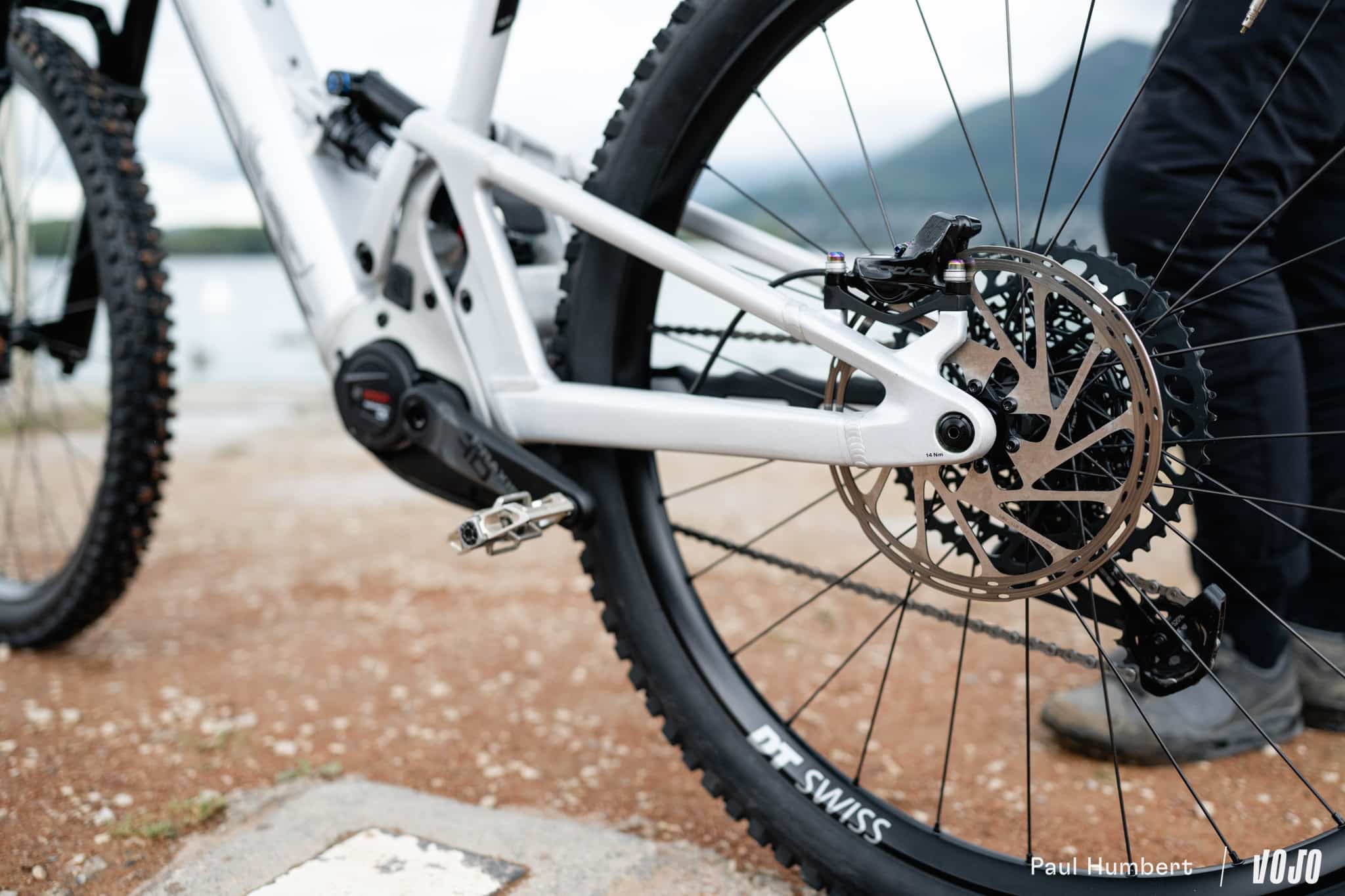 Un ebike n’est pas seulement plus lourd qu’un VTT classique, il est aussi beaucoup plus puissant. Avec l’assistance du moteur, développer 1000 W à la sortie du pédalier n’est plus réservé à une élite très bien entraînée et les 400 ou 500 W, signe d’effort court et intense lorsqu’ils viennent seulement de nos jambes, sont atteints beaucoup plus régulièrement.