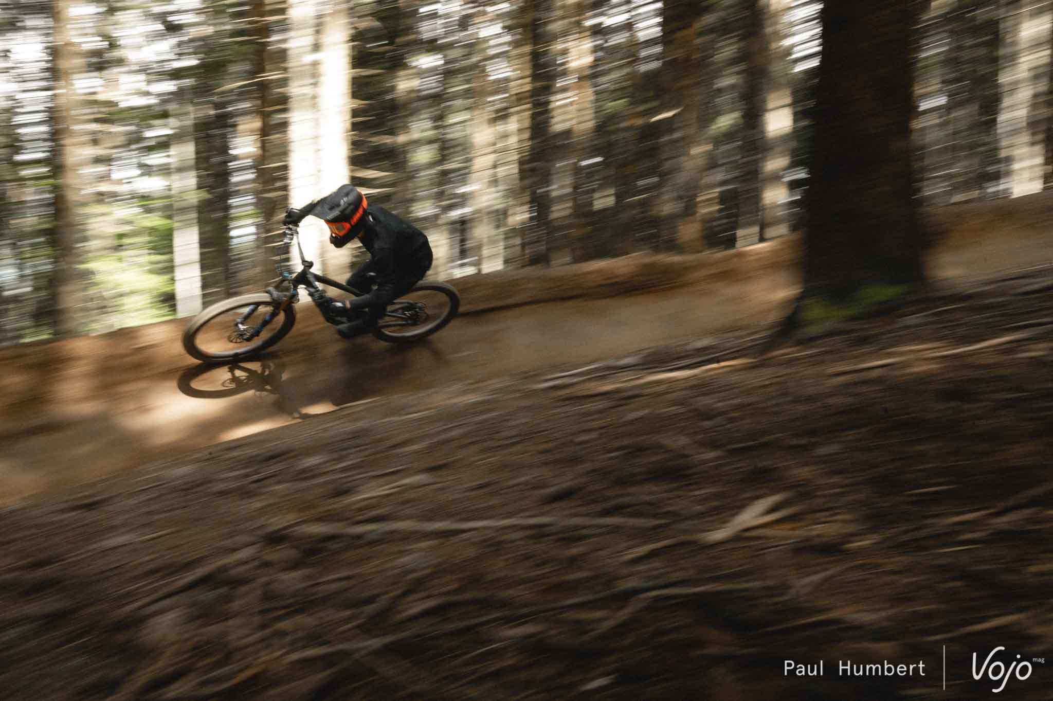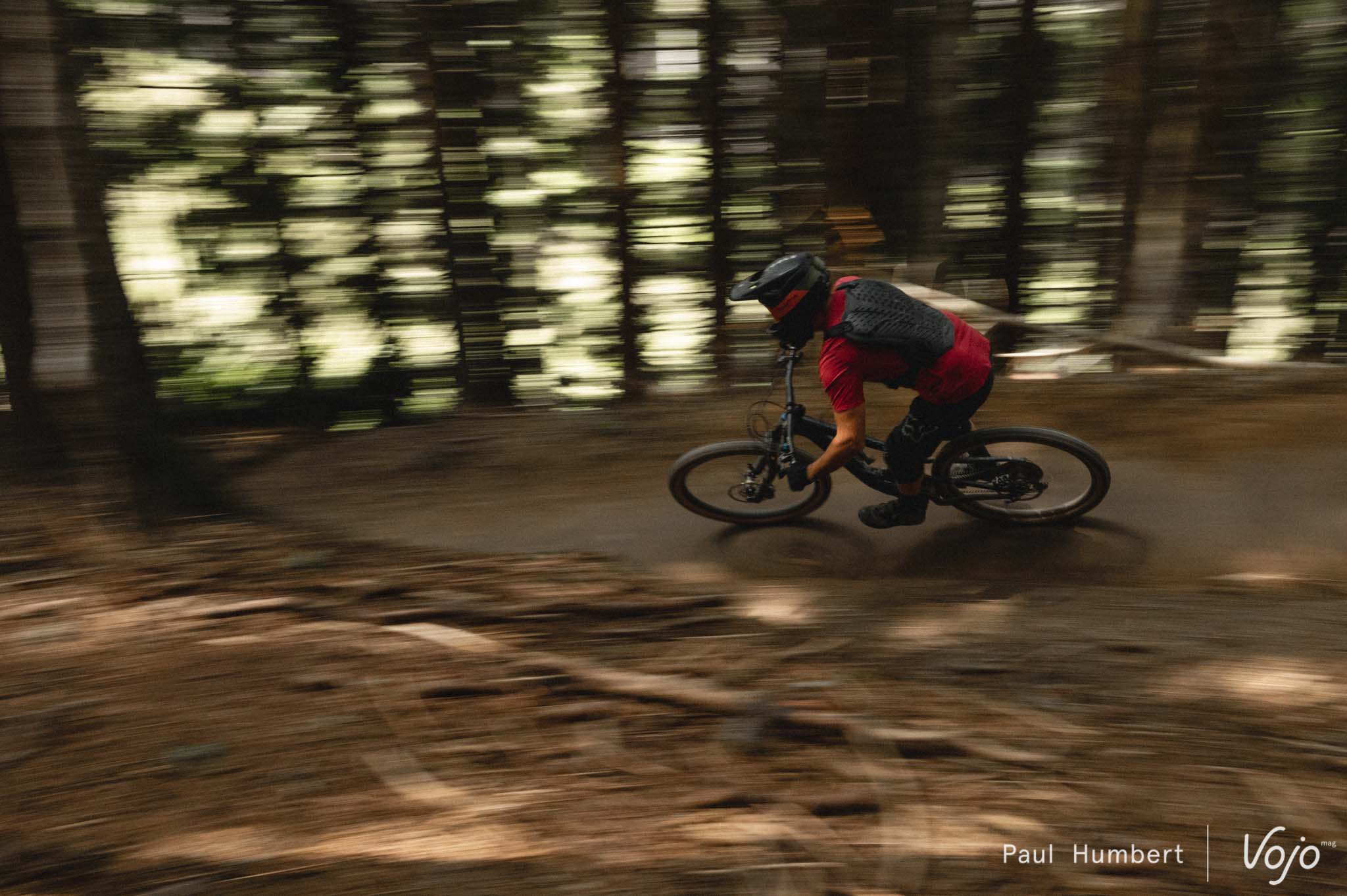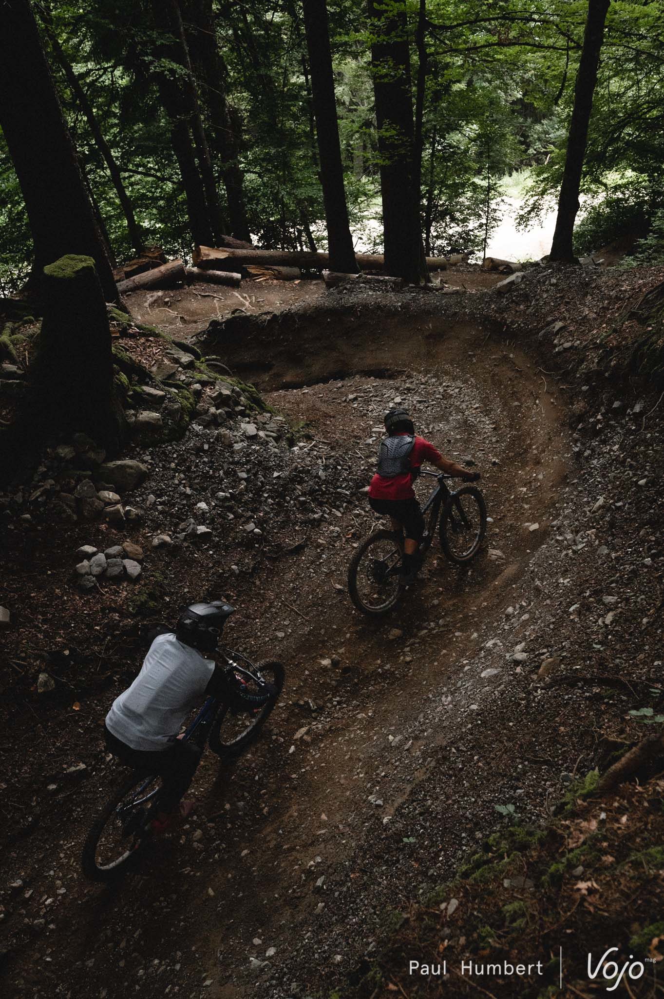 Qui plus est, elle ne présente aucune réelle difficulté technique, ce qui nous arrangeait bien dans notre cas : plus facile à apprendre, plus facile de prendre les mêmes lignes à chaque descente et moins de risque de chute. Juste à gérer la vitesse, car on peut aller très (très) vite quand on se sent en confiance sur ce genre de tracé…