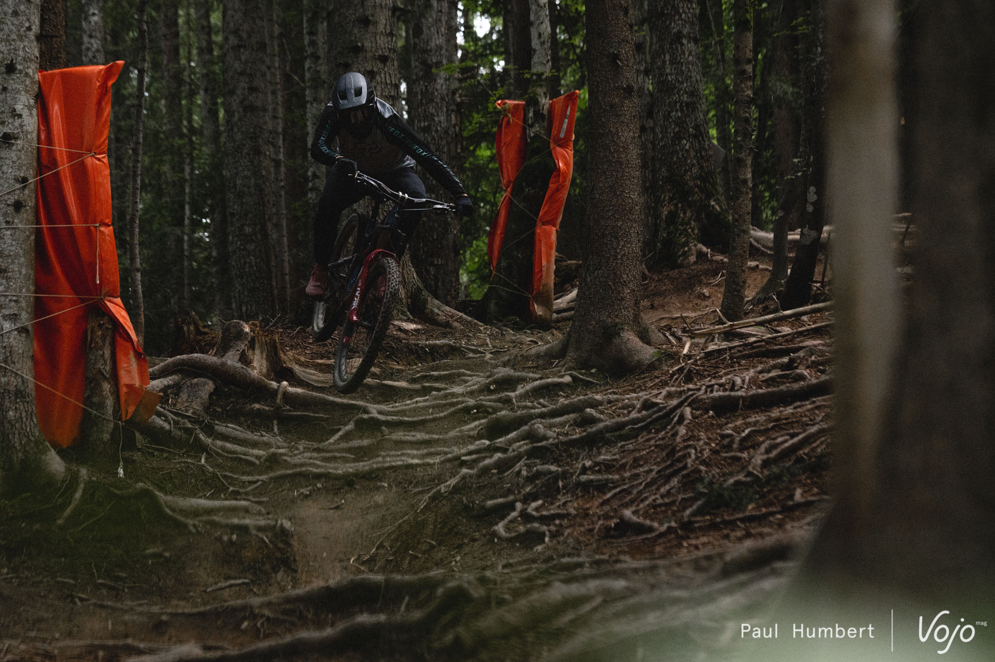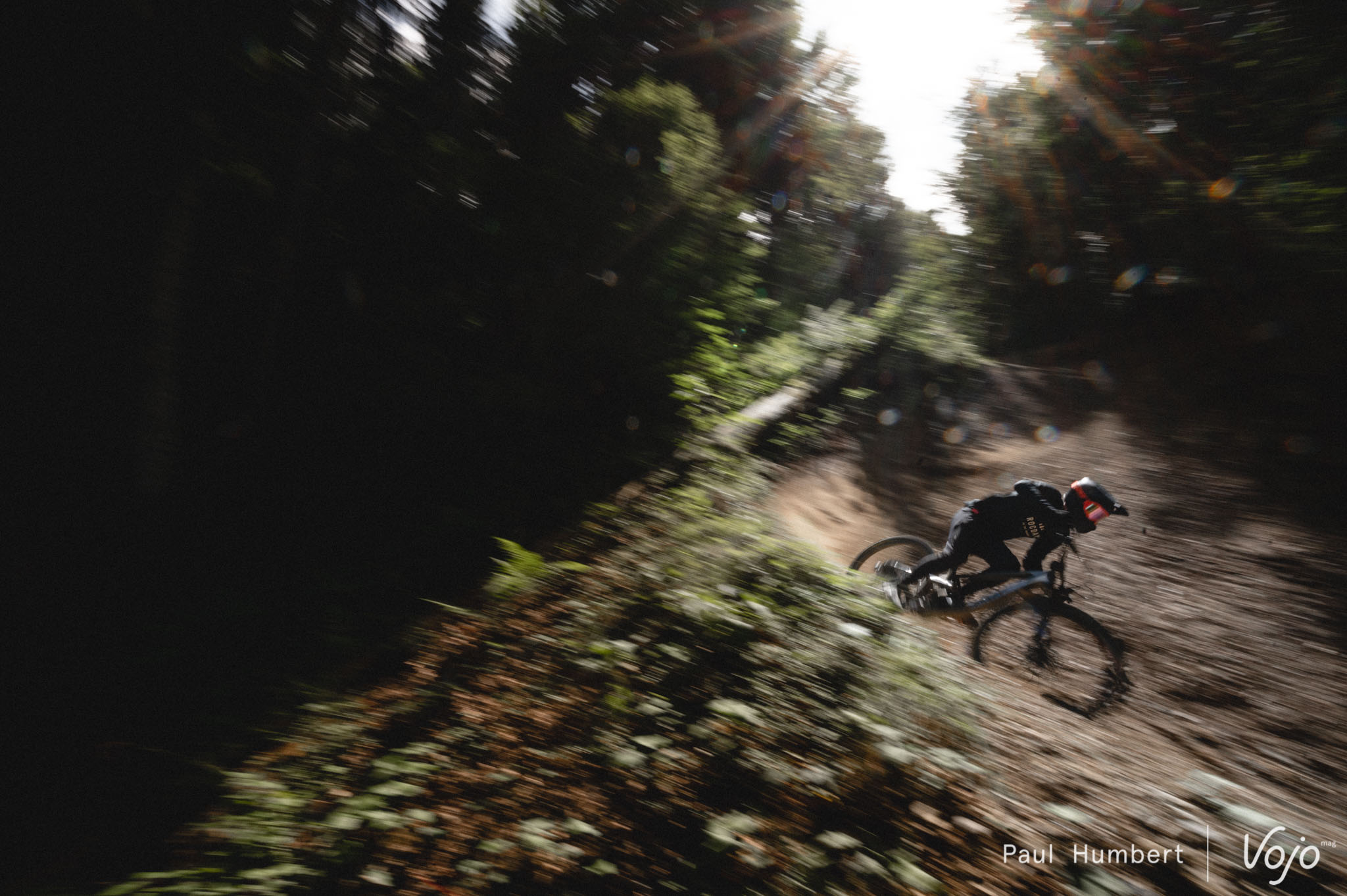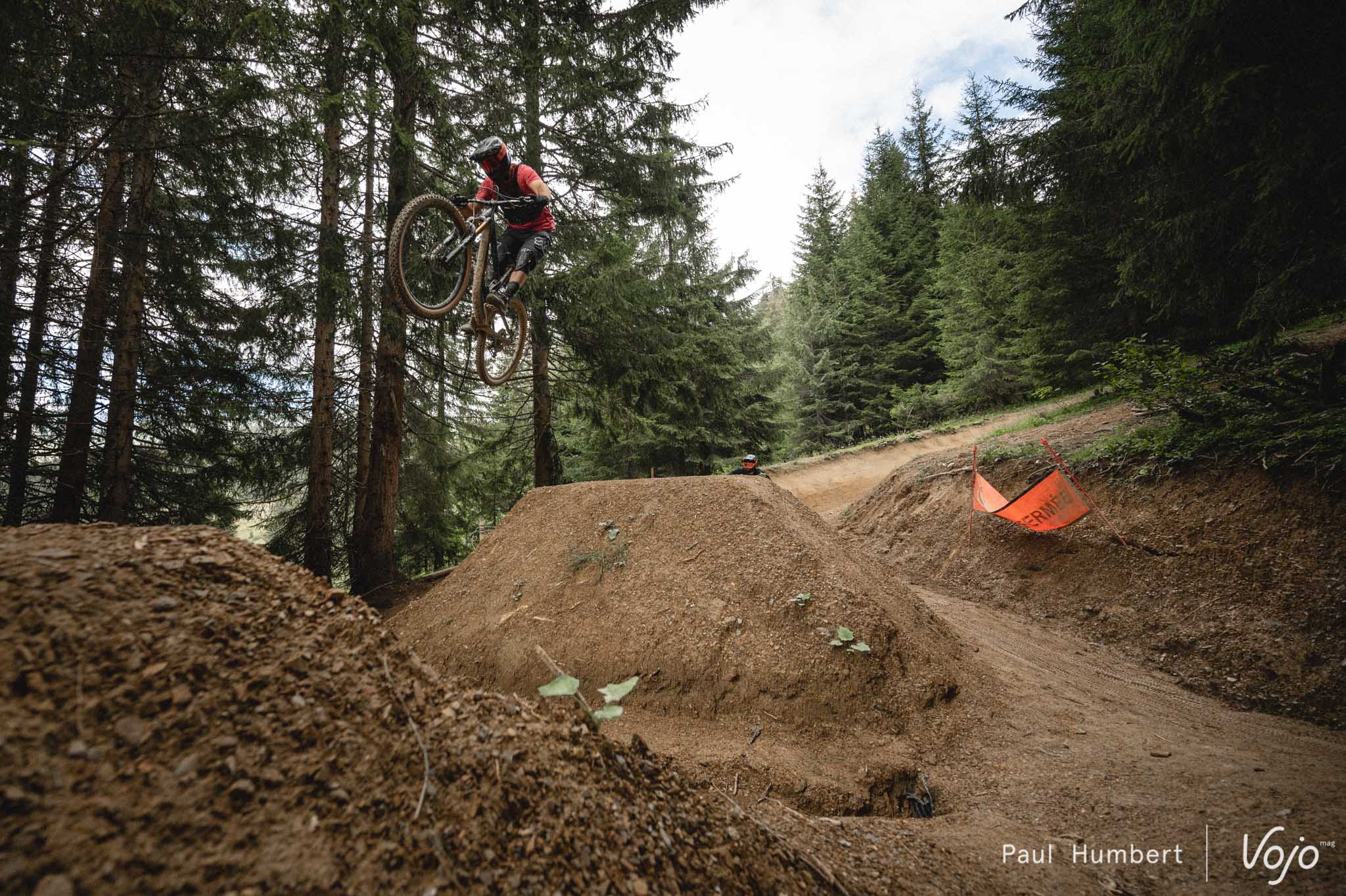 Qui plus est, elle ne présente aucune réelle difficulté technique, ce qui nous arrangeait bien dans notre cas : plus facile à apprendre, plus facile de prendre les mêmes lignes à chaque descente et moins de risque de chute. Juste à gérer la vitesse, car on peut aller très (très) vite quand on se sent en confiance sur ce genre de tracé…
