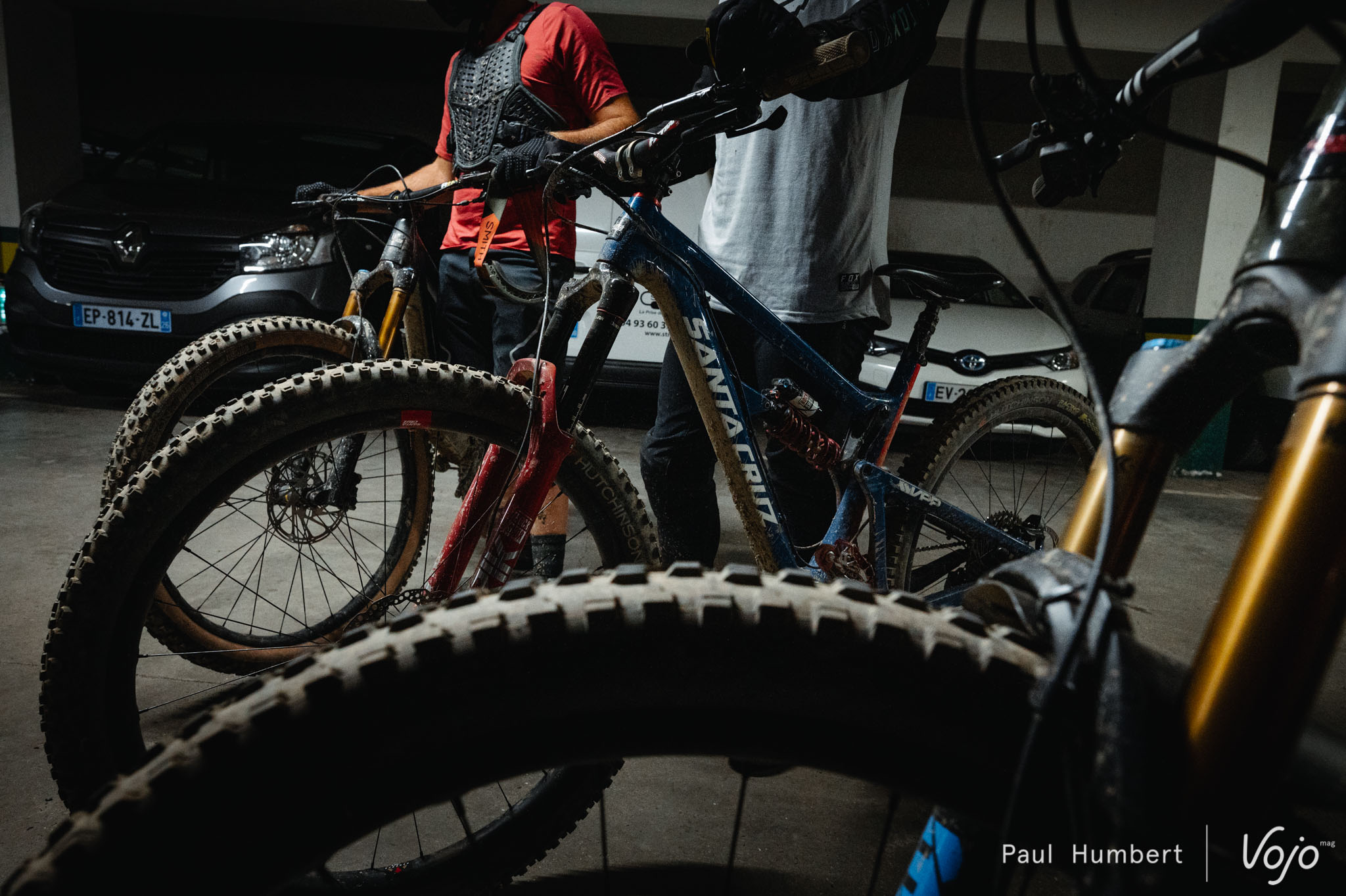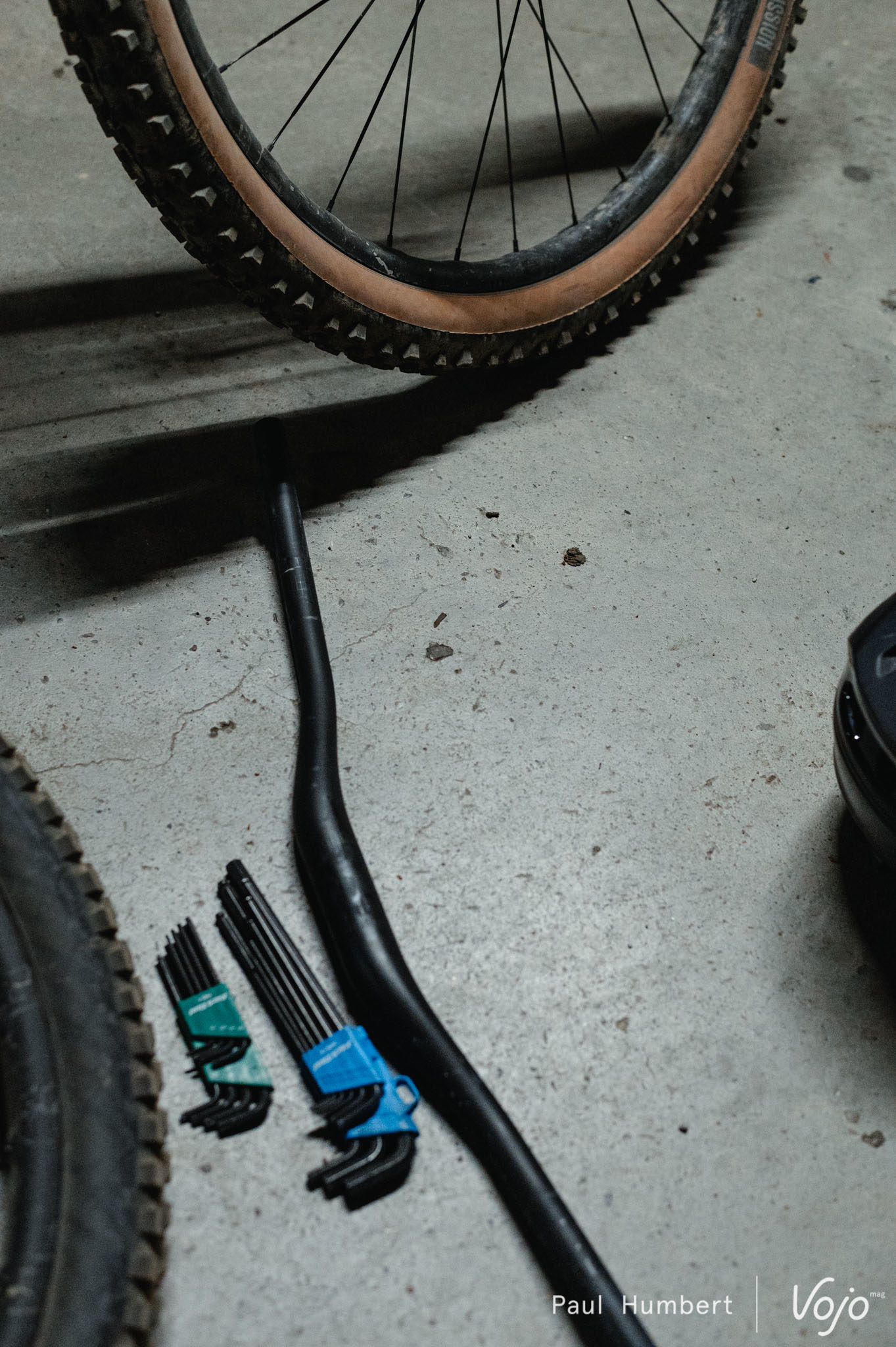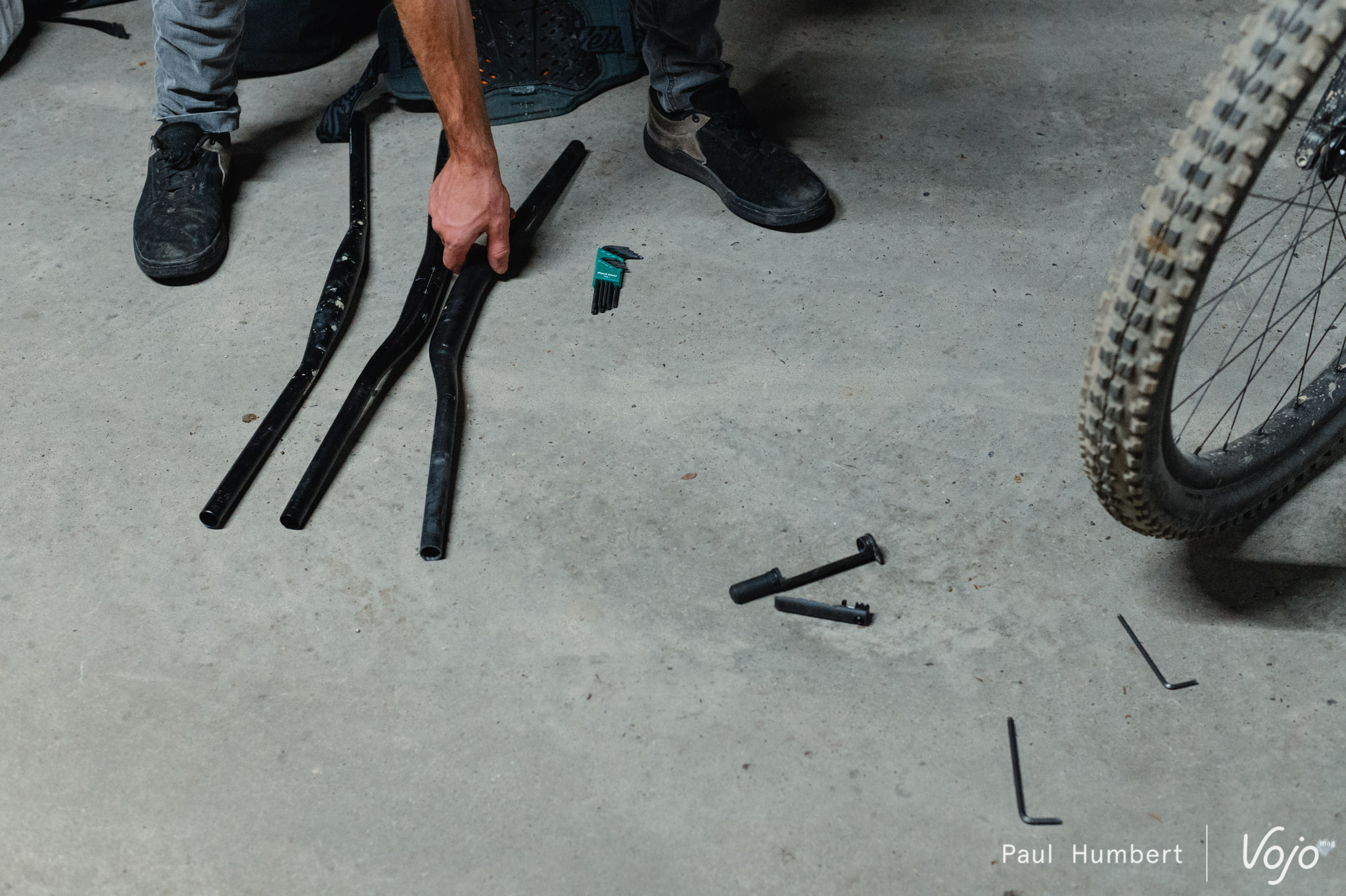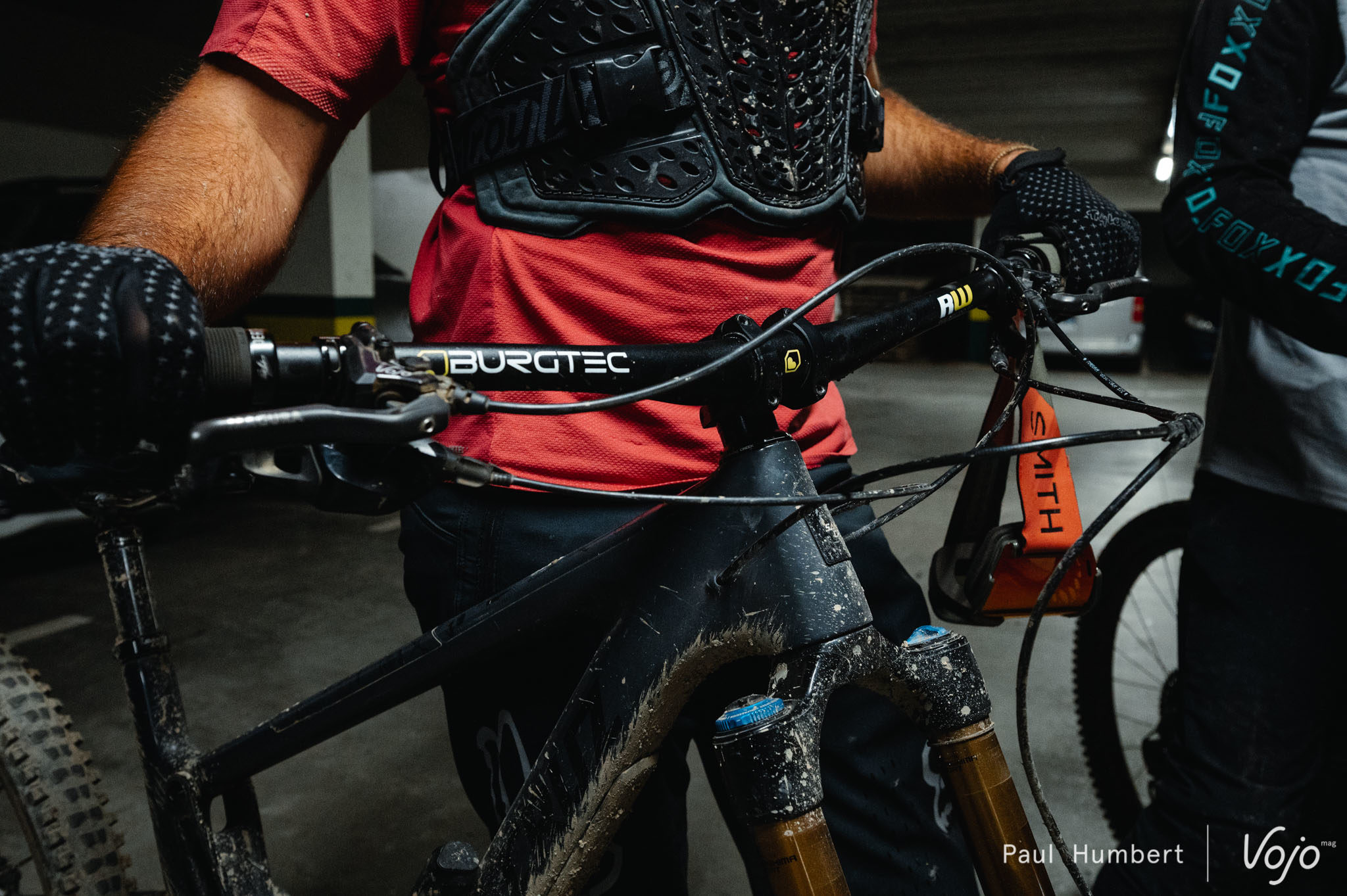 Ensuite, on passe aux tests. Pour faciliter l’organisation, nous avons testé tous les cintres en 31,8 mm le premier jour puis nous sommes passés à ceux en 35 mm pour le deuxième jour. On évite ainsi les changements de potence et on peut enchaîner les descentes plus rapidement. Avec au minimum 6 descentes à faire par jour, mieux vaut ne pas traîner…
