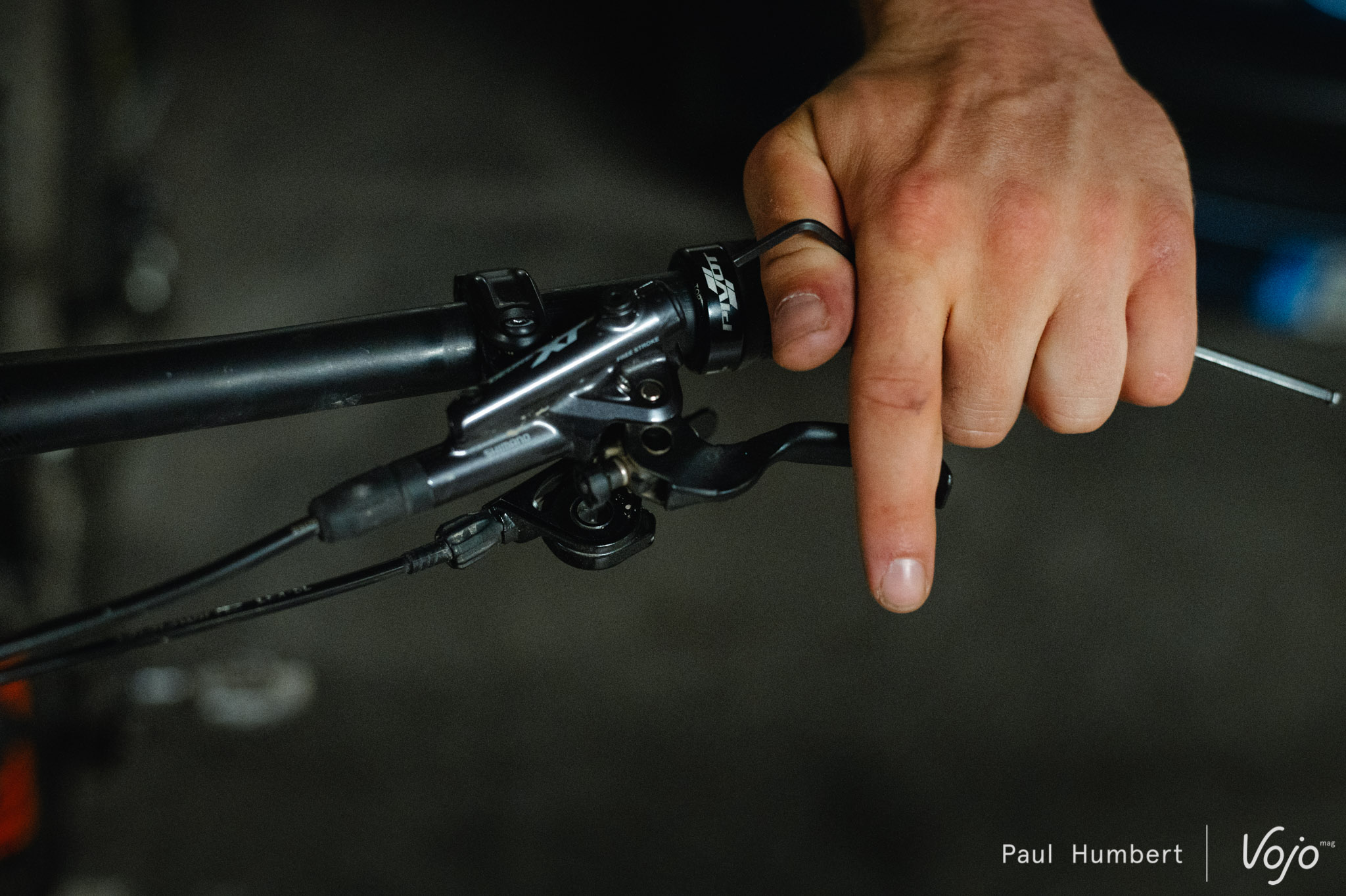Dans la même optique, il ne faut pas négliger la position de ses leviers de freins. Le conseil habituel est de positionner ses leviers dans le prolongement de l’axe des bras mais si vous arrivez à tenir la position sans inconfort ou douleur, un angle un peu plus plat (plus proche de l’horizontale) peut être intéressant. Le cintre est alors calé naturellement dans la pince formée par le pouce et l’index et reste dans les mains sans même qu’on ait à exercer une quelconque force de serrage.