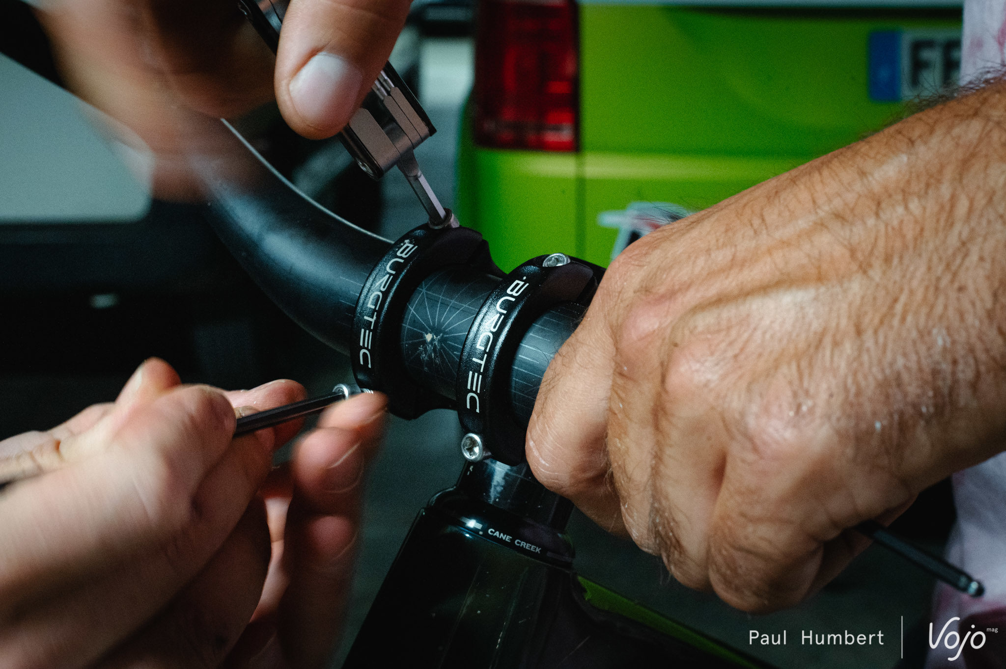 En bas de chaque descente, on note le cintre que l’on vient de tester sur 3 critères (sensation de rigidité, de précision et mal aux mains) sans discuter entre nous pour ne pas s’influencer puis on passe à la mécanique. Attention à ne pas abîmer les vis ou les clés dès le matin du premier jour…