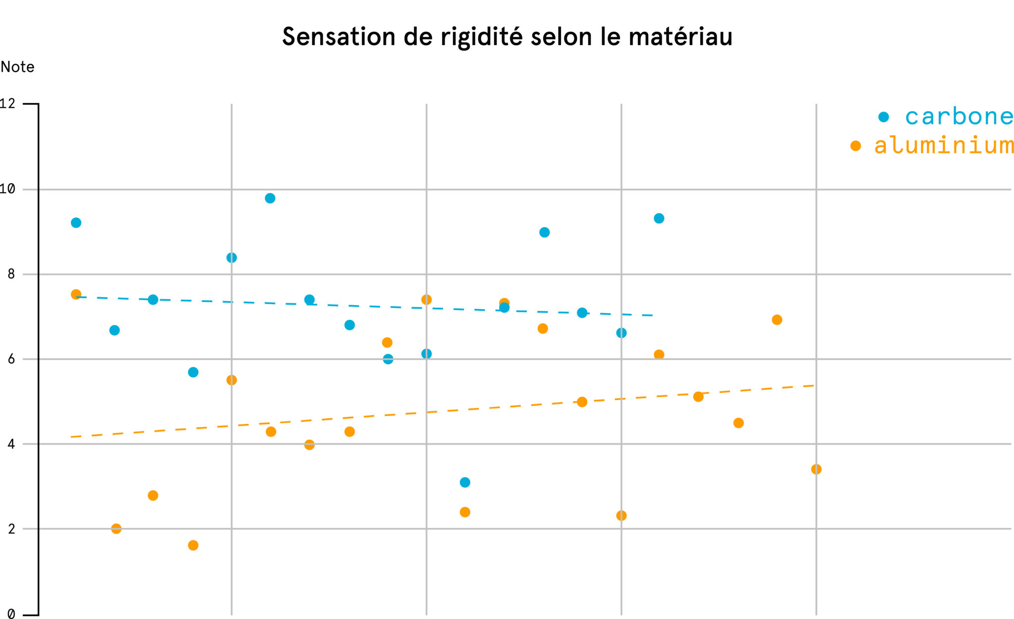 Bien sûr, les ordres de passages des cintres sur nos vélos étaient randomisés, c’est-à-dire que nous suivions chacun un ordre aléatoire et différent des autres, de façon à neutraliser les éventuels effets de comparaison et de fatigue.