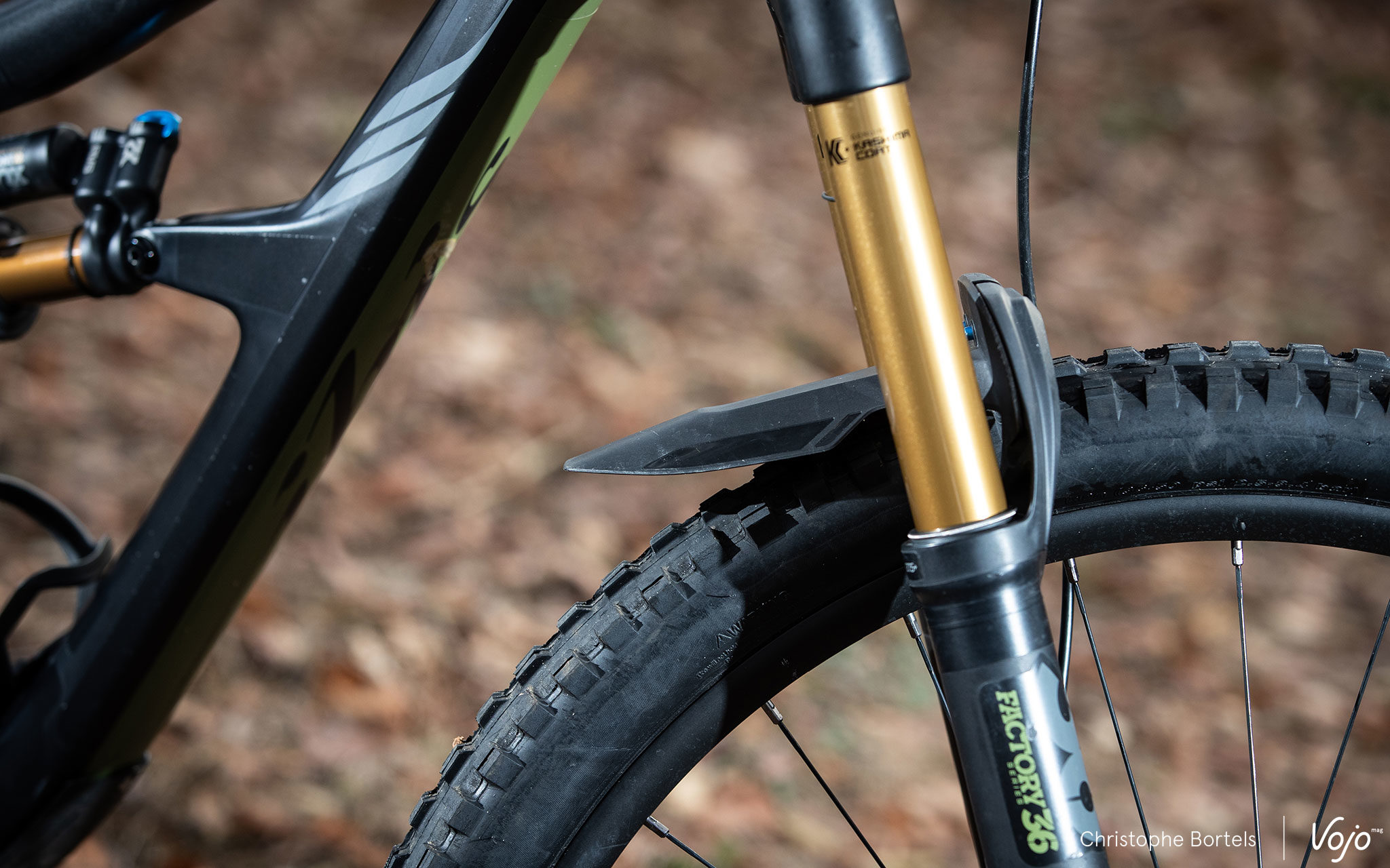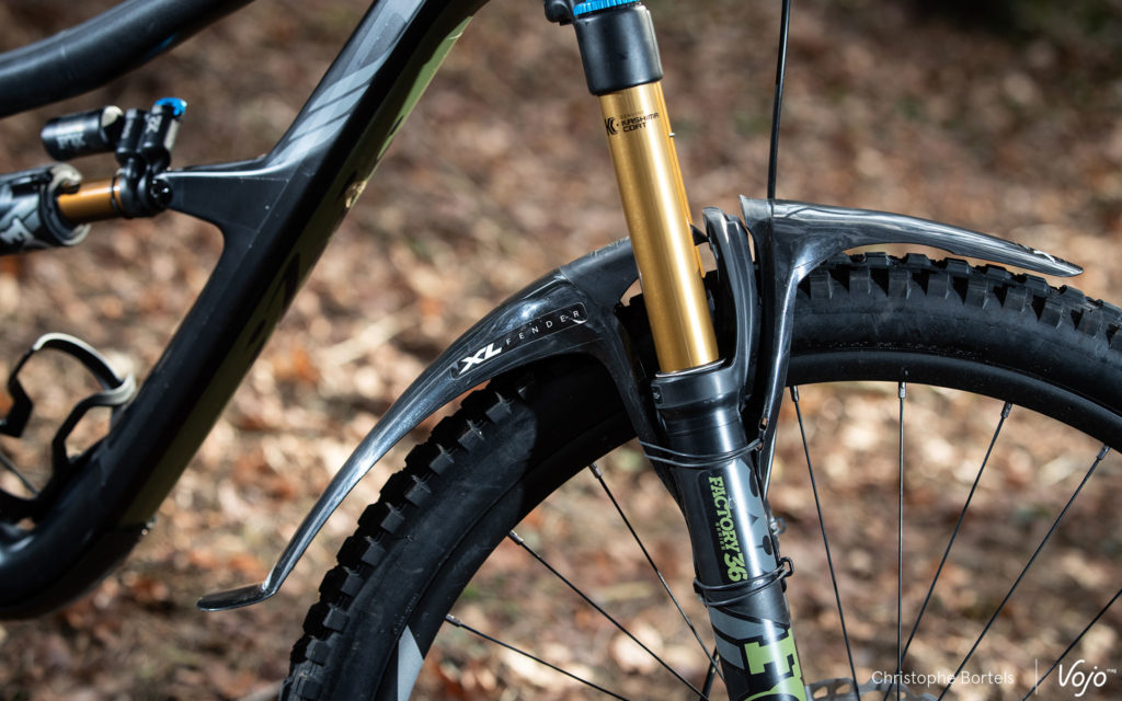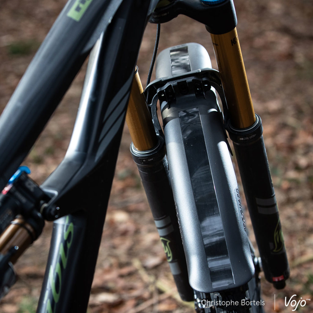 Avec une petite taille comme la sienne, il ne faut pas s’attendre à des performances exceptionnelles. Le Syncros Trail réduit les projections envoyées à travers la fourche, comme les trois modèles précédents, mais comme eux il est aussi vite dépassé sur des traces très humides. Et ici, pas de protection des joints racleurs ni des plongeurs puisque ce garde-boue ne se prolonge pas vers les fourreaux.