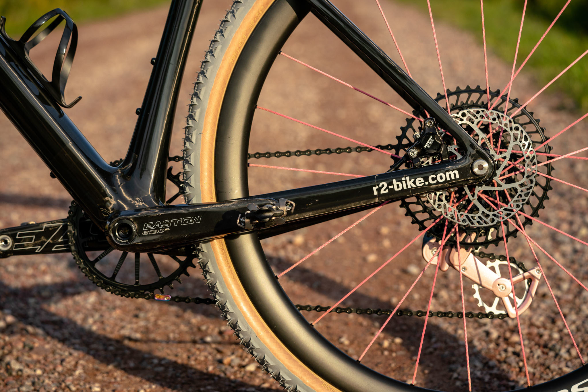 Qu’ont-ils de si particulier, ces rayons ? Développés et fabriqués en Allemagne, ils sont en Vectran, une fibre à base de polymères à cristaux liquides, comme le Kevlar. Autrement dit, ils sont souples. Gustav nous indique que « outre le poids très faible de ces rayons, ils offrent également une qualité de roulement légèrement différente. Après avoir roulé avec des roues de VTT Pi Rope, j’ai constaté qu’elles géraient un peu mieux les vibrations que les roues traditionnelles. Le vélo avait un son différent avec ces roues. Le gravel semblait donc être une application parfaite pour eux, c’est pourquoi vous les trouvez sur ce vélo. »