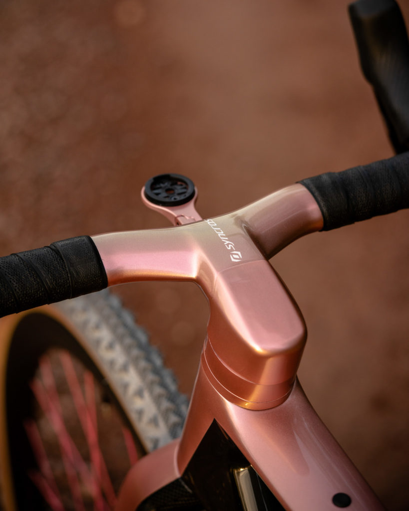 Comme sur l’Addict Gravel qu’il avait conçu pour lui l’année dernière (lire Le Scott Addict Gravel version Dangerholm), le cadre, en taille S, est presque d’origine : « Le montage est basé sur le cadre Scott Contessa Addict Gravel et les composants Syncros correspondants qui s’intègrent parfaitement. »
