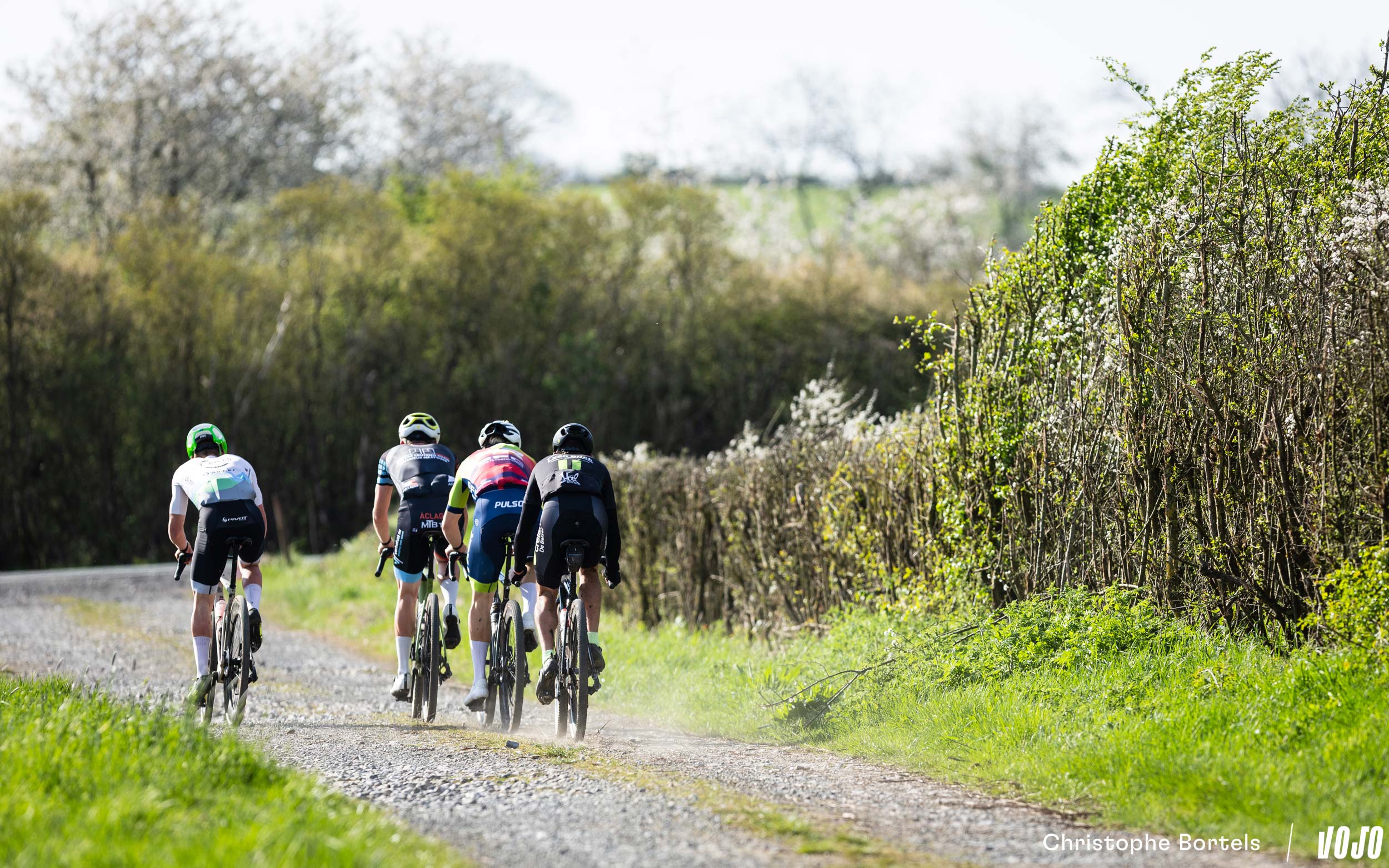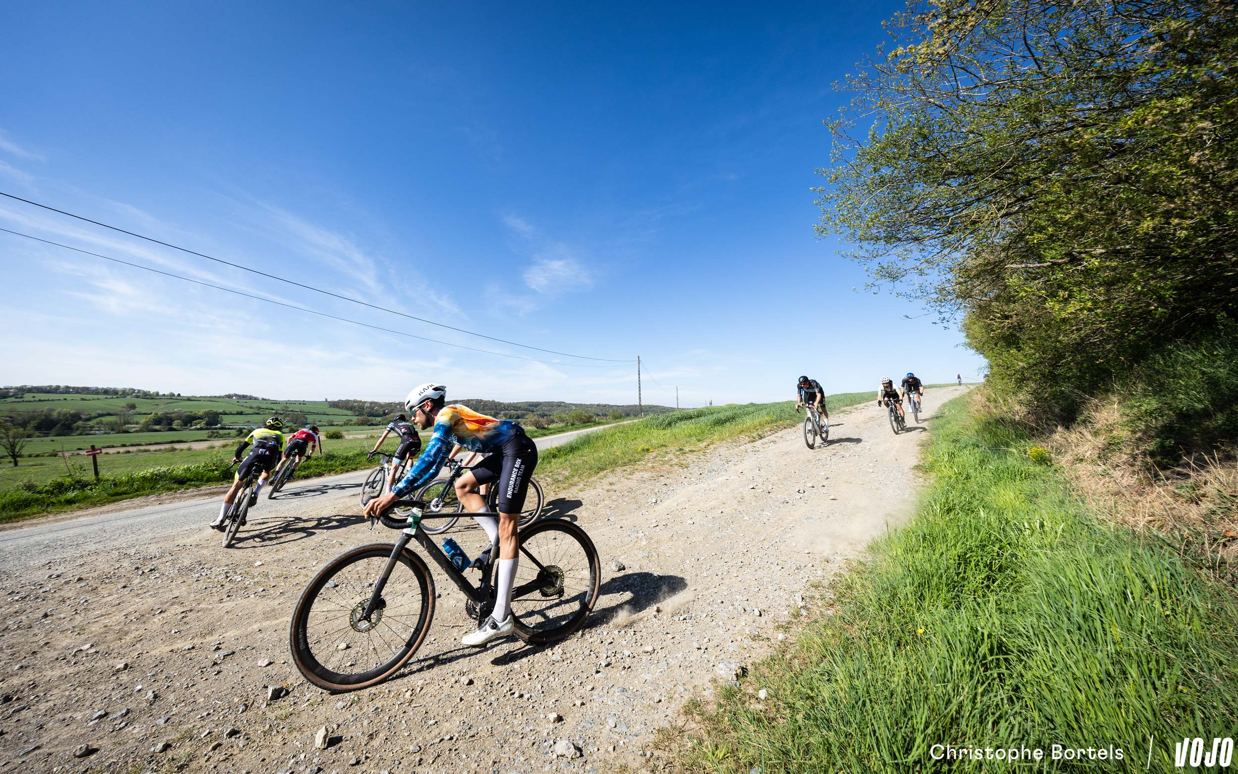 Après deux bons kilomètres sur route pour étirer le peloton arrivent les premiers secteurs gravel…