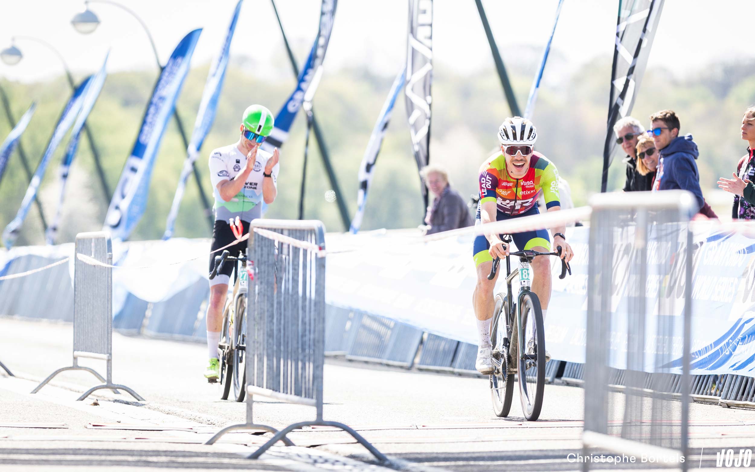 A l’arrivée, Sander Hubrechts ne peut que s’incliner et applaudir Kamiel Notebaert qui s’impose dans un sprint à deux pour la victoire ! Owen Valcke, 3e, termine à une vingtaine de secondes.