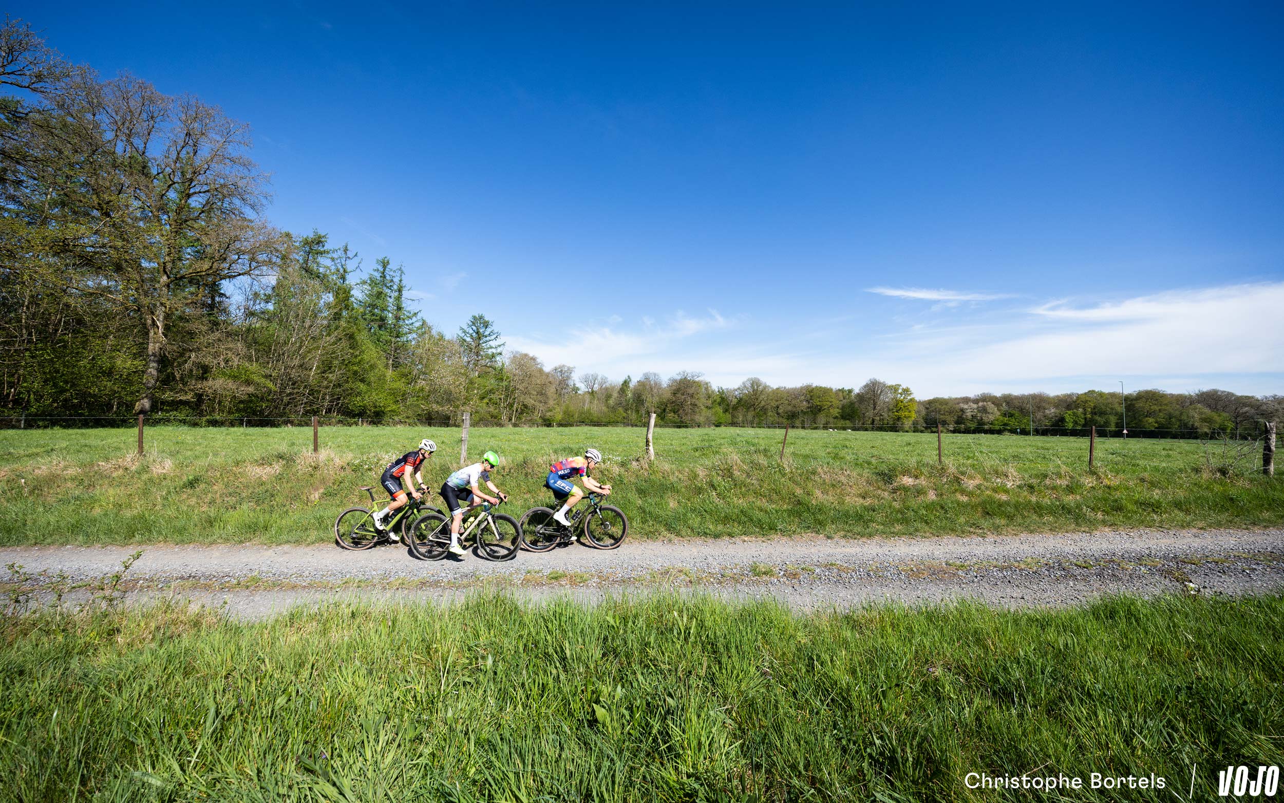 Et à quinze kilomètres de l’arrivée la situation est inchangée puisque Kamiel Notebaert, Sander Hubrechts et Owen Valcke mènent encore la course. Alors, sprint ou pas sprint ?