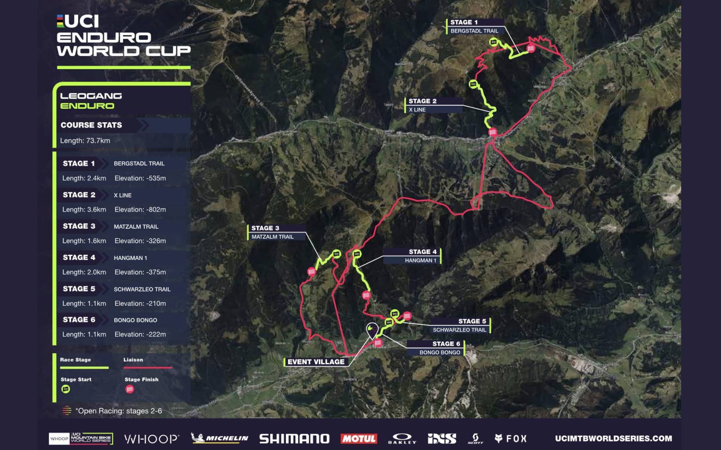 Le programme de course réserve une jolie entrée en matière aux pilotes avec les deux plus longues spéciales de la journée pour débuter (à savoir 2,4 km pour Bergstadl Trail et 3,6 km pour X-Line). En tout et pour tout, c’est 73,7 km pour 2470 m de dénivelé négatif qui sont au programme : environ 12 km de spéciales, 12,5 km de remontées mécaniques, et pas moins de 50 km de liaison.