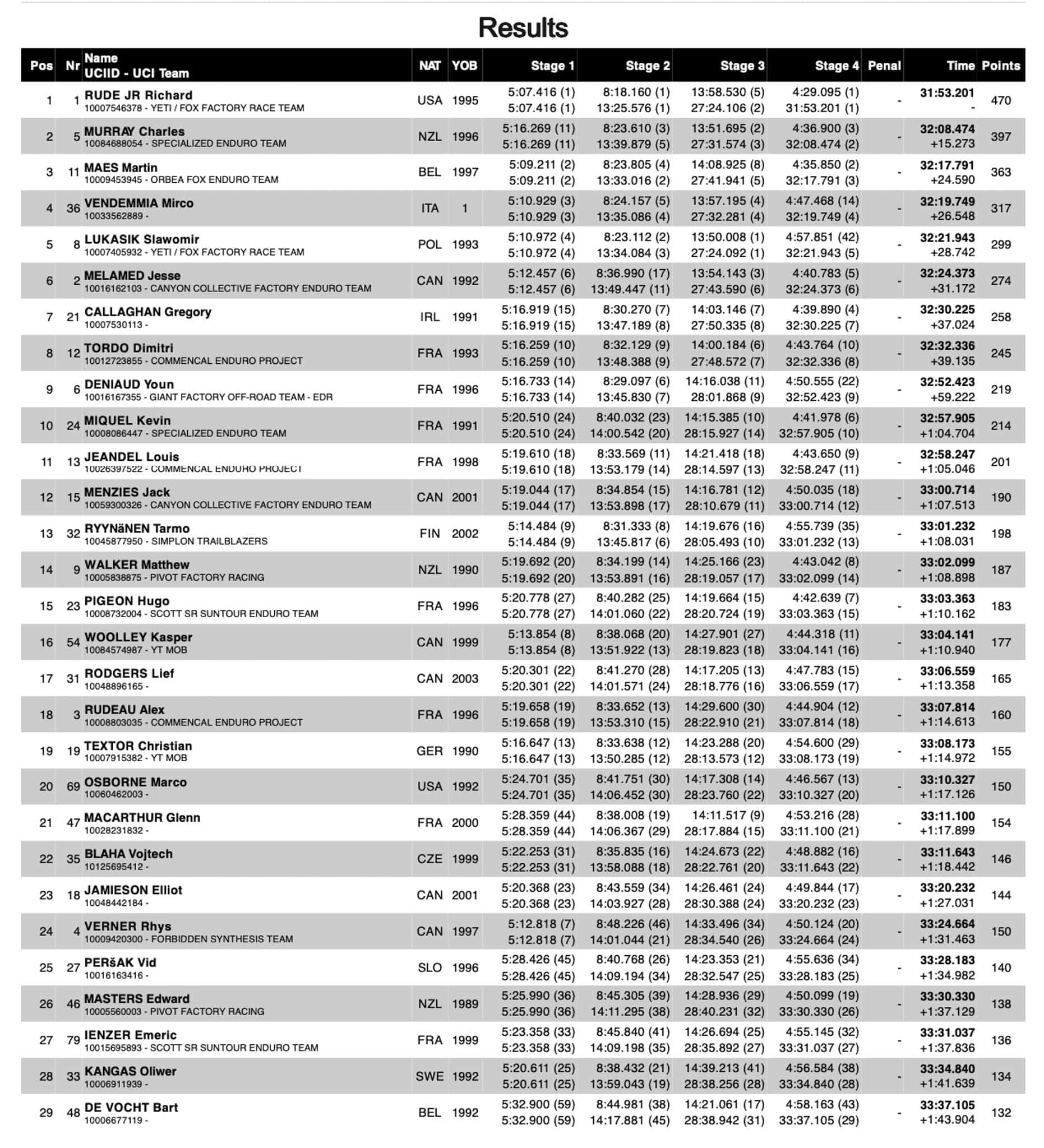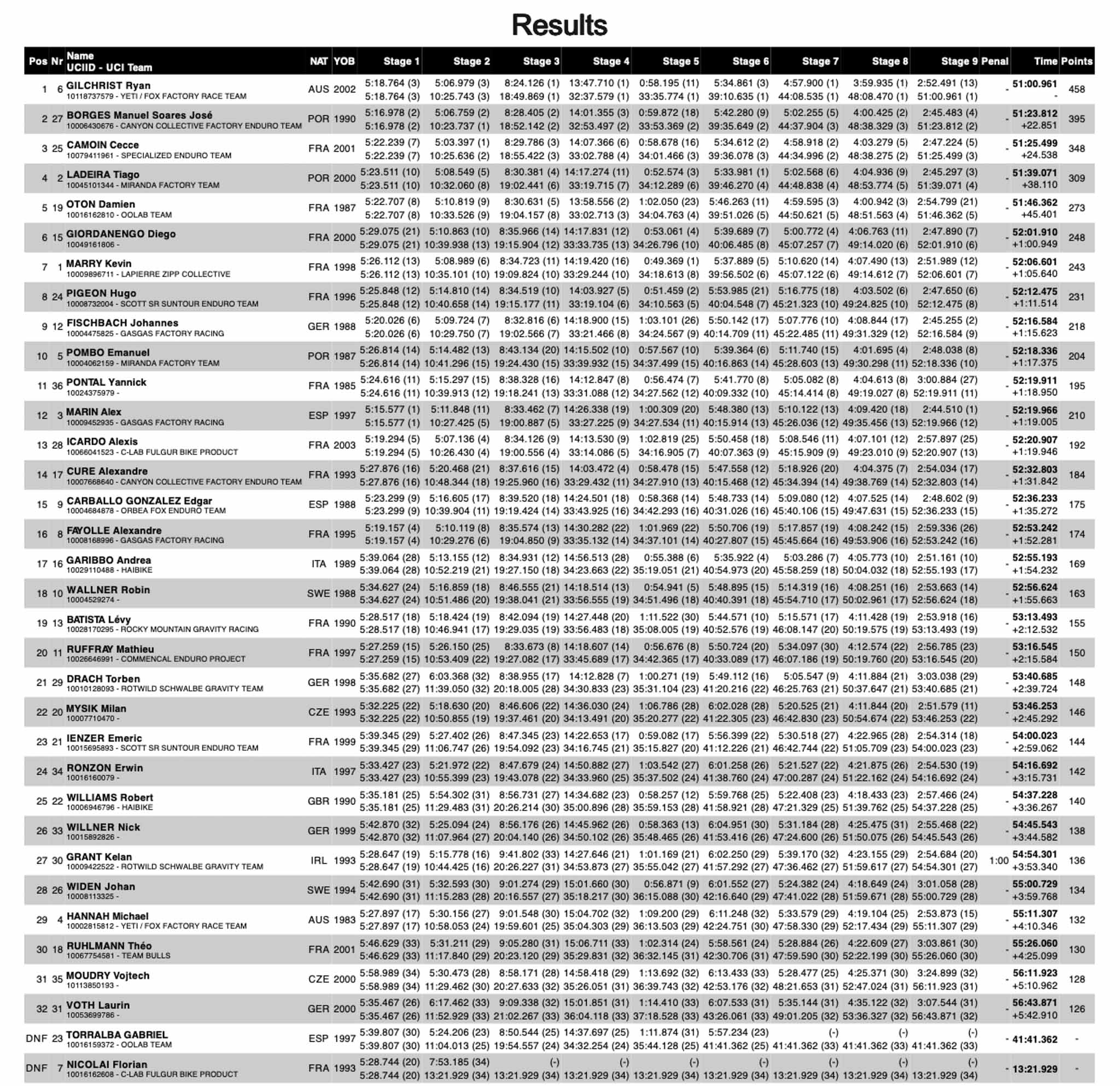 À l’issue de la course, c’est Ryan Gilchrist qui s’impose au guidon de son Yeti. Il devance José Borges et Cecce Camoin sur Specialized.