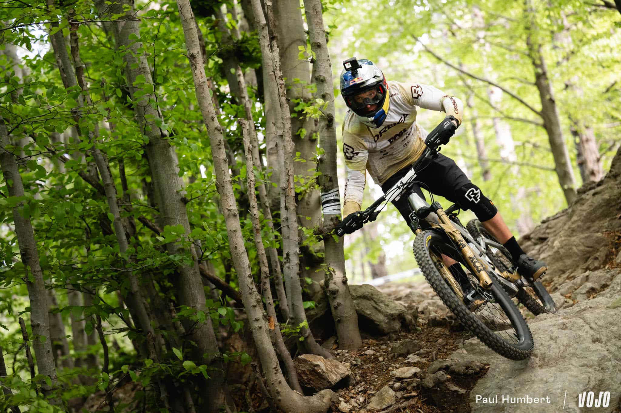 Sur cette descente iconique, il est suivi par Greg Callaghan qui marque son grand retour dans le top 5 après un hiver à se construire une structure individuelle suite à l’arrêt de l’équipe Devinci.