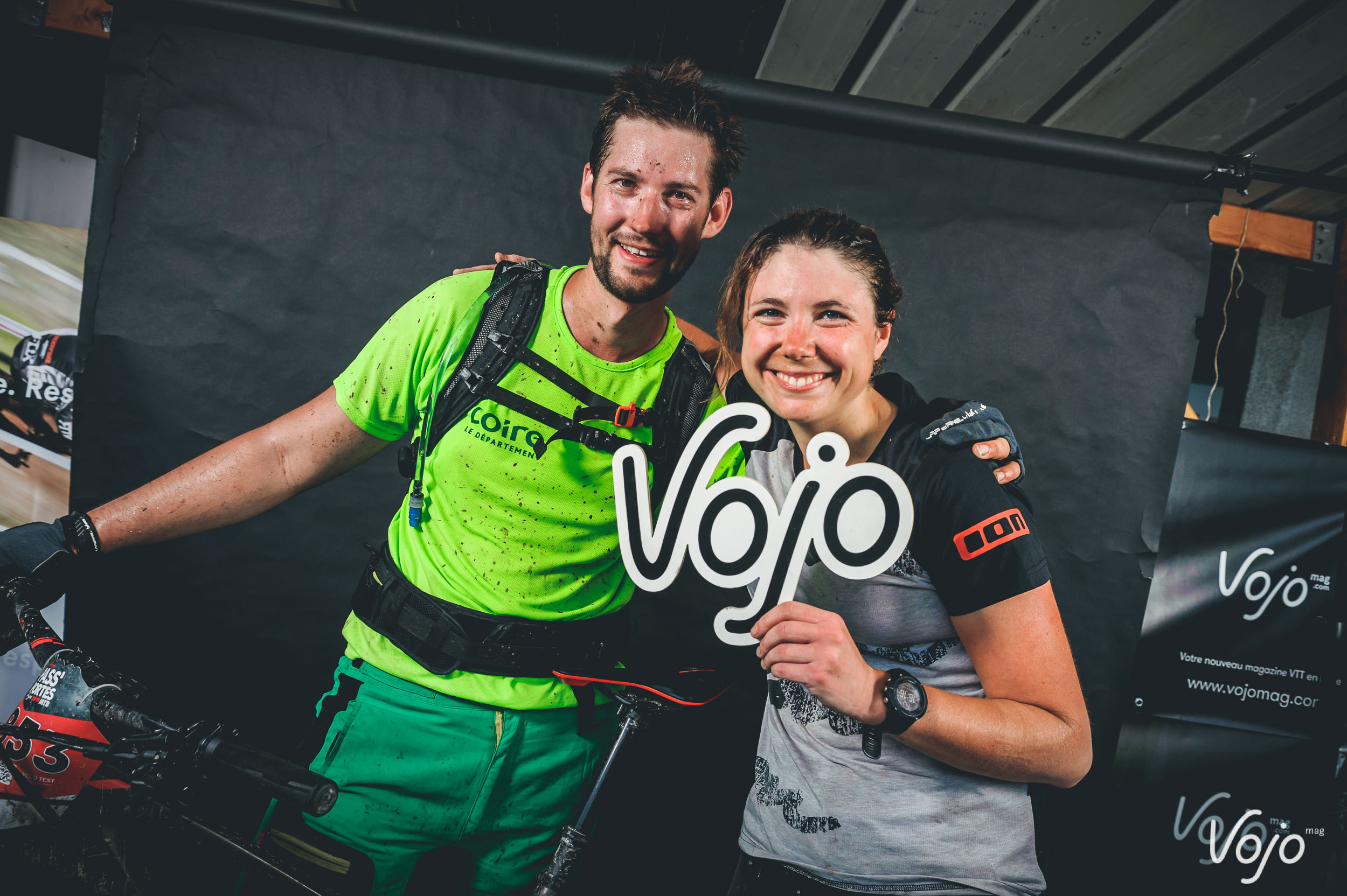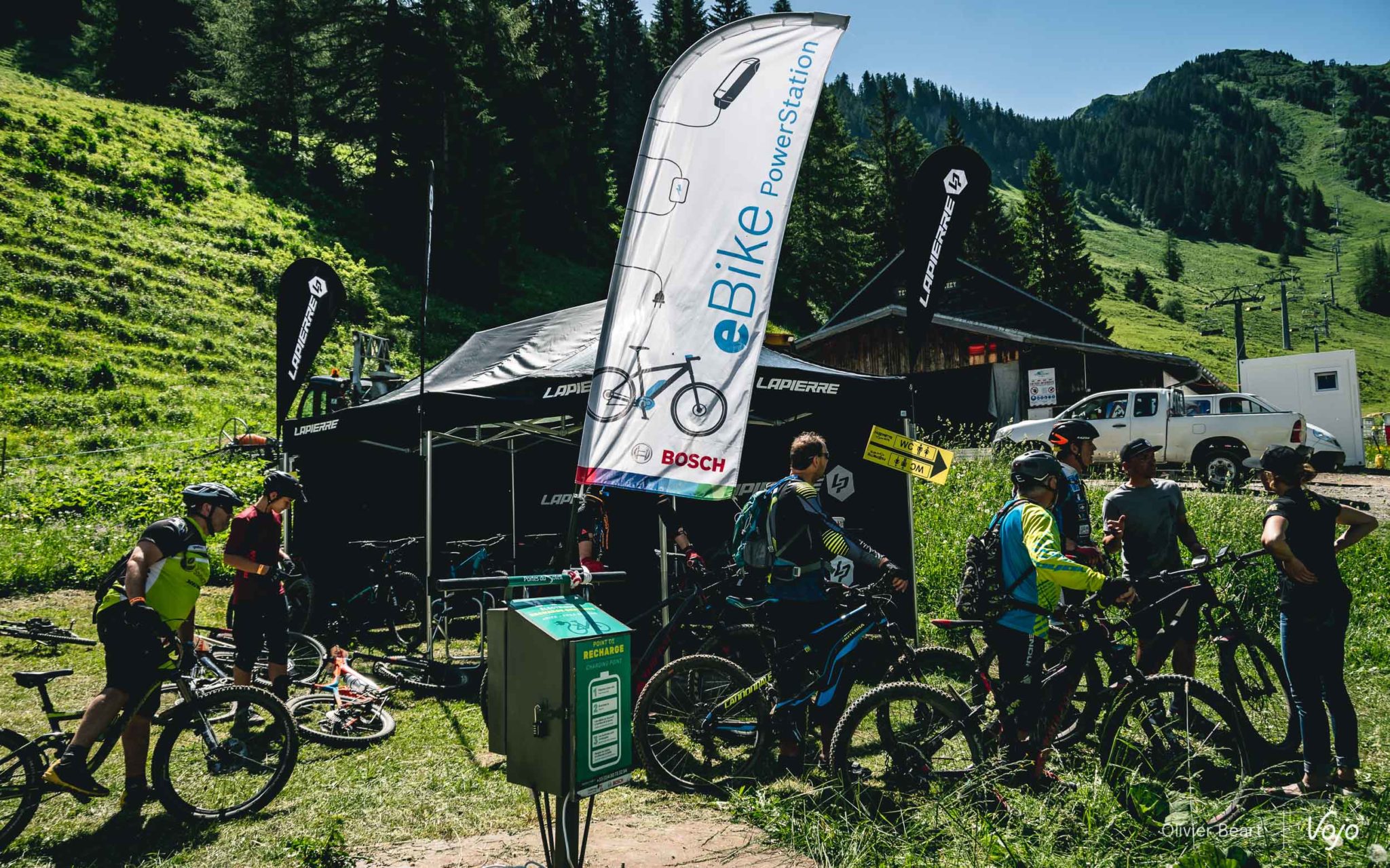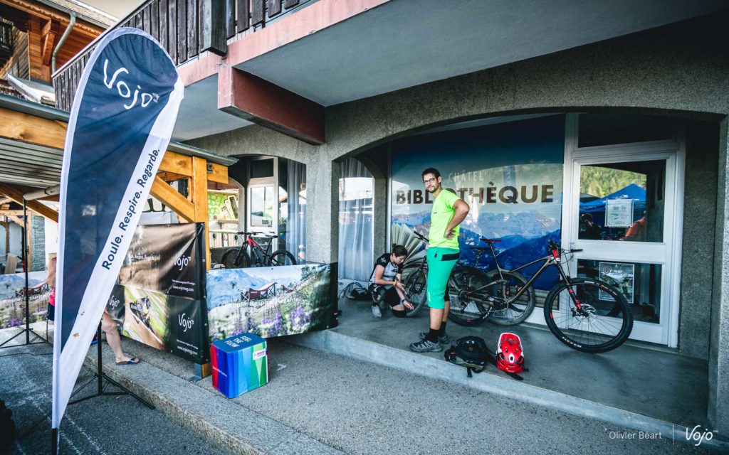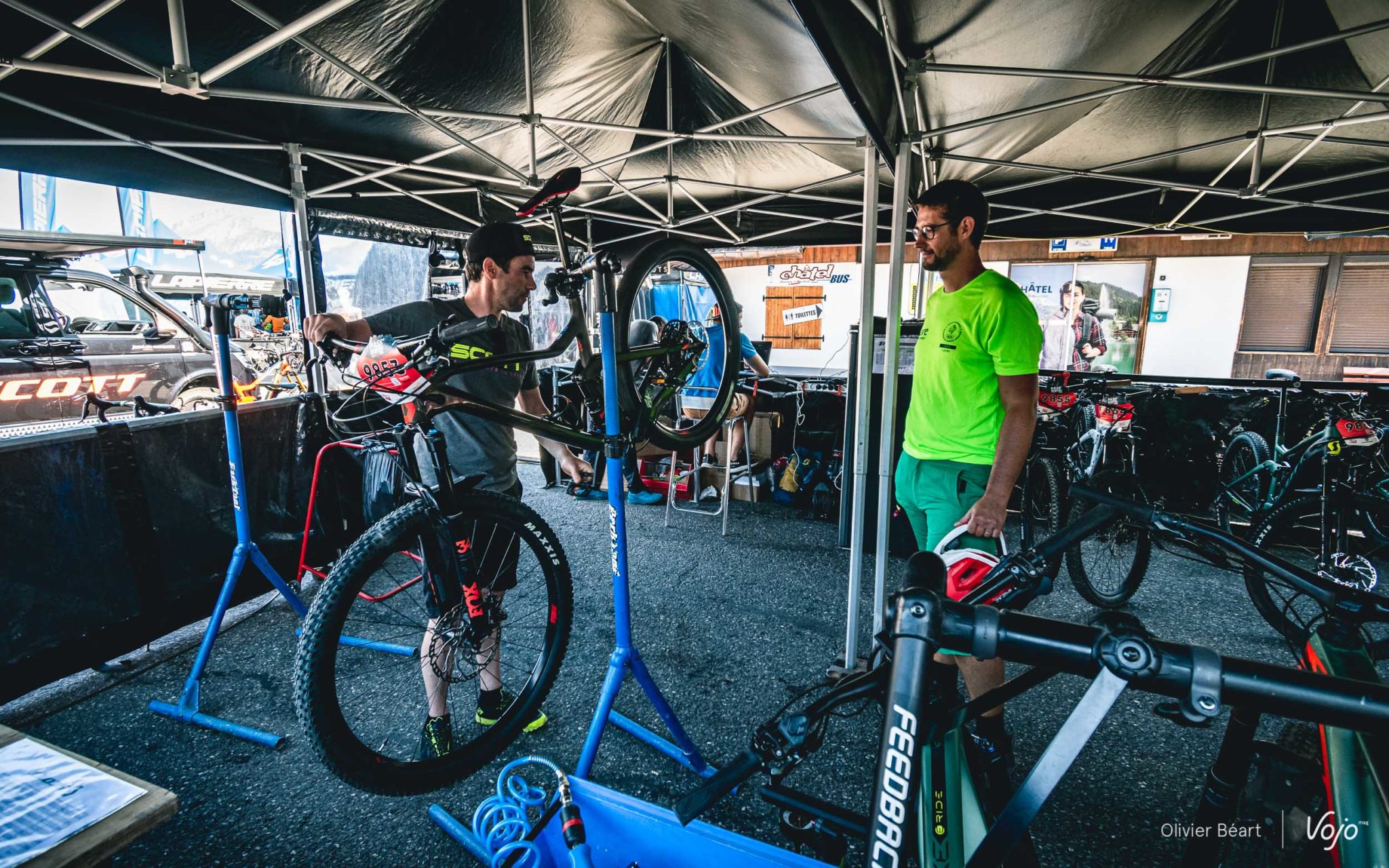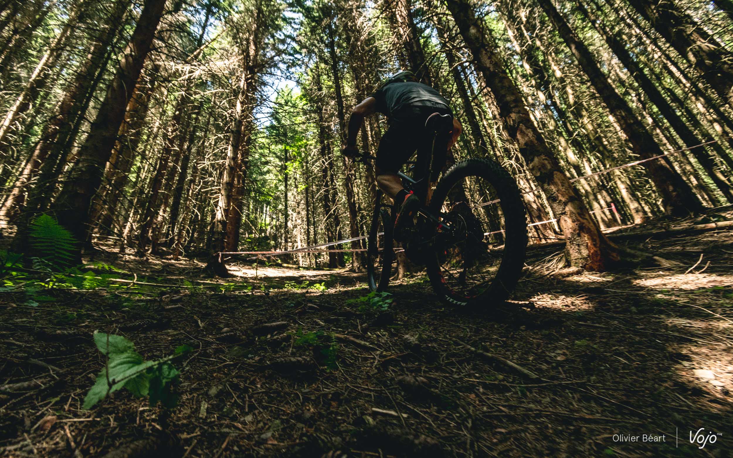 Tout à coup, une voix nous interpelle en reconnaissant le maillot Vojo : c’est le représentant local de Lapierre qui habite le coin, qui a monté un stand et qui a surtout tracé une petite boucle spéciale e-bike bien technique qui correspond à sa vision du vtt électrique.
