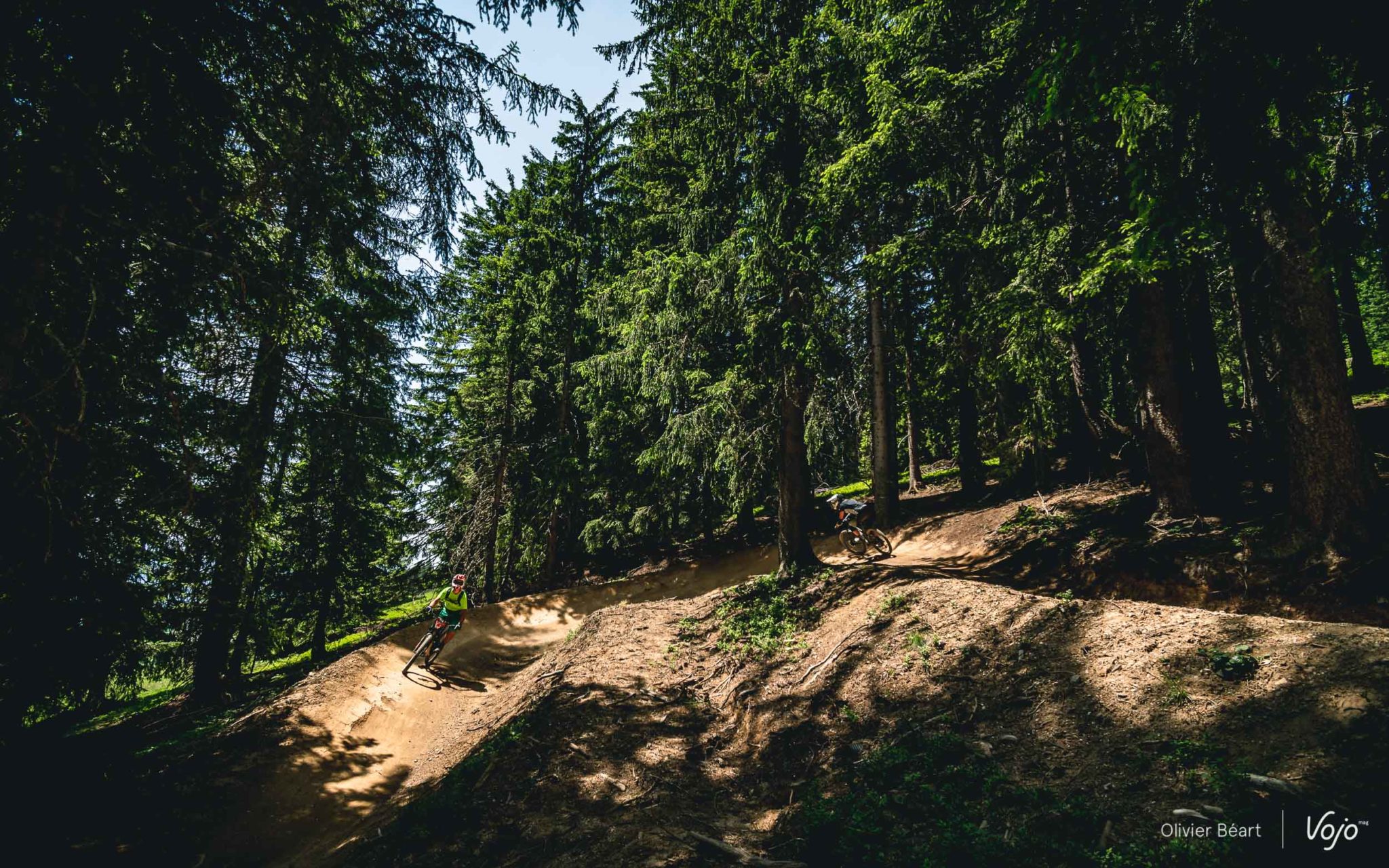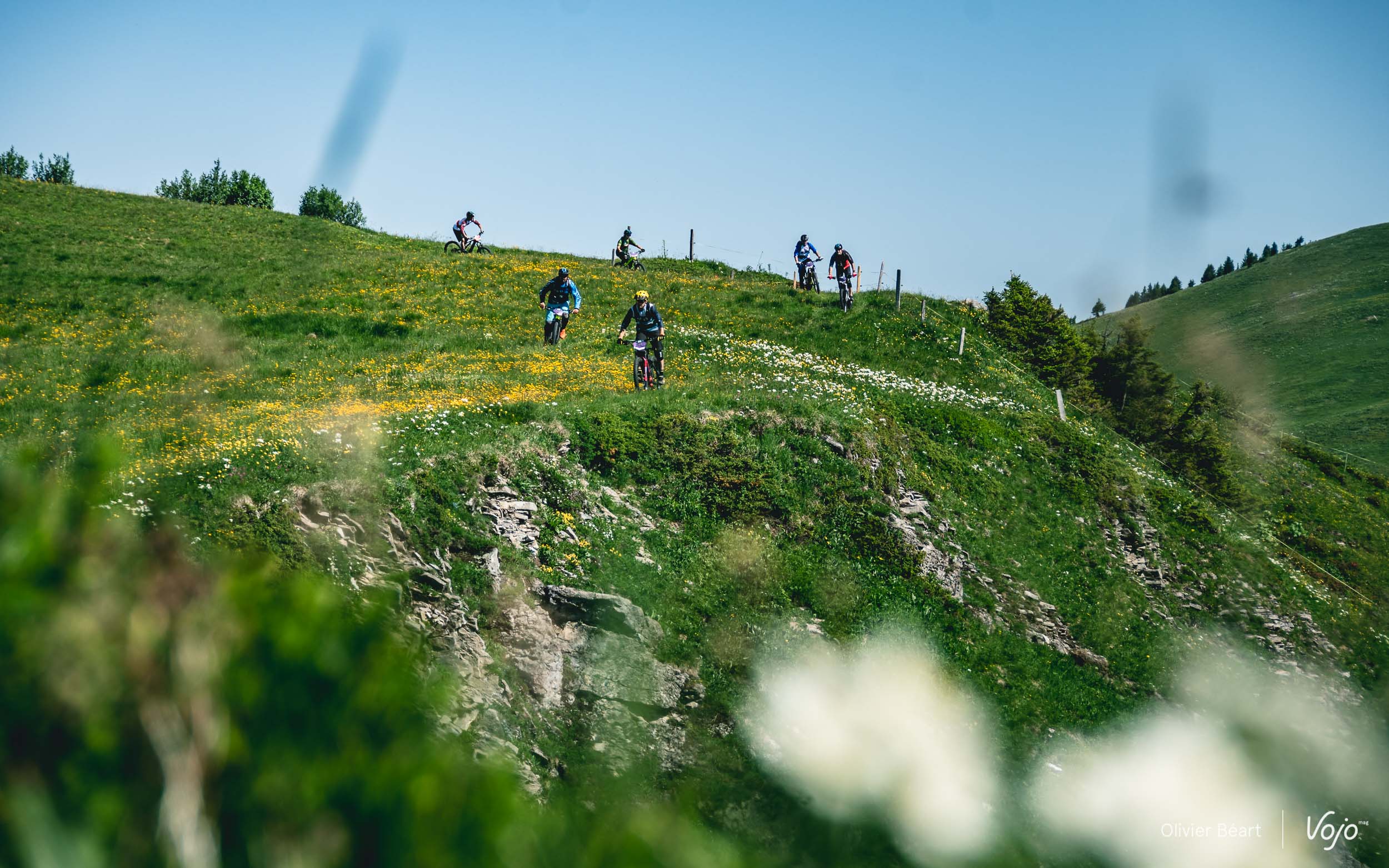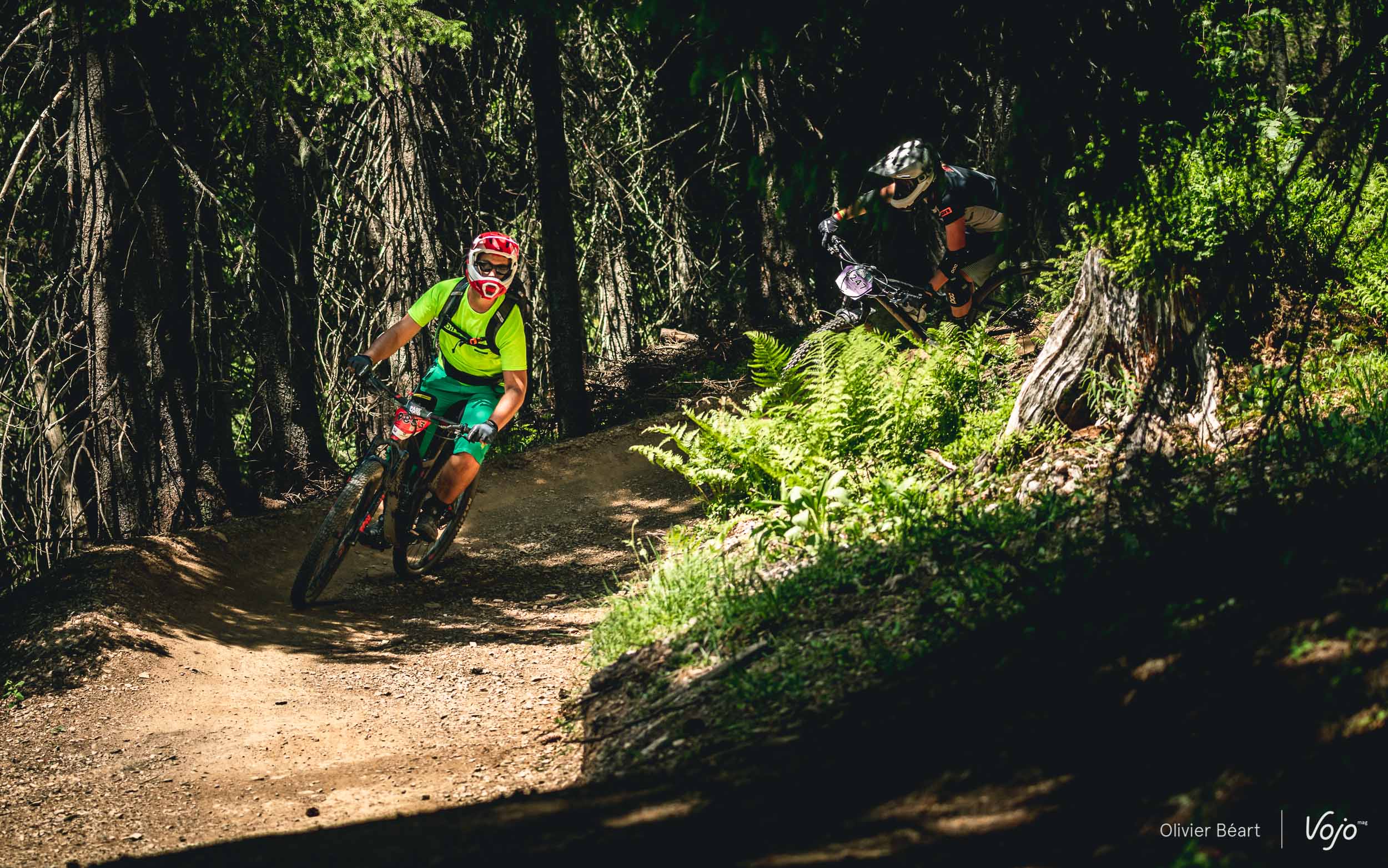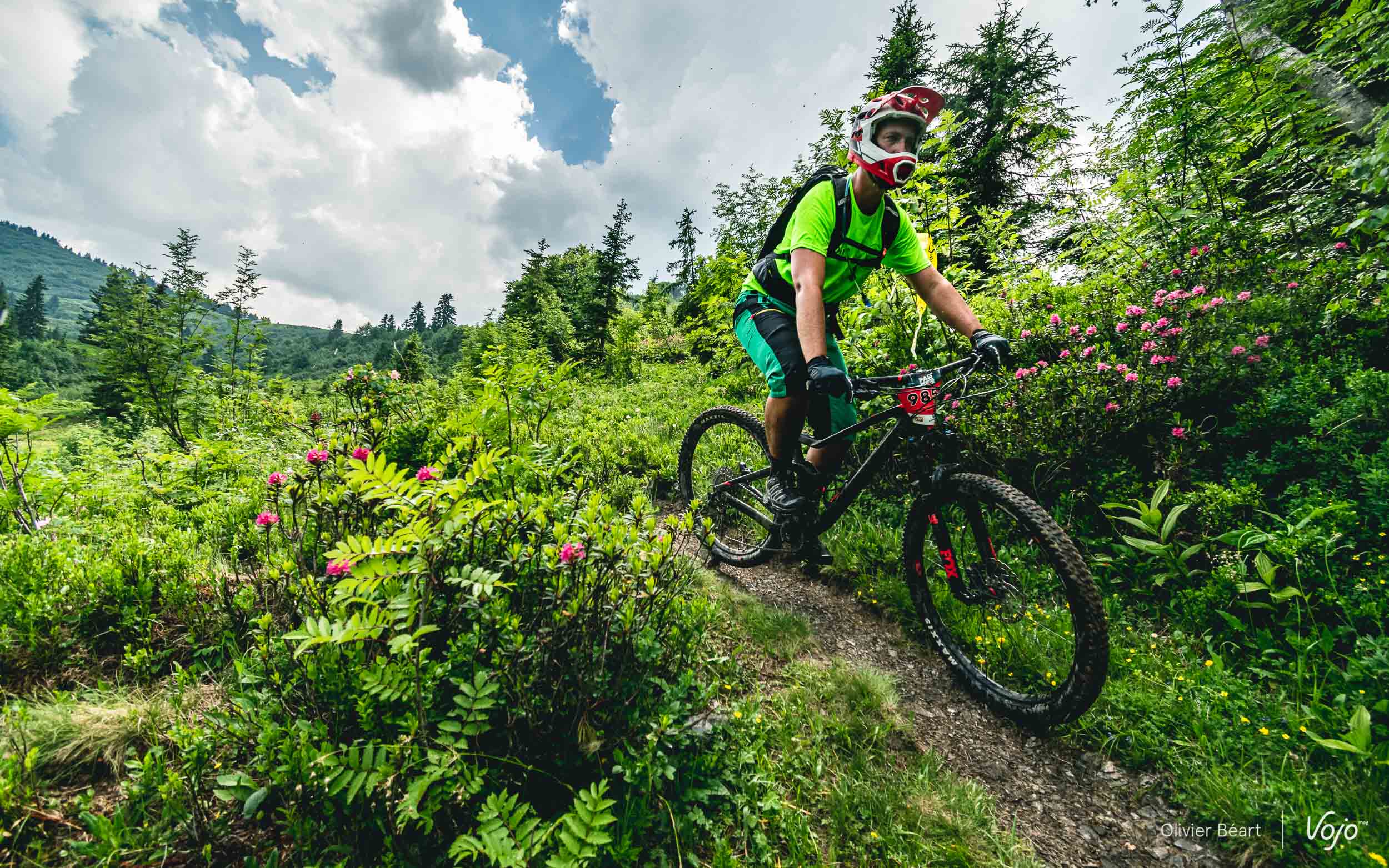 Notre nouveau rider tout frais se découvre alors un talent caché pour le pilotage, épaulé par les conseils aguerris de ses acolytes de la journée, Léo et Olivier : pierriers, racines, il passe tout ! Et sur le vélo s’il vous plait !