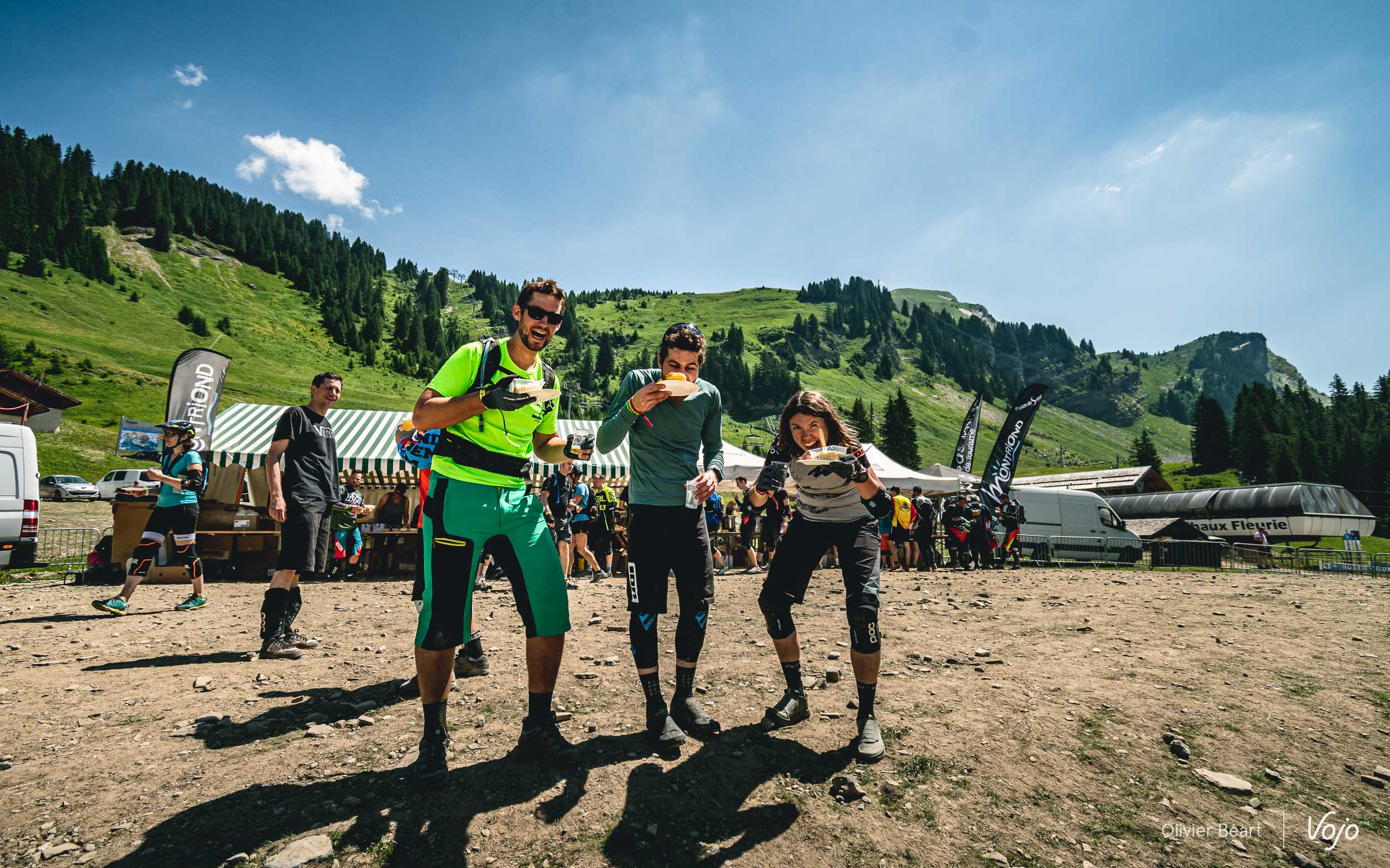Au ravitaillement à Torgon, on profite des excellentes spécialités locales (charcuteries, Rivella, bière 7Peaks spéciale Pass’Portes,…) et si besoin on peut aussi recharger sa batterie à l’une des nombreuses bornes présentes dans la station.