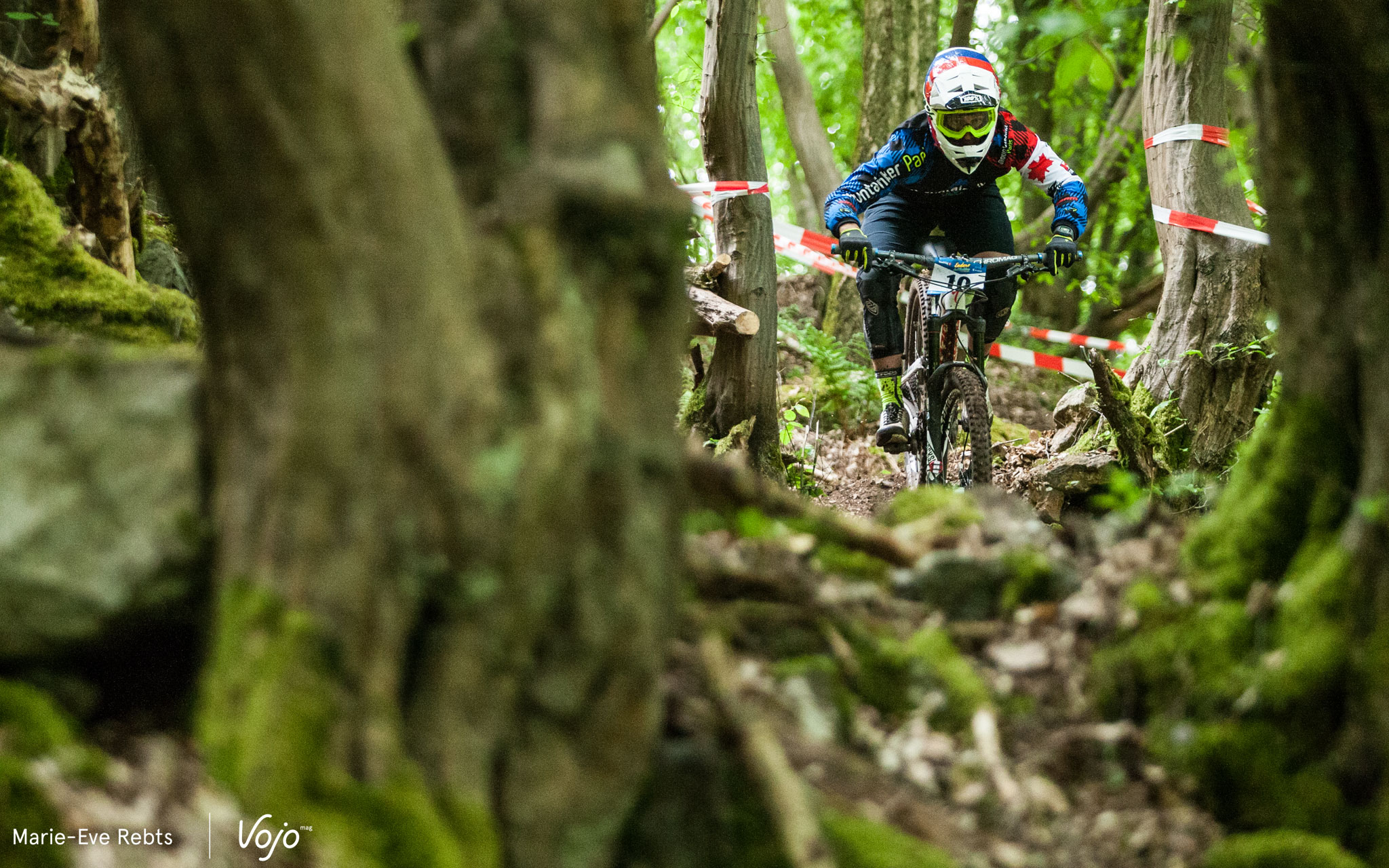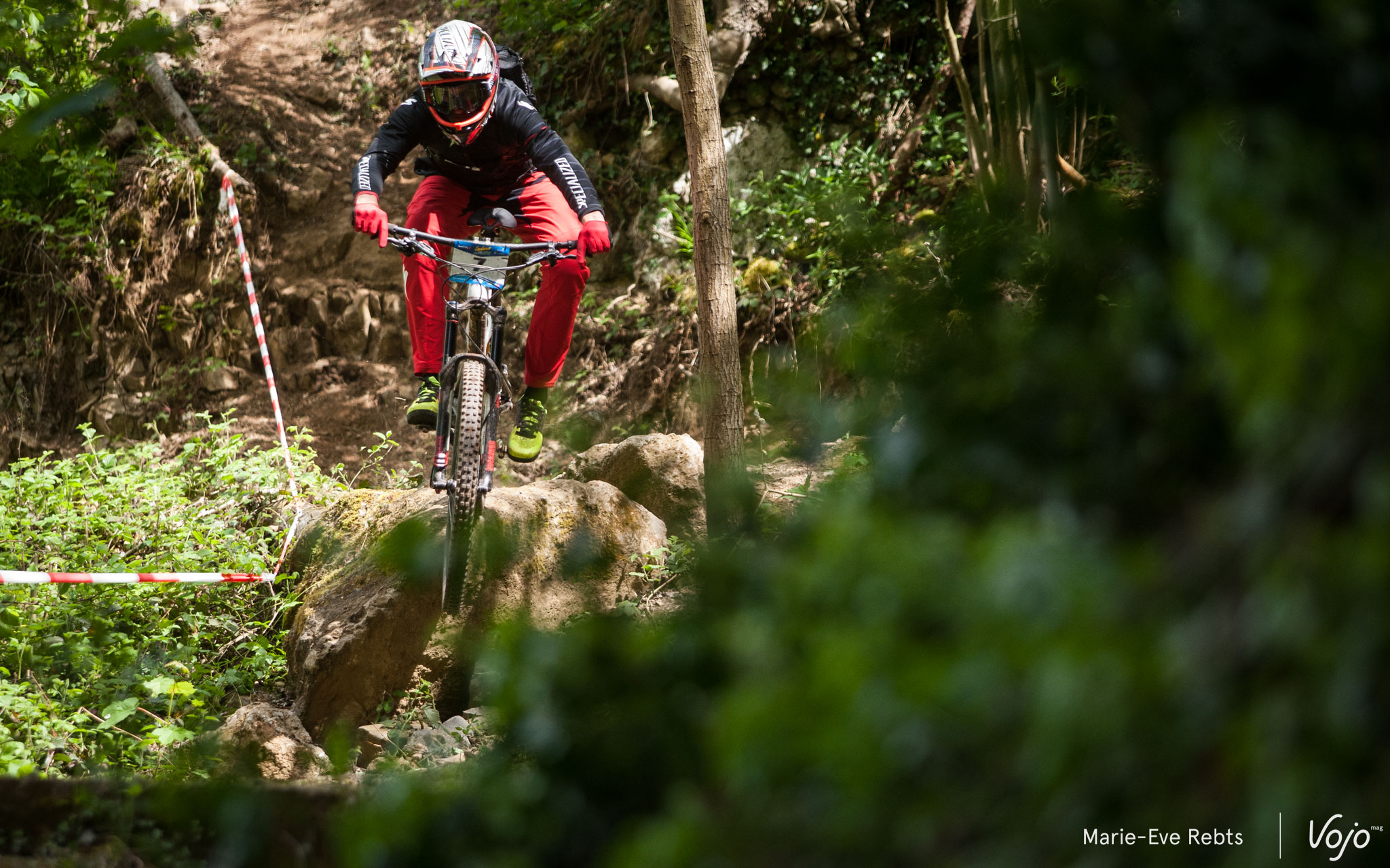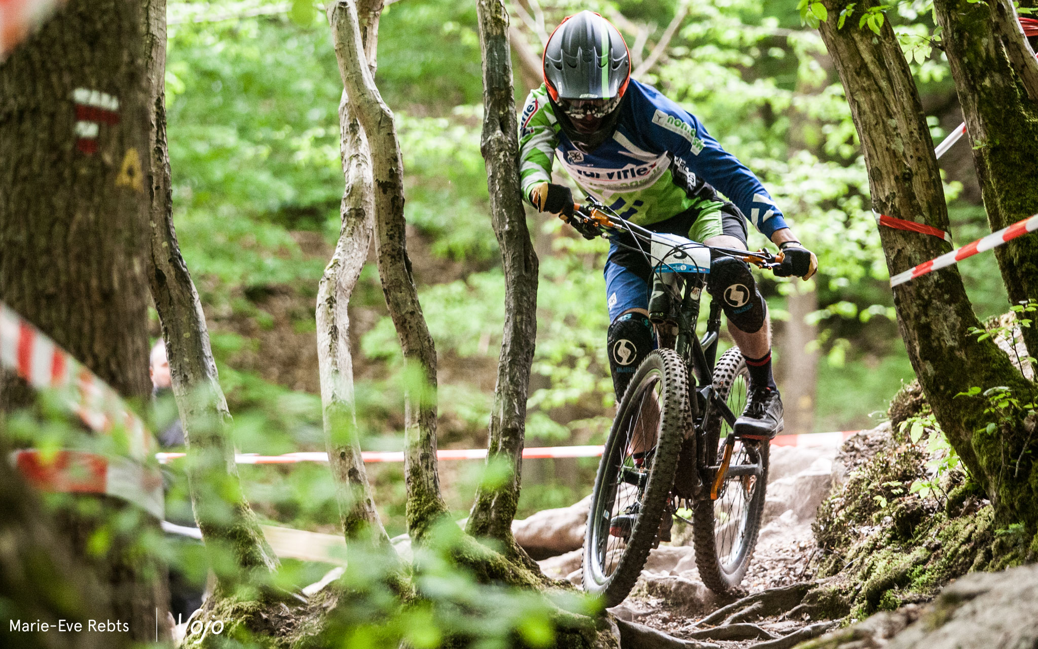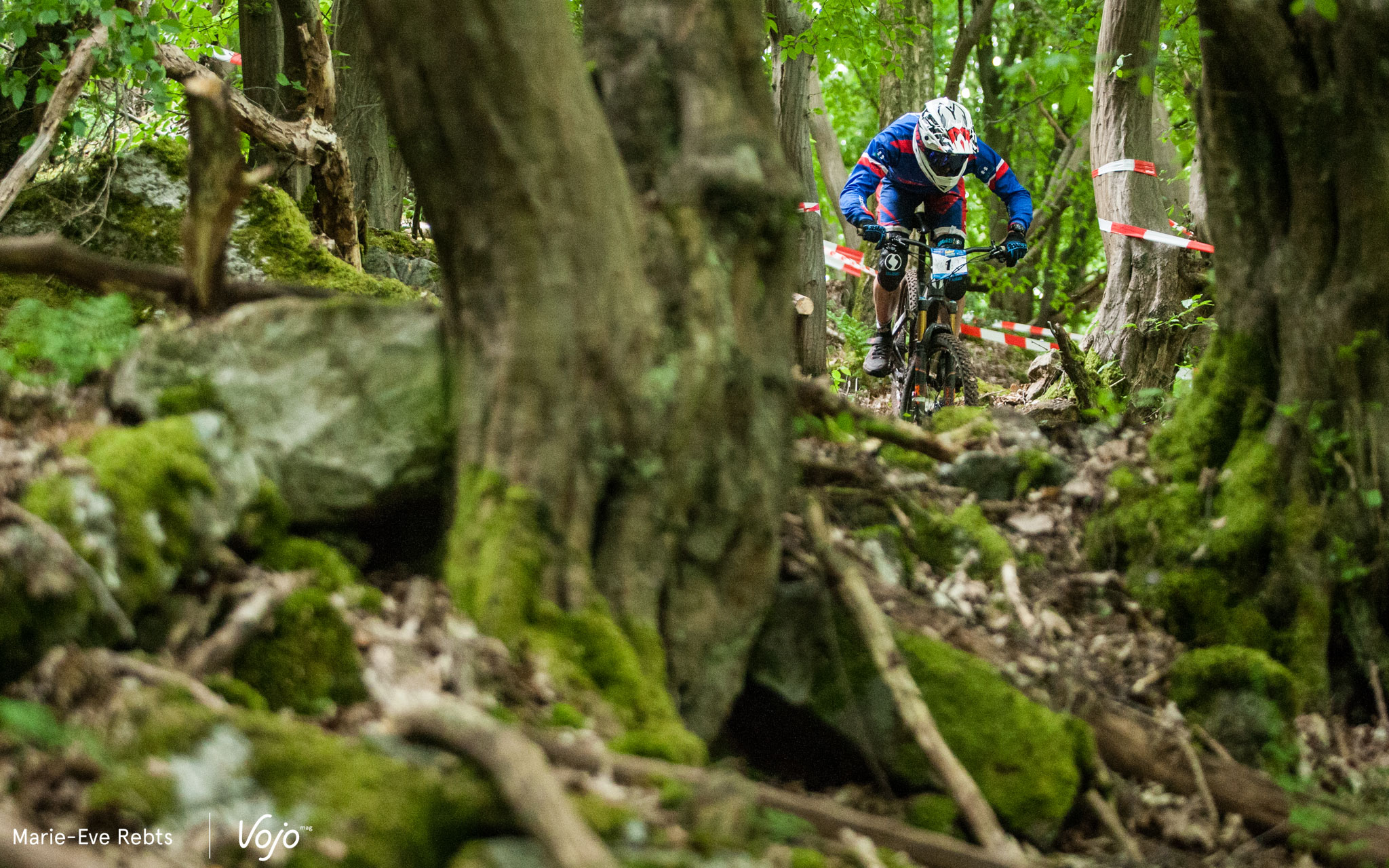 … quelques pierres au milieu… Et un final qui a causé une grosse frayeur à certains. Une racine placée à hauteur de cintre, le truc à côté duquel on passe 100 fois lors des repérages sans noter que ça peut être dangereux puis, en course, la voilà qui entraîne plusieurs chutes. La difficulté a rapidement été signalée ensuite mais on a évité le pire. Regardez cette petite vidéo pour vous rendre compte :
