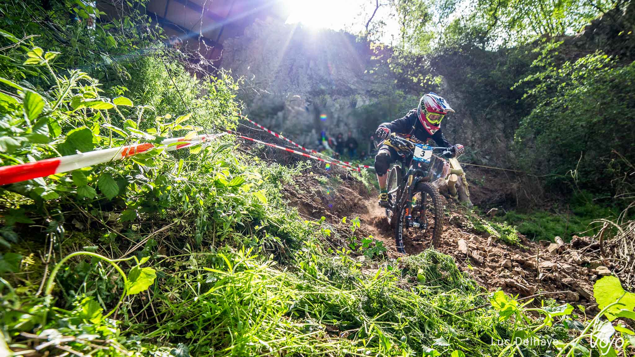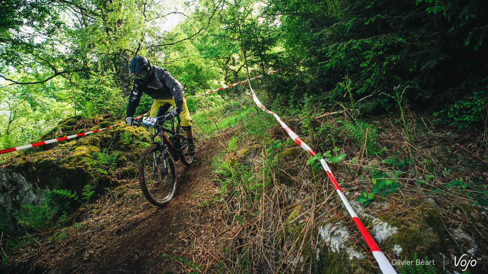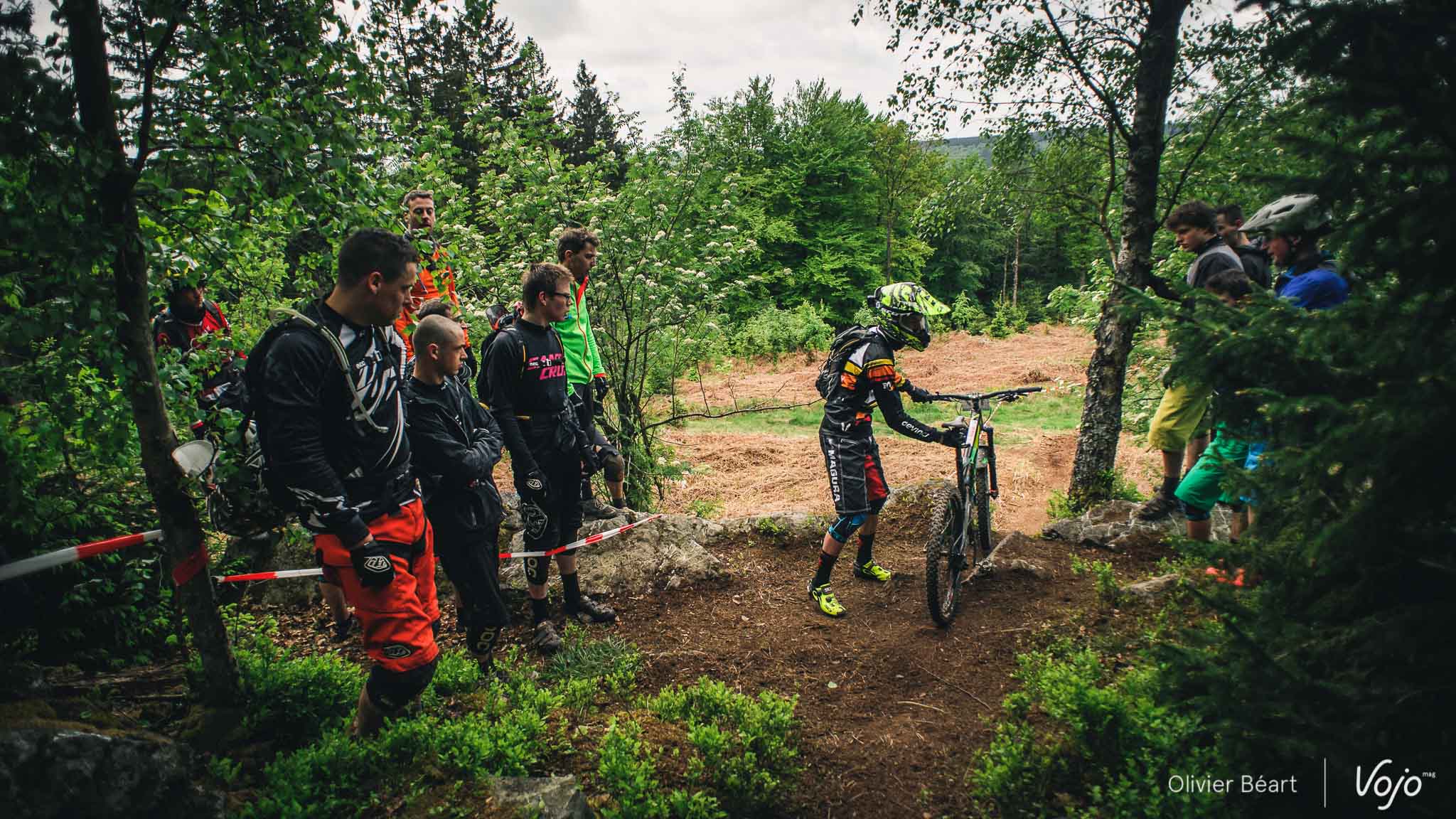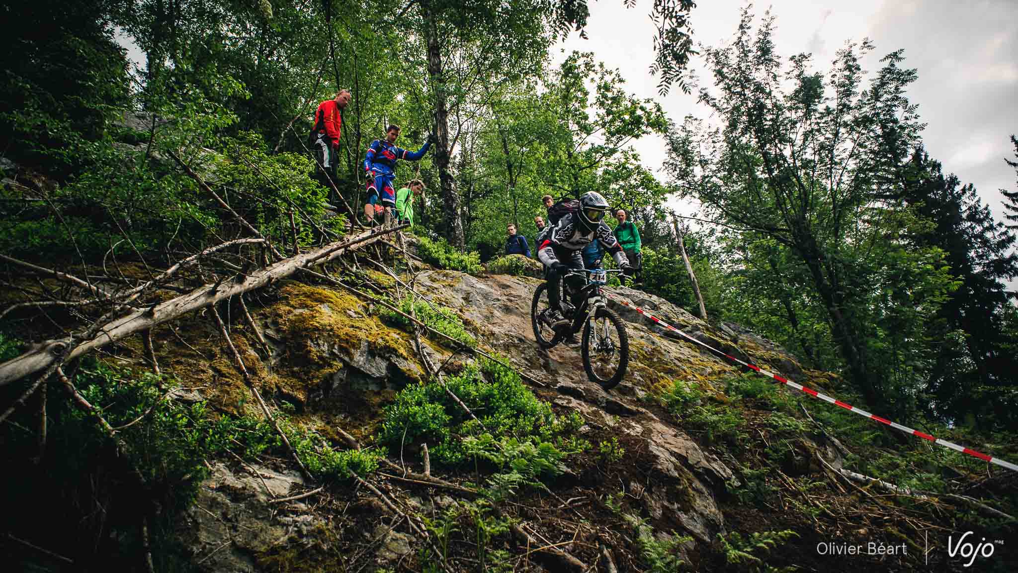 Dans le premier des 7 chronos du jour, la mythique Porallée, Julien Soussigne fait honneur à son dossard numéro 1 et assomme la concurrence en collant près de 8 secondes à Olivier Bruwière. Un fameux écart. Un gouffre. Il sait que s’il veut inscrire son nom au palmarès de cette épreuve mythique, c’est l’année ou jamais, vu l’absence du fidèle Martin Maes qui a évidemment pris part à l’EWS Ireland.