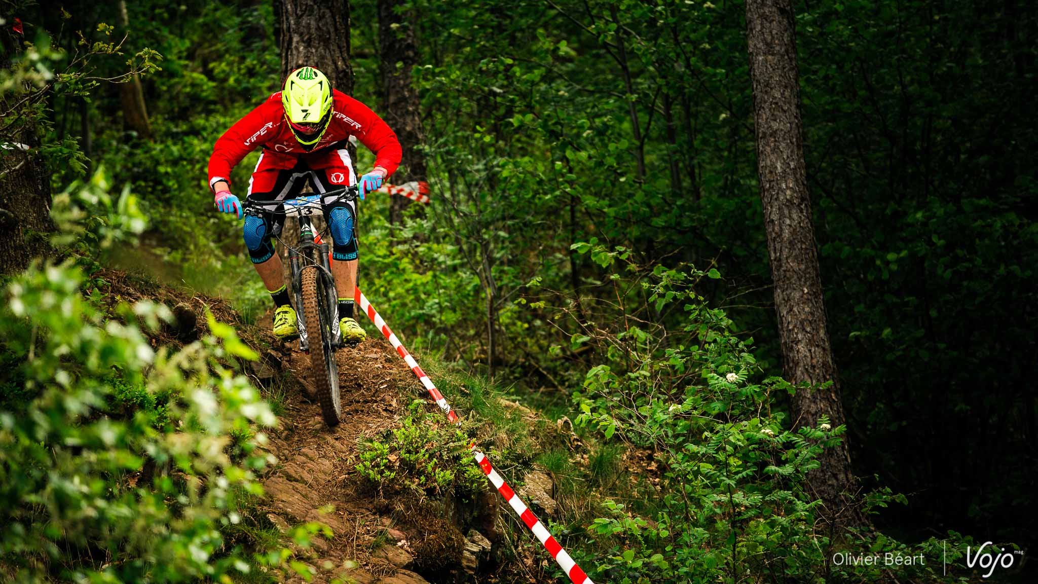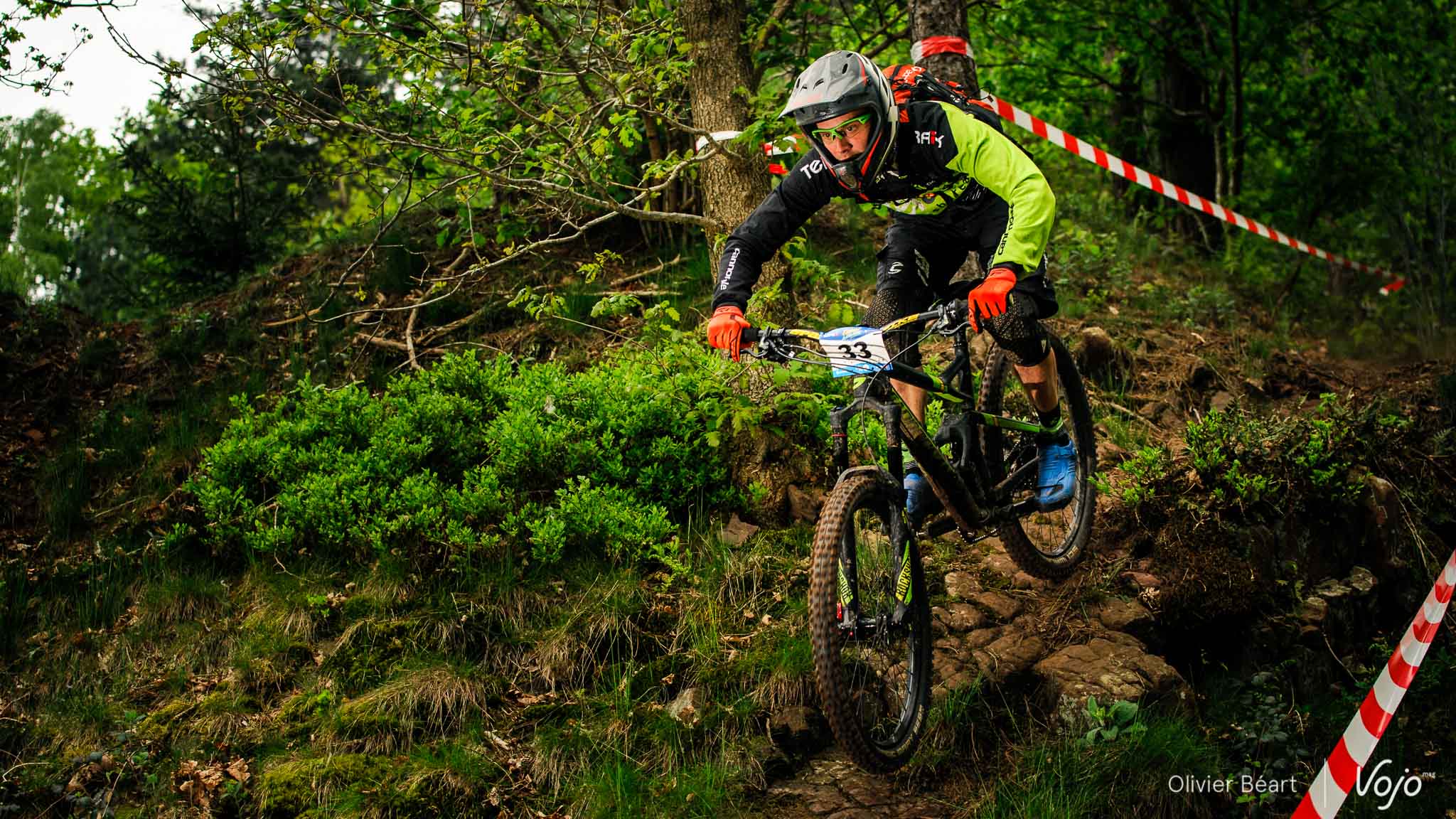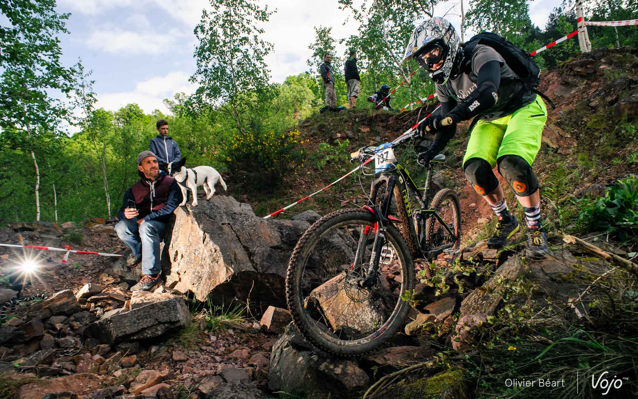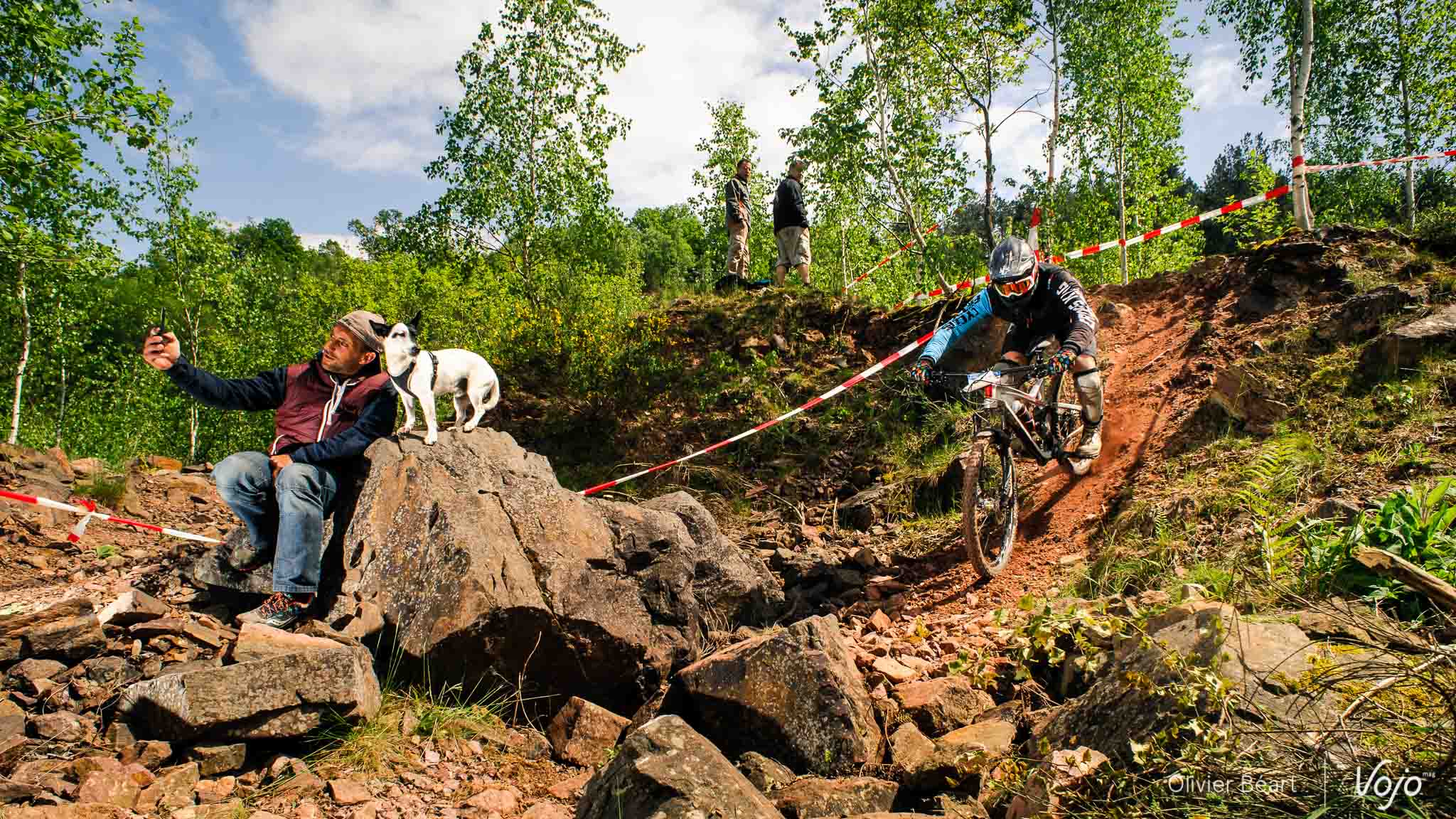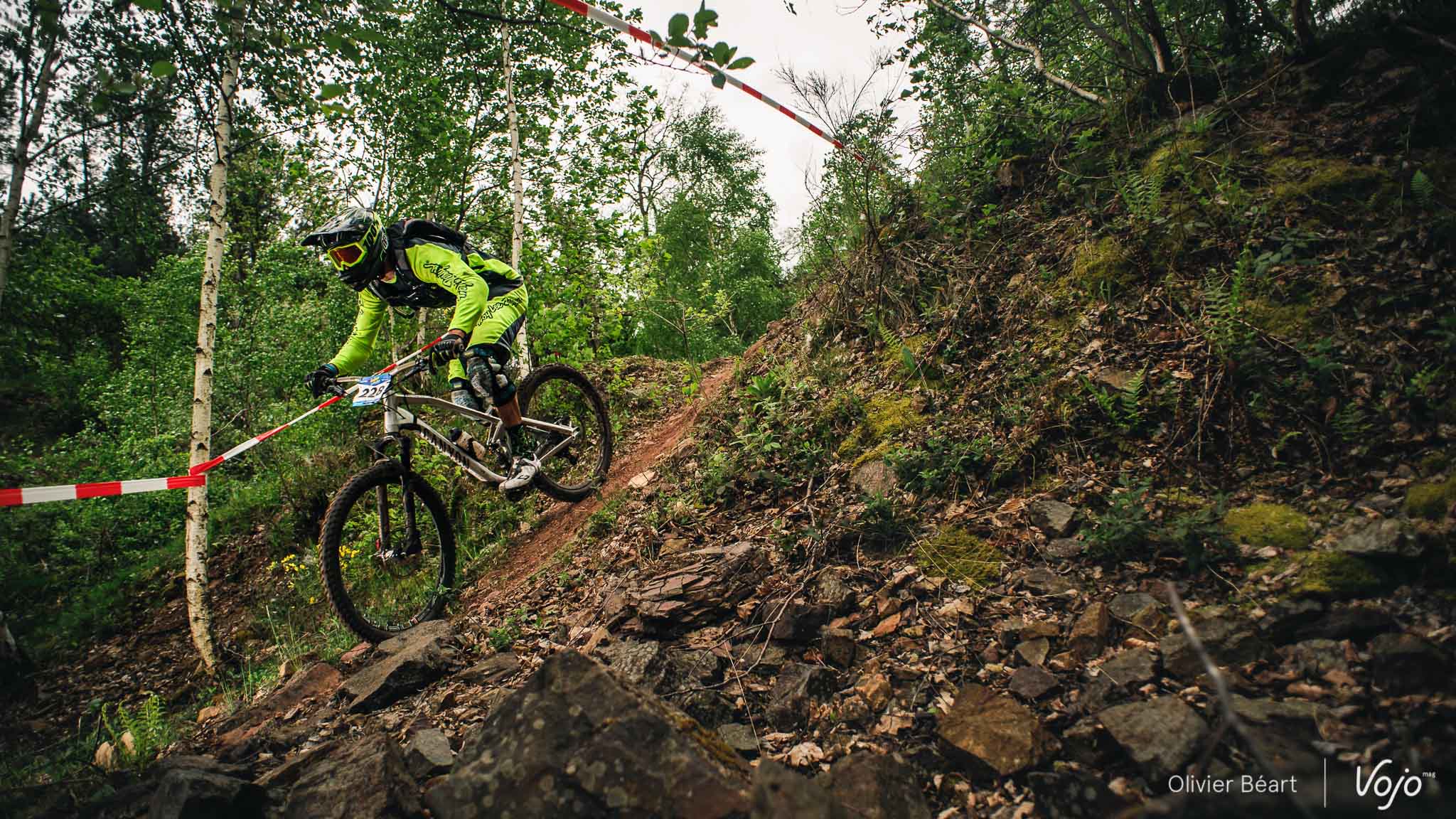 Dans le premier des 7 chronos du jour, la mythique Porallée, Julien Soussigne fait honneur à son dossard numéro 1 et assomme la concurrence en collant près de 8 secondes à Olivier Bruwière. Un fameux écart. Un gouffre. Il sait que s’il veut inscrire son nom au palmarès de cette épreuve mythique, c’est l’année ou jamais, vu l’absence du fidèle Martin Maes qui a évidemment pris part à l’EWS Ireland.