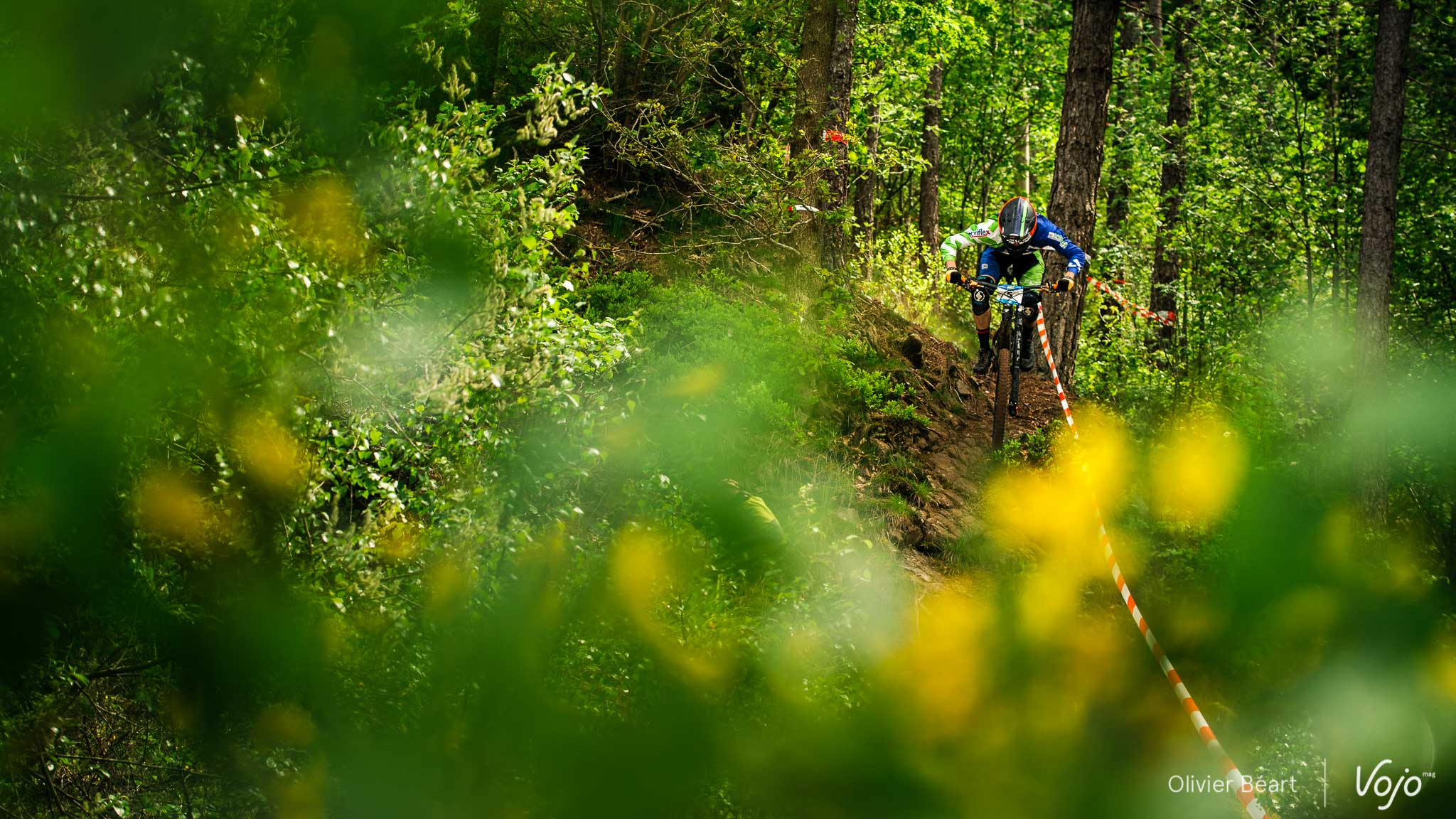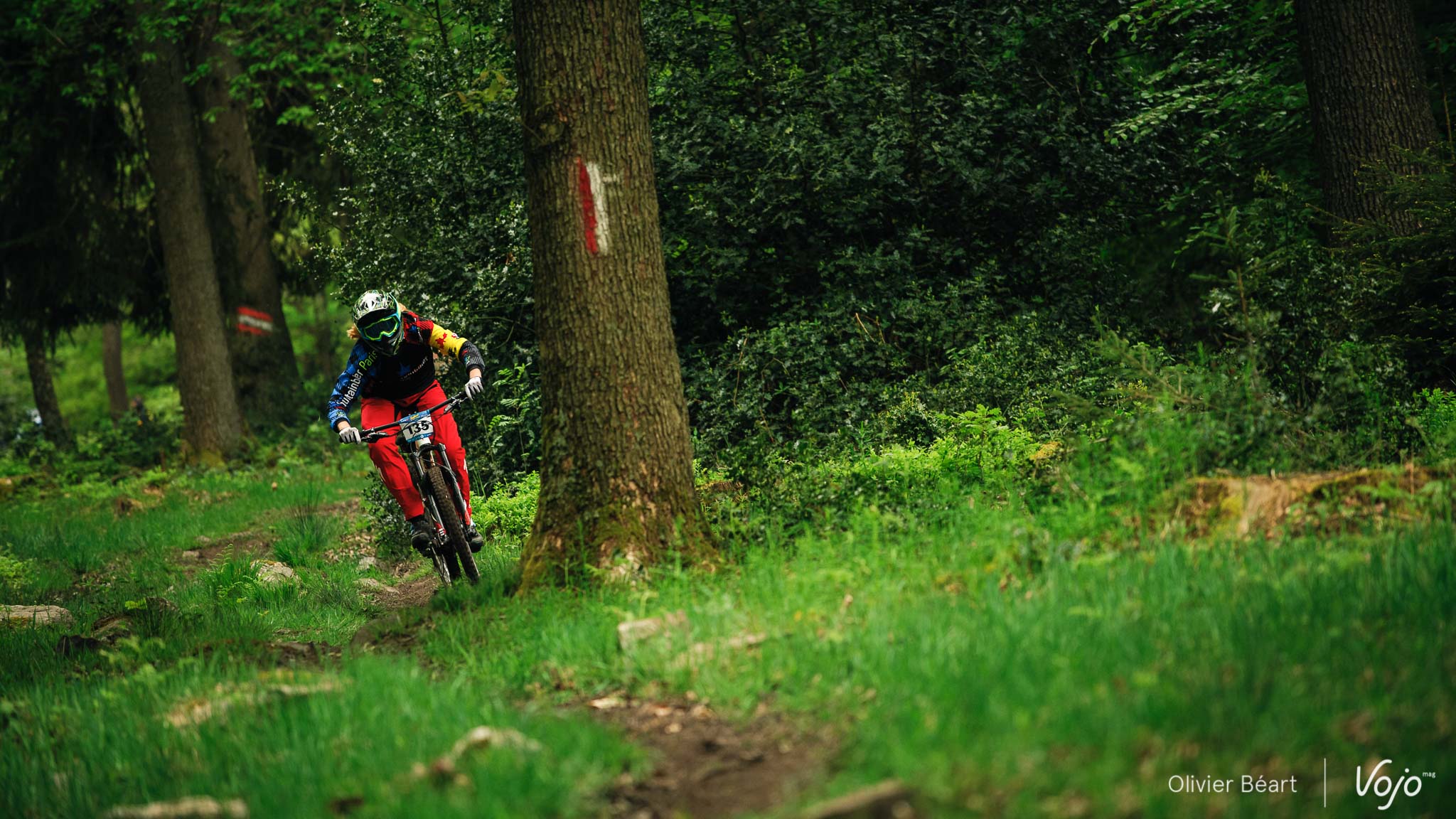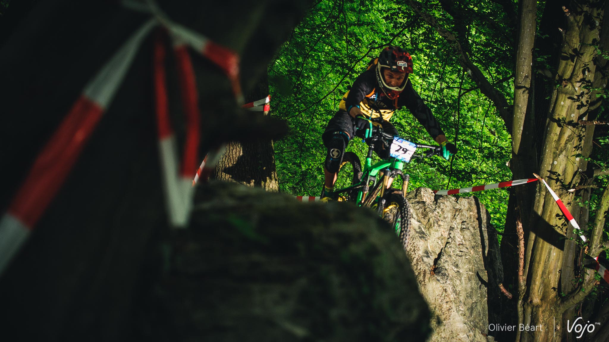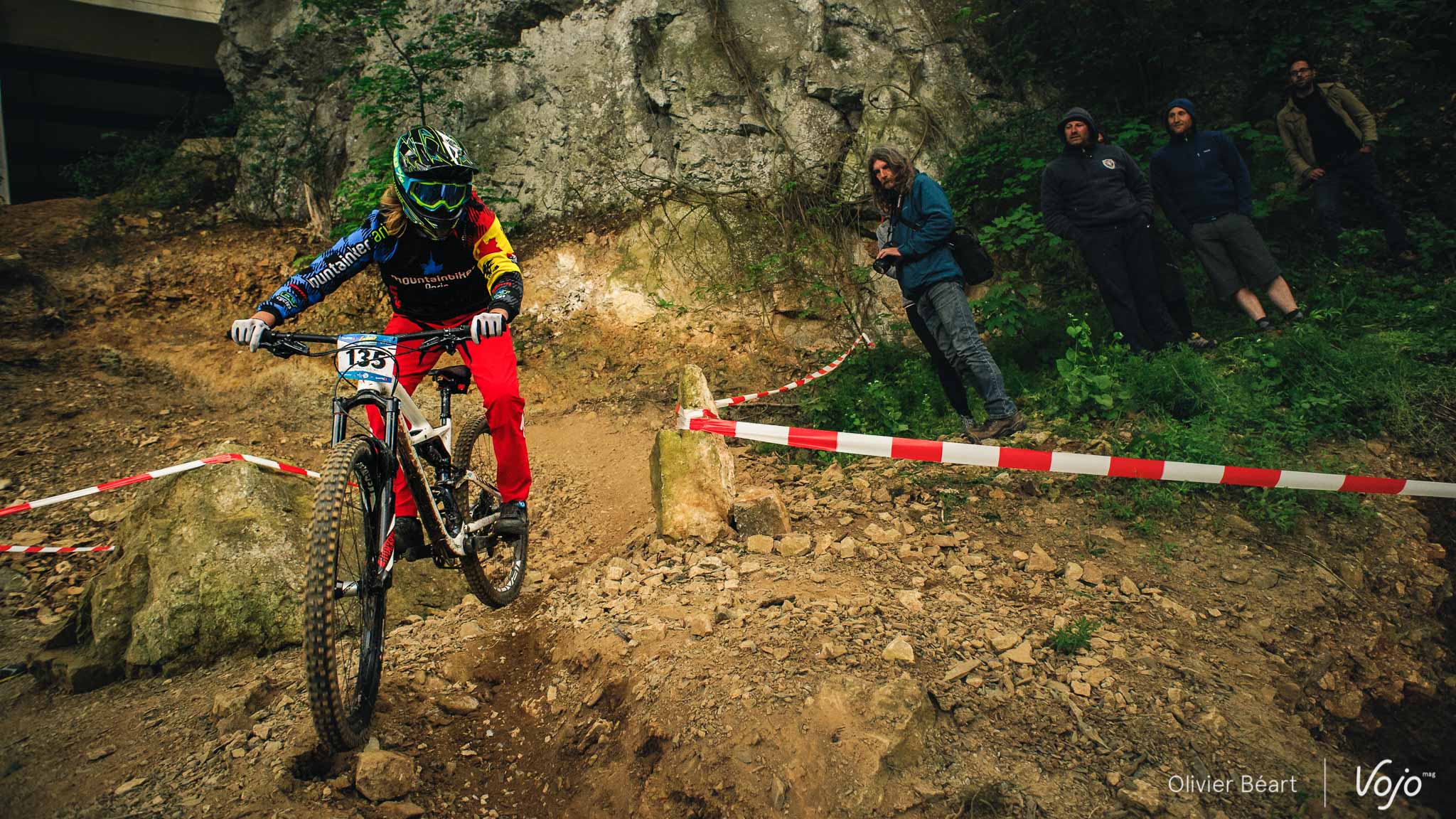 Dans le premier des 7 chronos du jour, la mythique Porallée, Julien Soussigne fait honneur à son dossard numéro 1 et assomme la concurrence en collant près de 8 secondes à Olivier Bruwière. Un fameux écart. Un gouffre. Il sait que s’il veut inscrire son nom au palmarès de cette épreuve mythique, c’est l’année ou jamais, vu l’absence du fidèle Martin Maes qui a évidemment pris part à l’EWS Ireland.