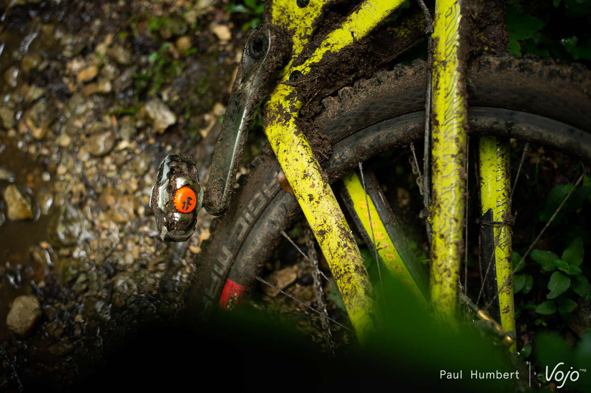 À l’arrivée, un jet d’eau permet de décharger les vélos des kilos de boue qui sont venus s’y loger.