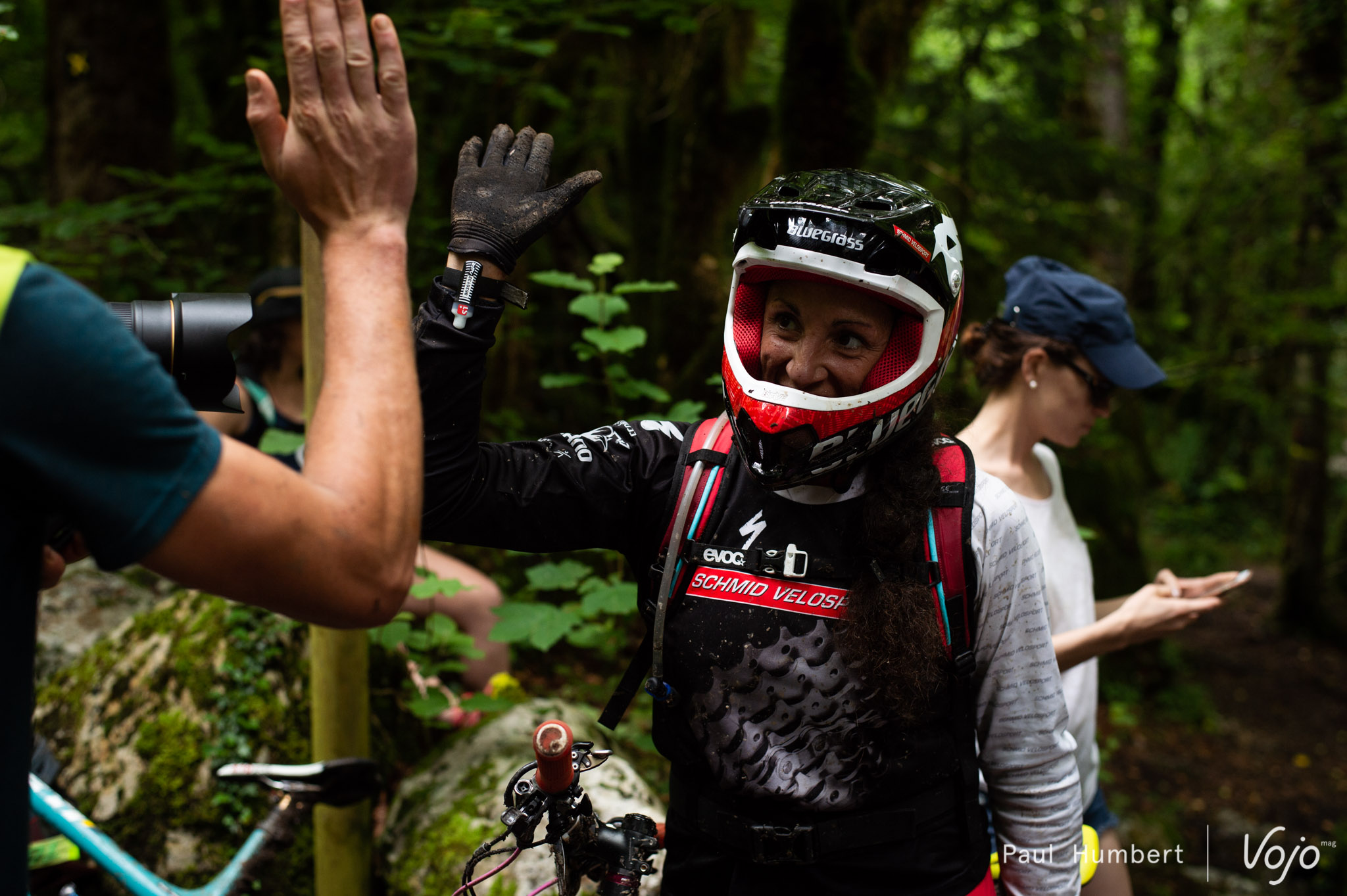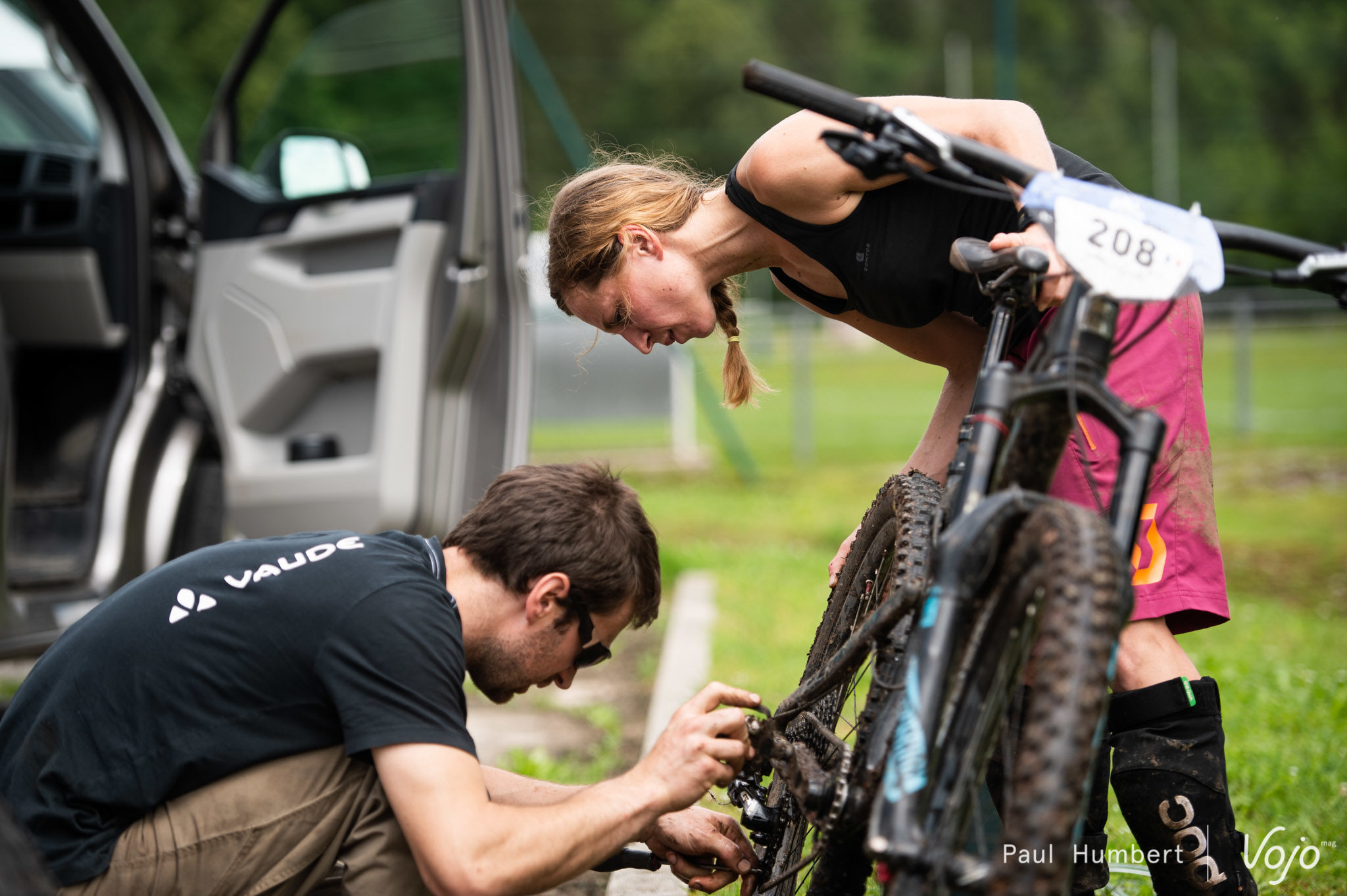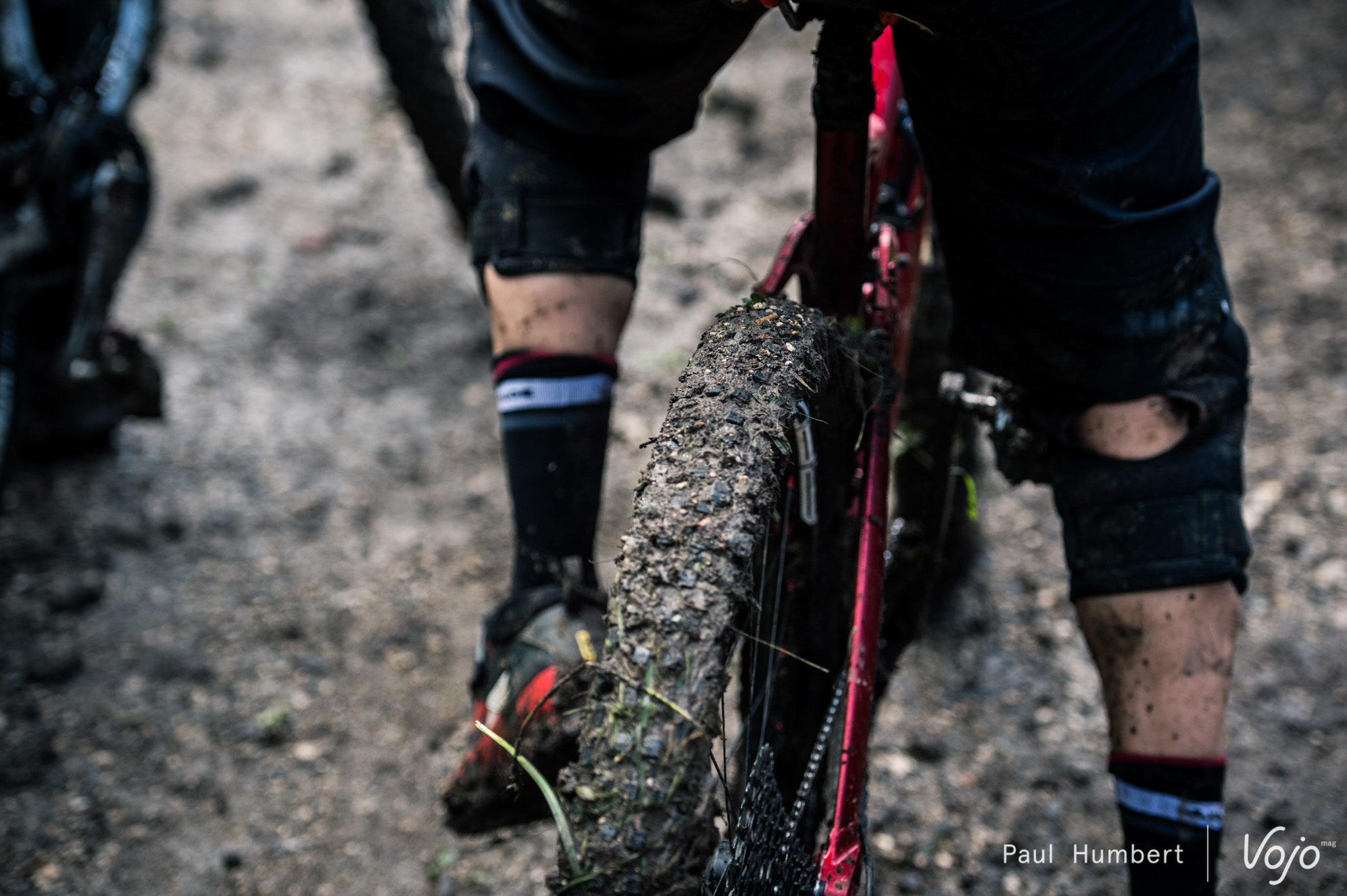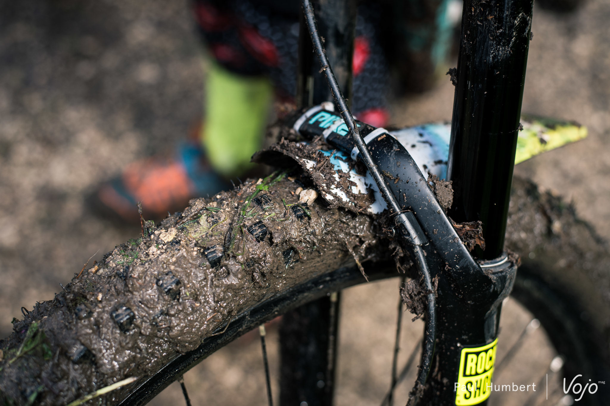 C’est justement là que nous retrouvons Léa, la première de nos trois gagnants. Avant la course, elle a installé un pneu Schwalbe Dirty Dan à l’avant de son vélo pour aller se planter dans la boue, en complément d’un Magic Mary à l’arrière. L’ensemble remplace les pneus d’origine de son vélo et si dans la terre du Jura rien ne semble vraiment adhérer, elle a l’air plutôt confiante !