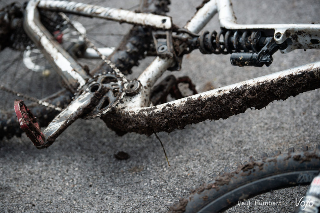 À l’arrivée, un jet d’eau permet de décharger les vélos des kilos de boue qui sont venus s’y loger.