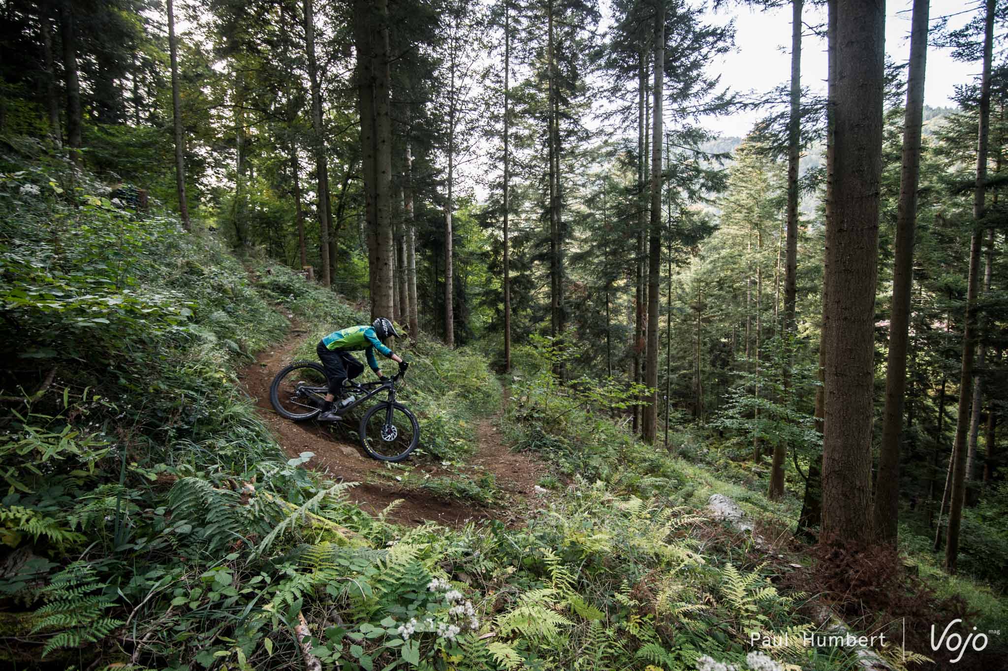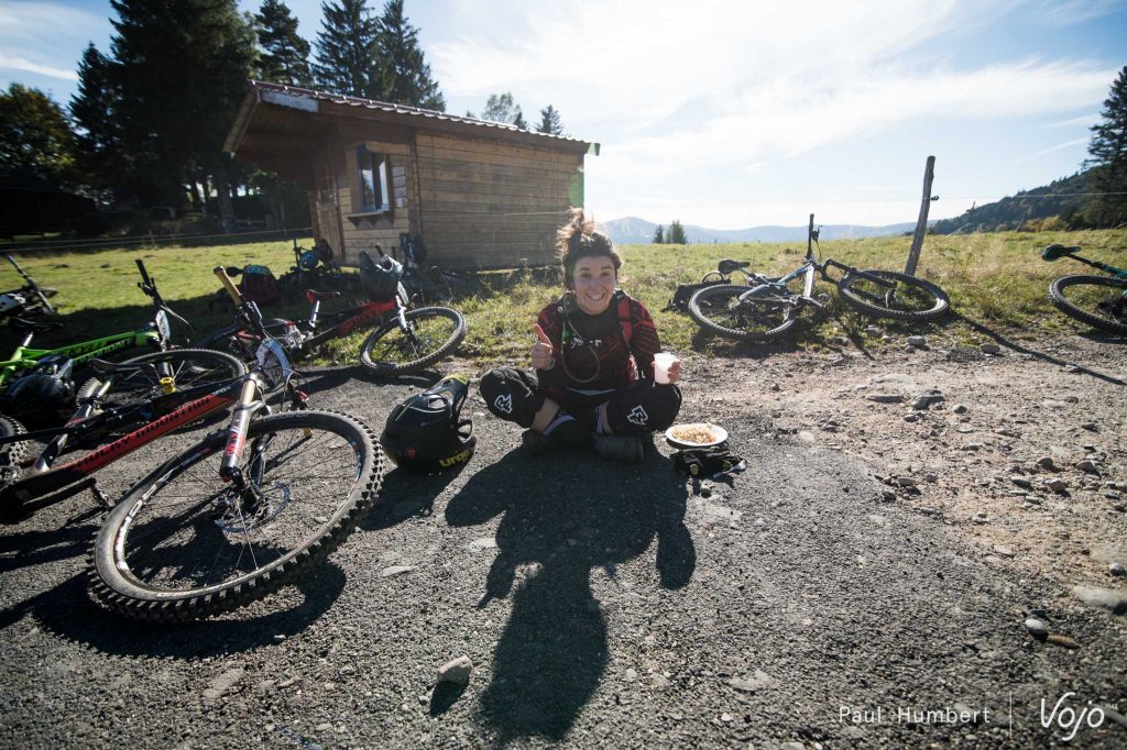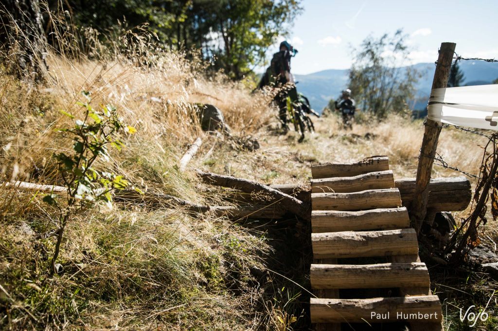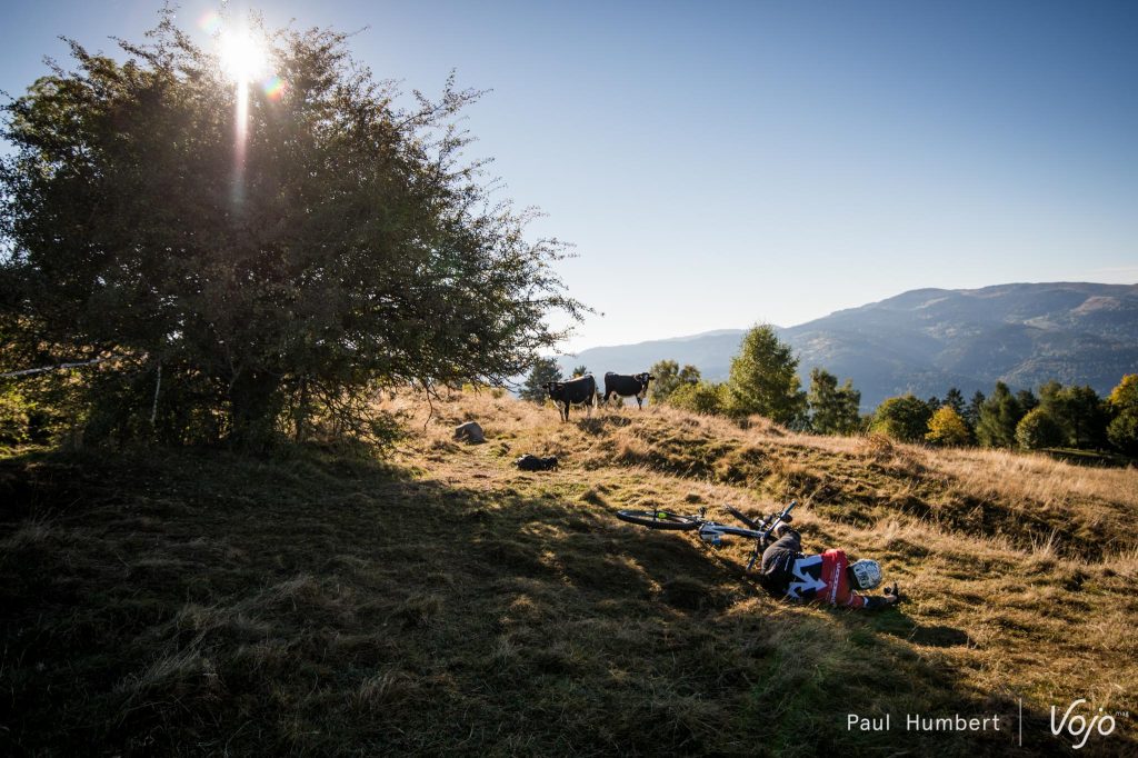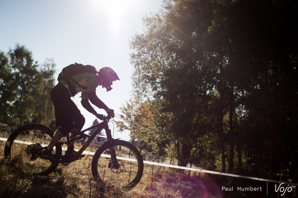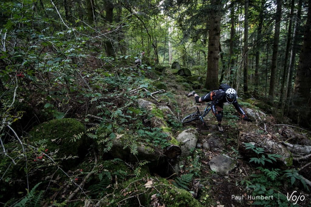 Les premières liaisons se font sur la route et on attaque sérieusement le dénivelé positif. Arrivé à une première ferme auberge, on plonge dans un tracé à peine roulé et ouvert pour l’occasion.