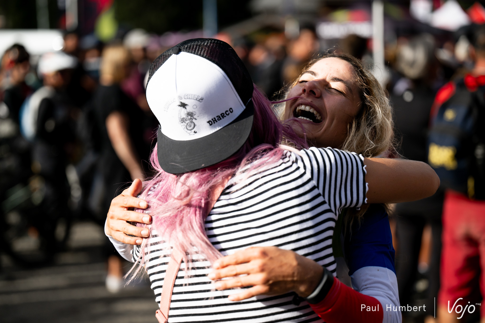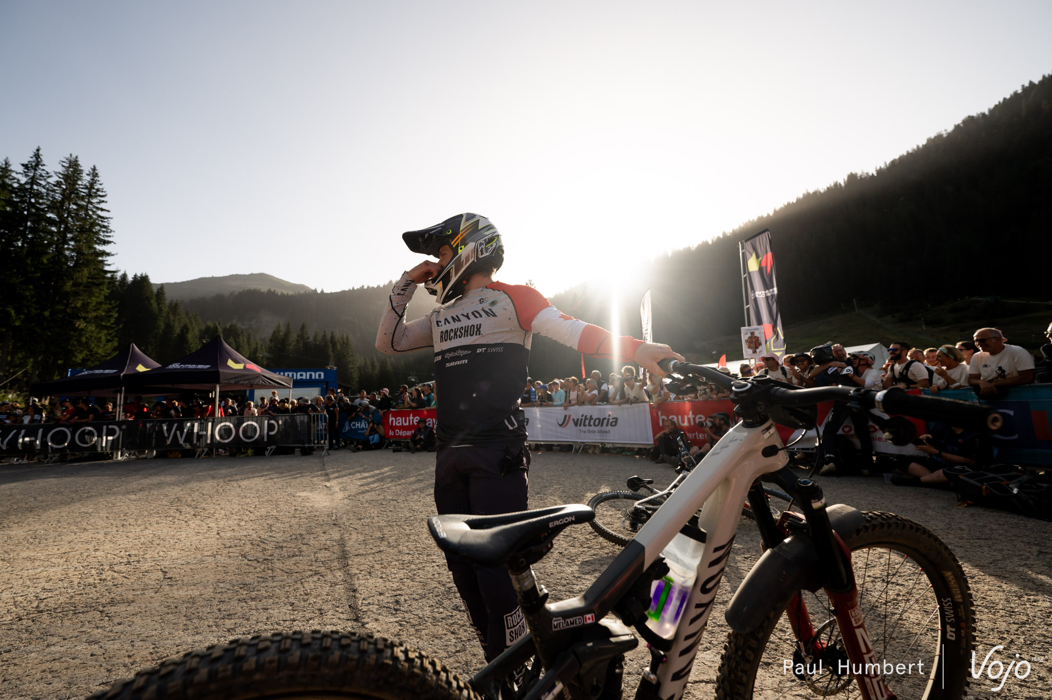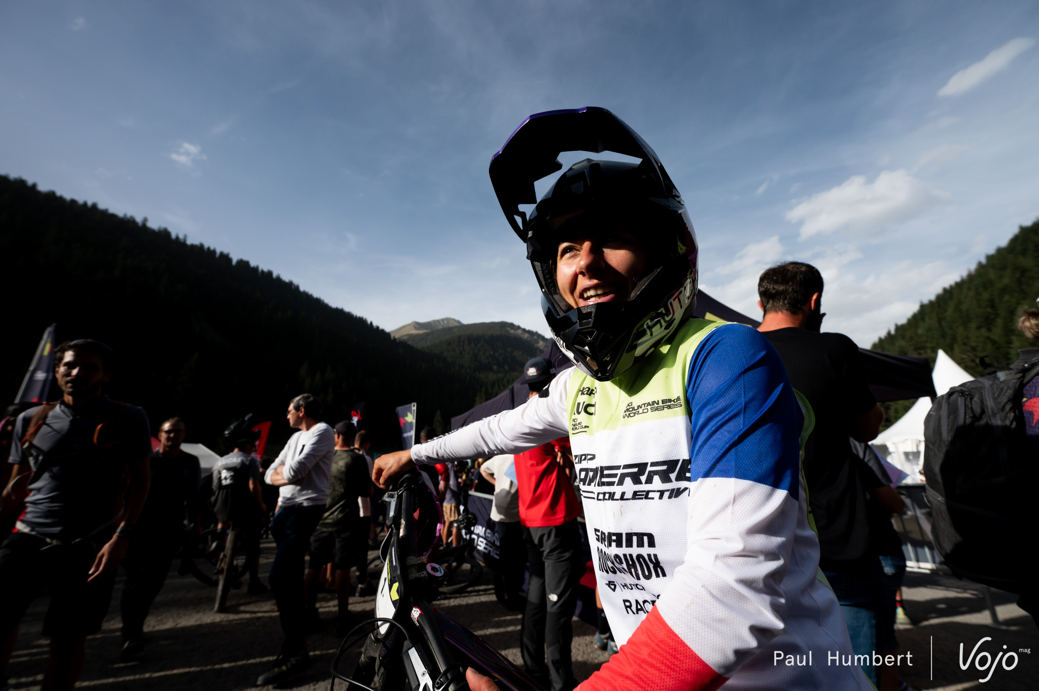 C’est donc dans la tête que se passe aussi la course et on a retrouvé les deux pilotes au pied du bikepark au moment où le soleil s’apprêtait à passer derrière les montagnes. Après le passage de Morgane Charre sous l’arche d’arrivée, tous les regards sont tournés vers la pilote Lapierre.