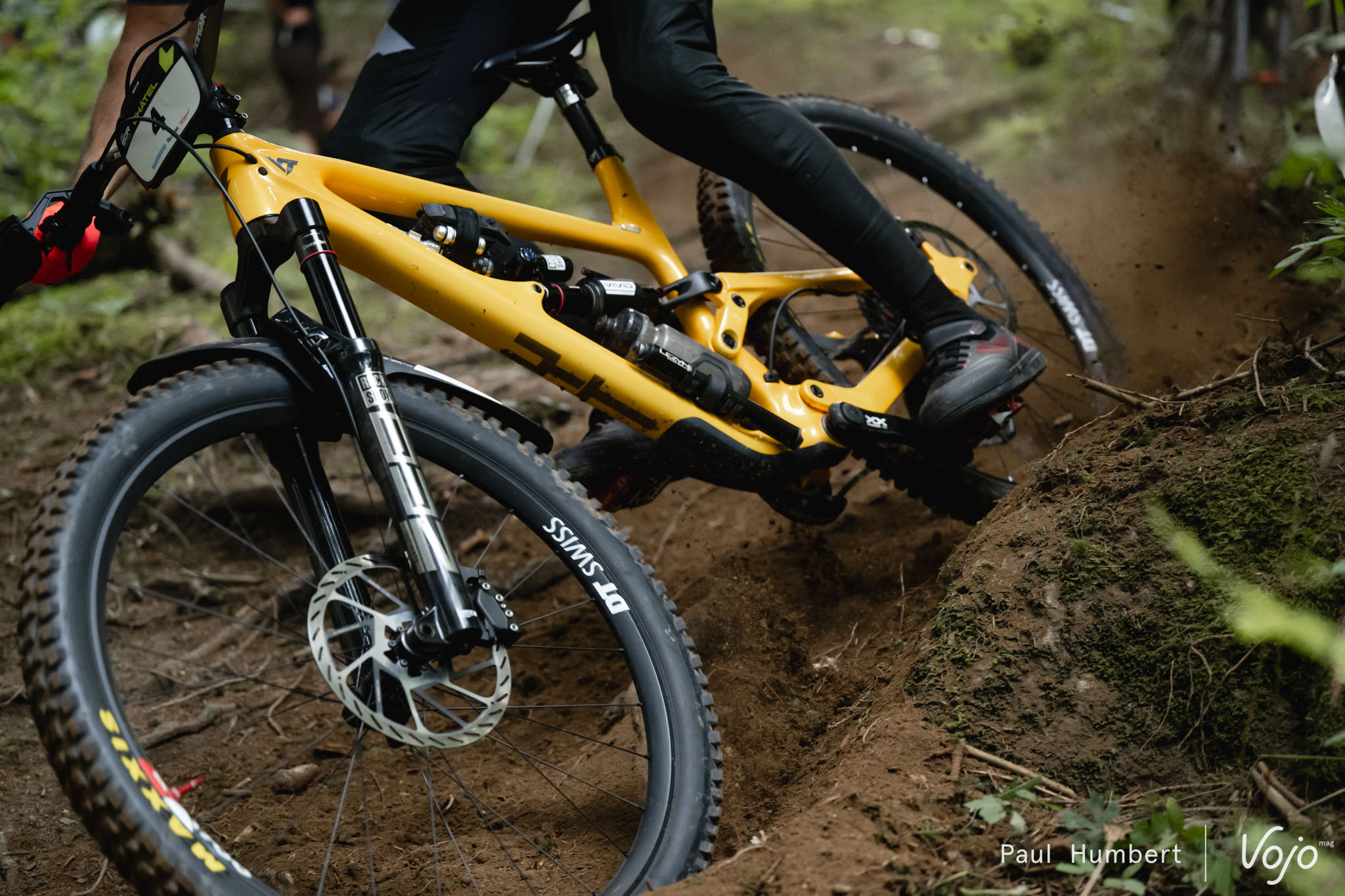 Jack Moir est un des favoris du public, du chrono, mais également du paddock. On le retrouvait sur la course au guidon de son YT Capra, équipé des prototypes de freins Sram qui circulent çà et là depuis plus d’une année.