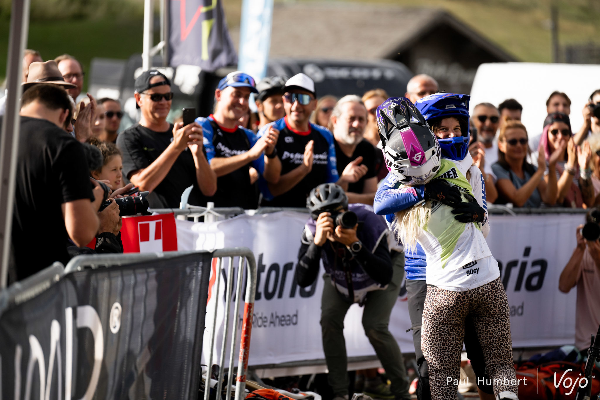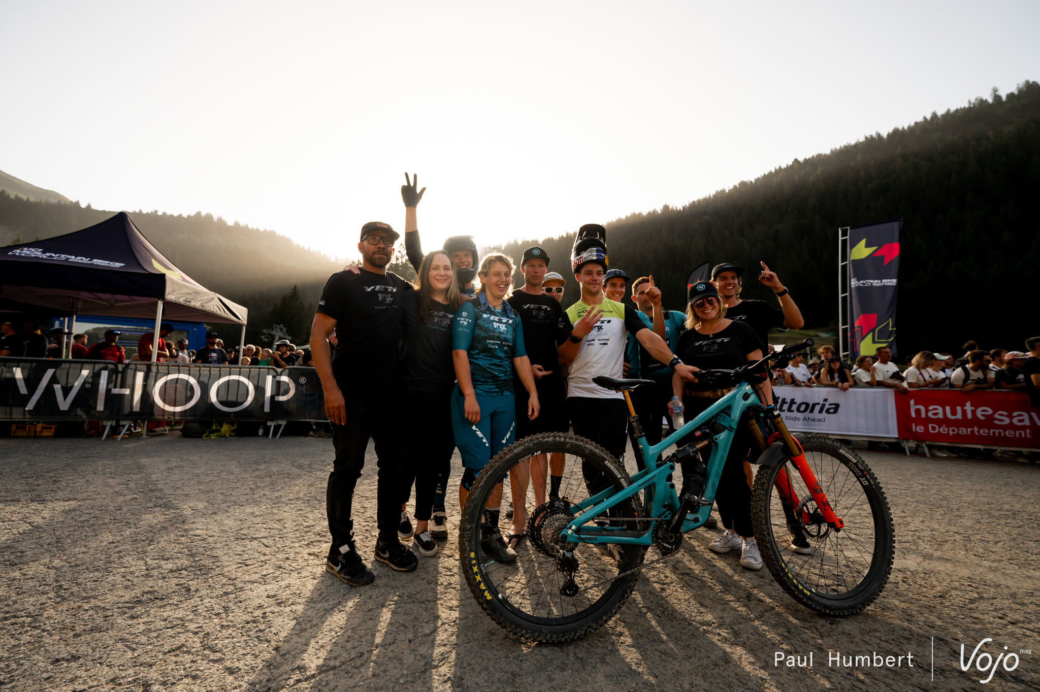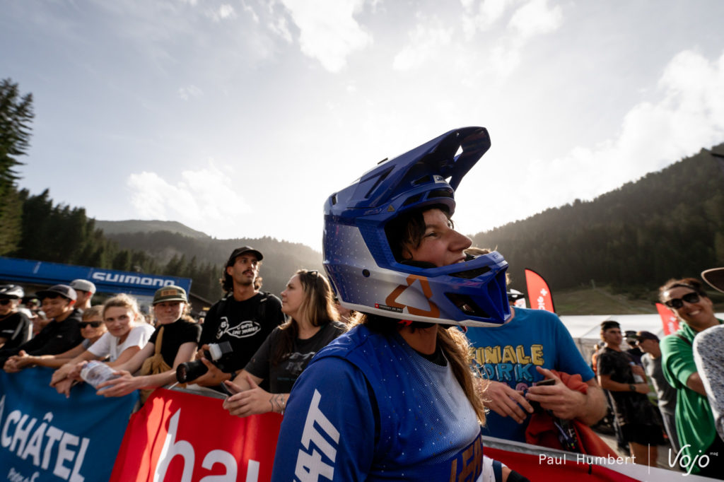 C’est donc dans la tête que se passe aussi la course et on a retrouvé les deux pilotes au pied du bikepark au moment où le soleil s’apprêtait à passer derrière les montagnes. Après le passage de Morgane Charre sous l’arche d’arrivée, tous les regards sont tournés vers la pilote Lapierre.