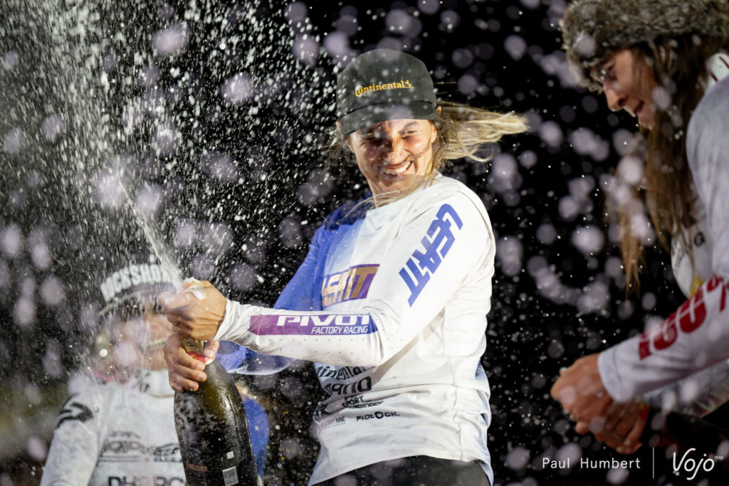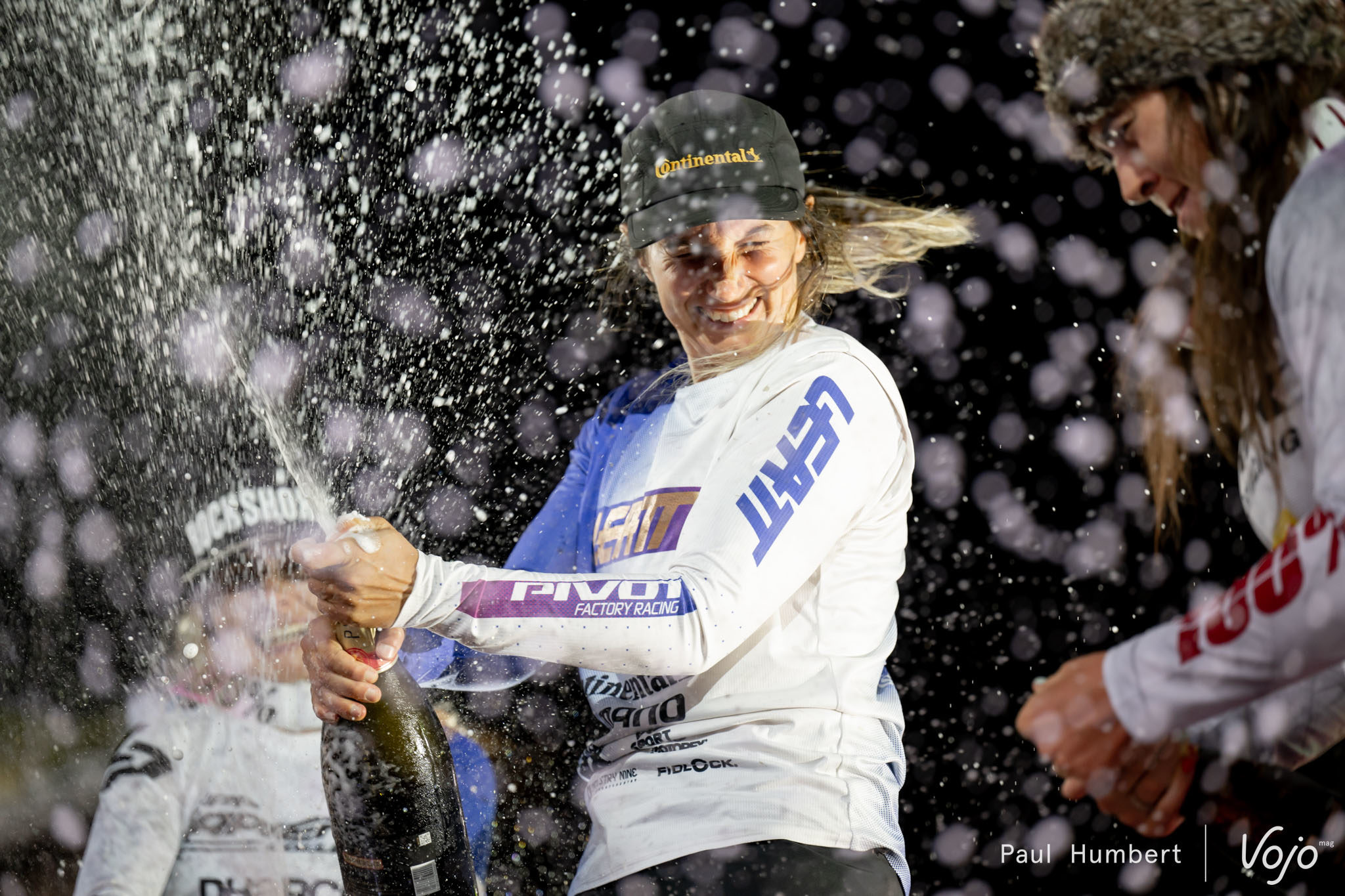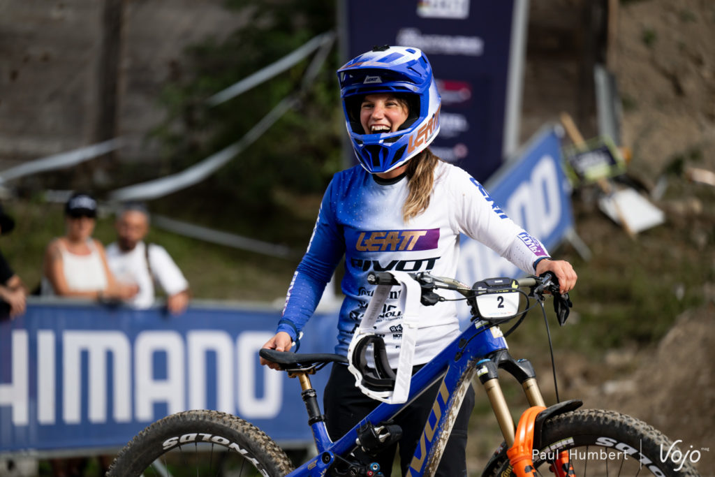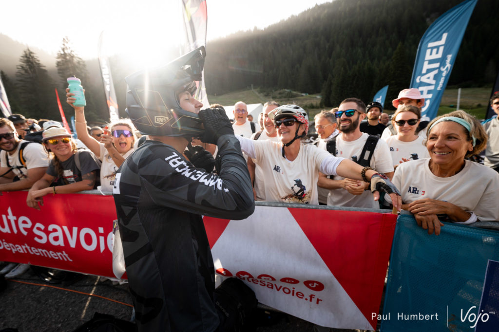 C’est donc dans la tête que se passe aussi la course et on a retrouvé les deux pilotes au pied du bikepark au moment où le soleil s’apprêtait à passer derrière les montagnes. Après le passage de Morgane Charre sous l’arche d’arrivée, tous les regards sont tournés vers la pilote Lapierre.