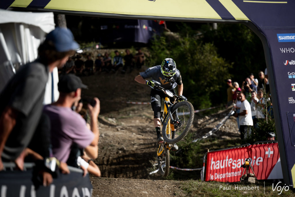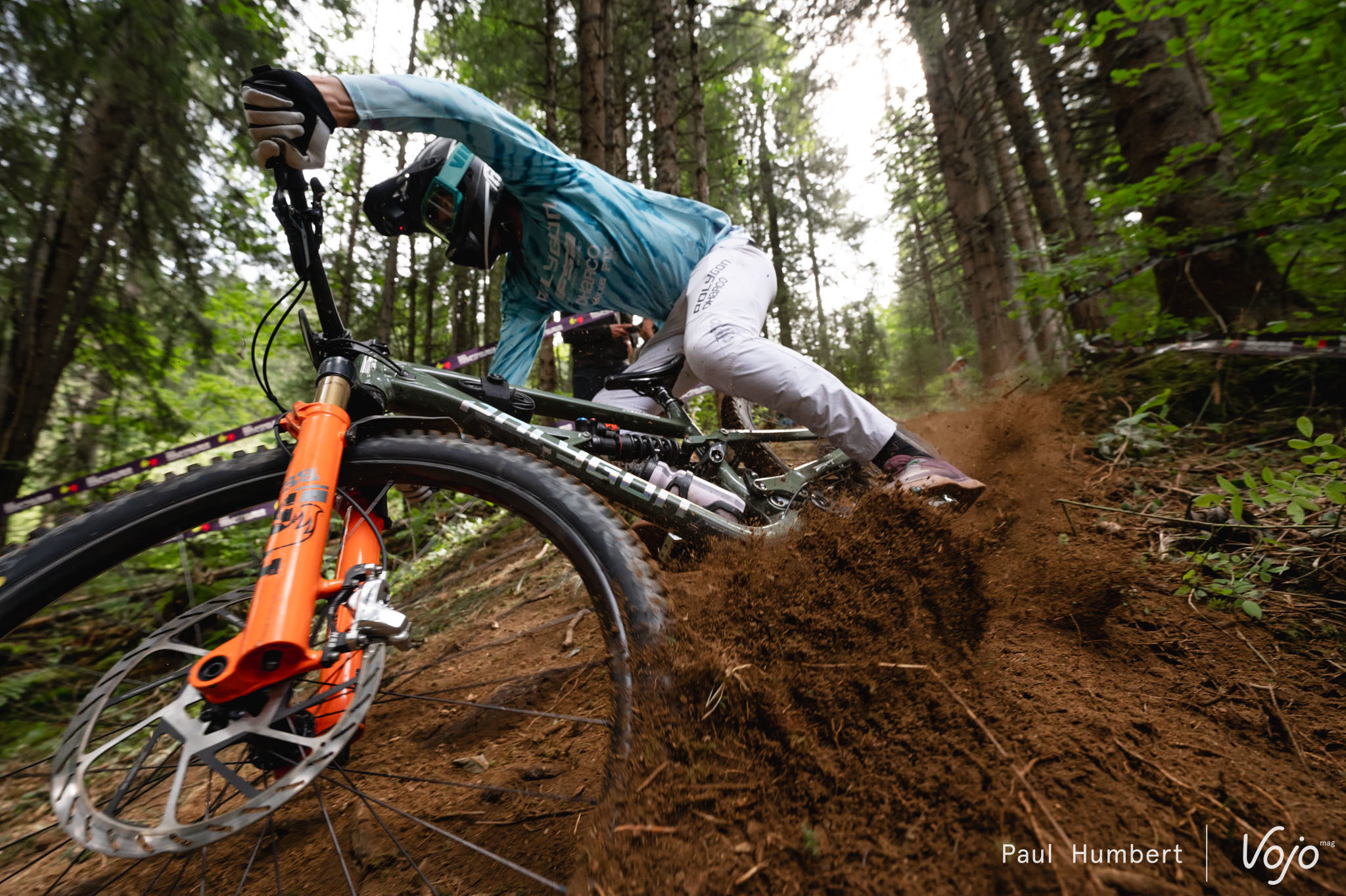 Jack Moir est un des favoris du public, du chrono, mais également du paddock. On le retrouvait sur la course au guidon de son YT Capra, équipé des prototypes de freins Sram qui circulent çà et là depuis plus d’une année.