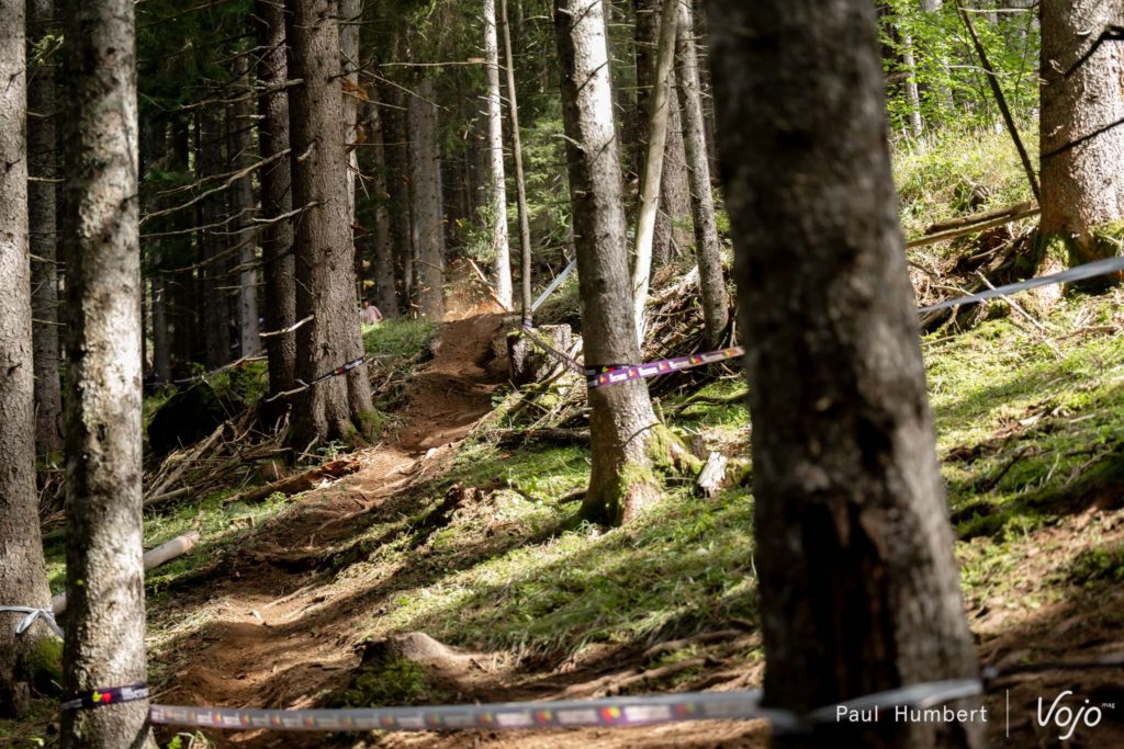 Le tracé s’étendait entre le bikepark de Châtel, le village, et les reliefs d’Avoriaz et des Lindarets. On retrouvait un savant mélange de portions en bikepark et d’autres fraîchement taillées.