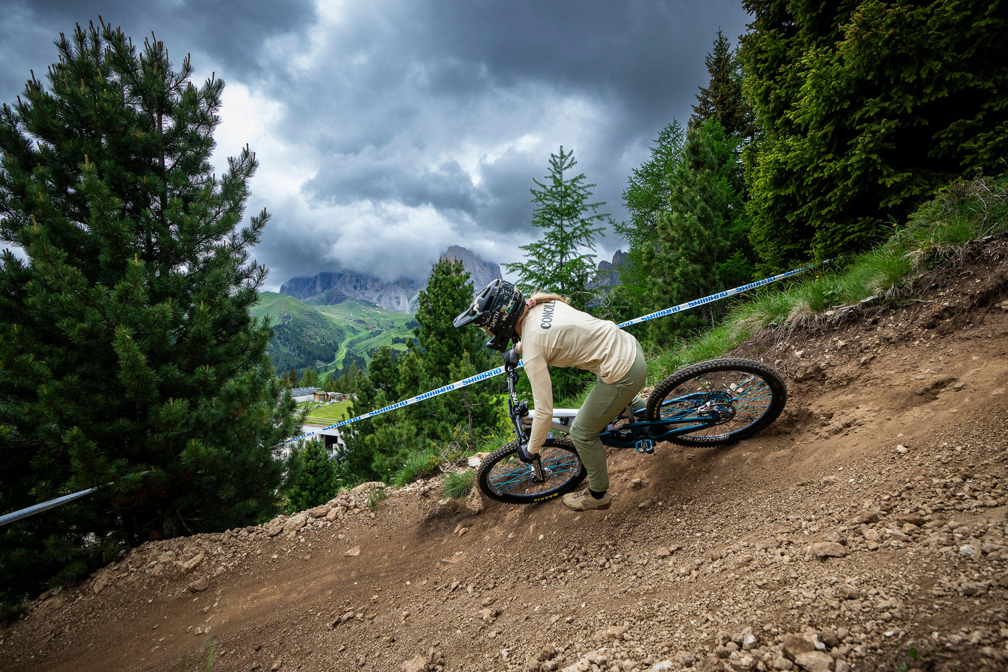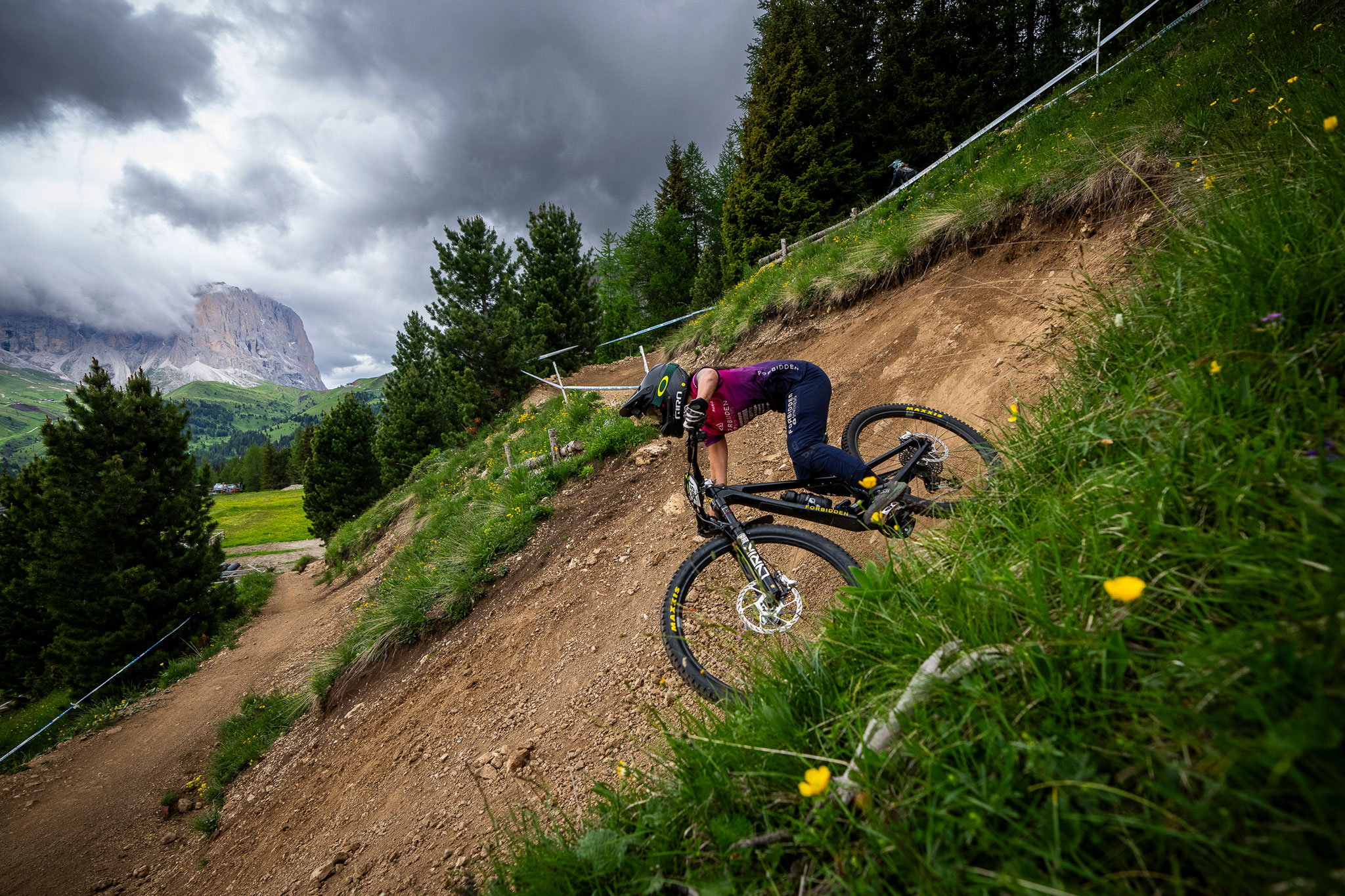 Troisième week-end de course en quatre semaines pour les meilleurs enduristes de la planète. Après Pietra Ligure début juin puis Leogang la semaine dernière, la coupe du monde d’enduro se posait à Val di Fassa, dans le nord-est de l’Italie, au coeur des majestueuses Dolomites. Probablement le cadre le plus sompteux de toute la saison ! Au programme : cinq belles spéciales physiques allant de 1,2 km à plus de 5 km, 41 kilomètres et 2800m de dénivelé négatif pour seulement 1250 m de dénivelé positif grâce aux remontées mécaniques.