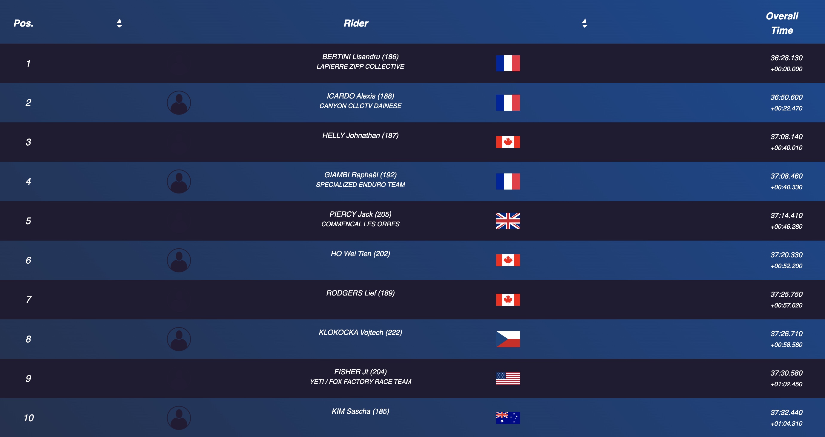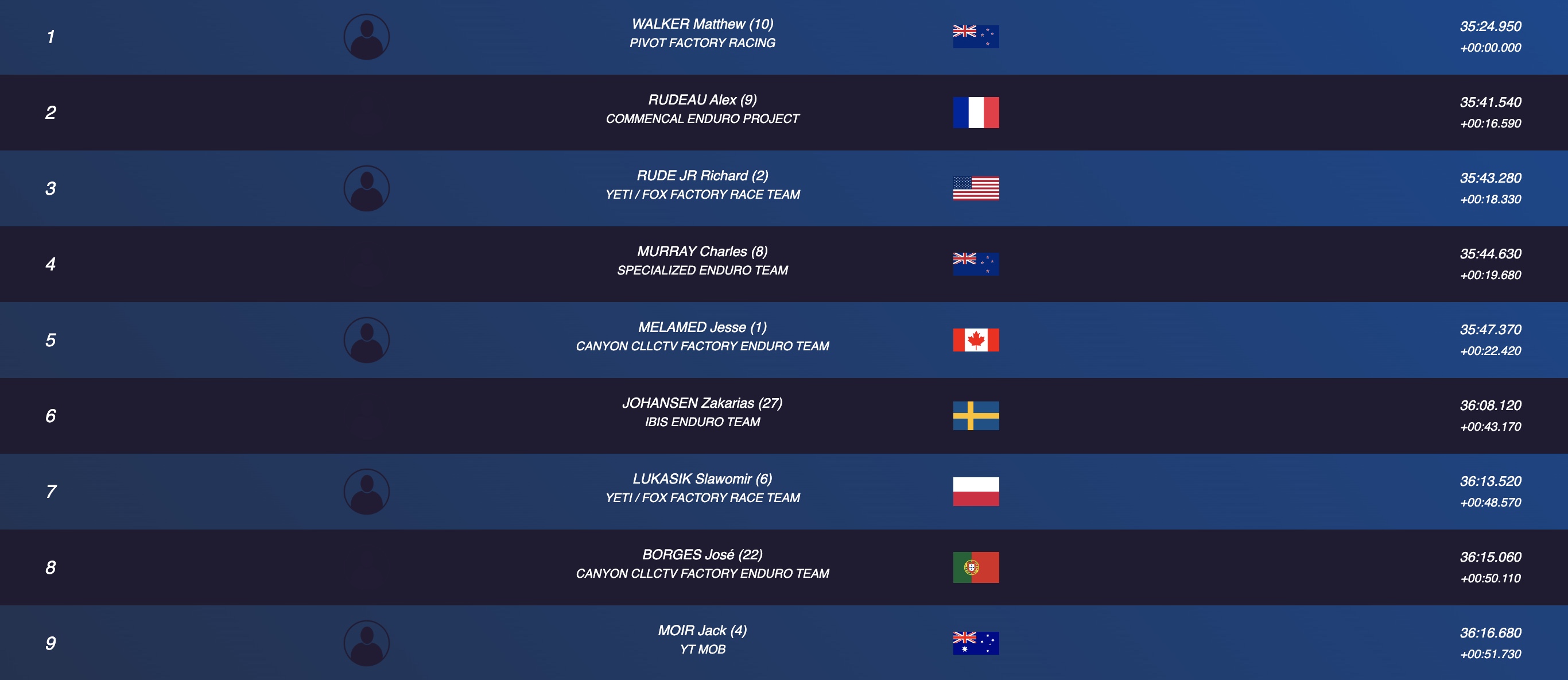 Pour compléter le top 5, on retrouve le champion en titre, Jesse Melamed, plutôt régulier mais qui a perdu quelques dizaines de secondes dans la longue SP4.