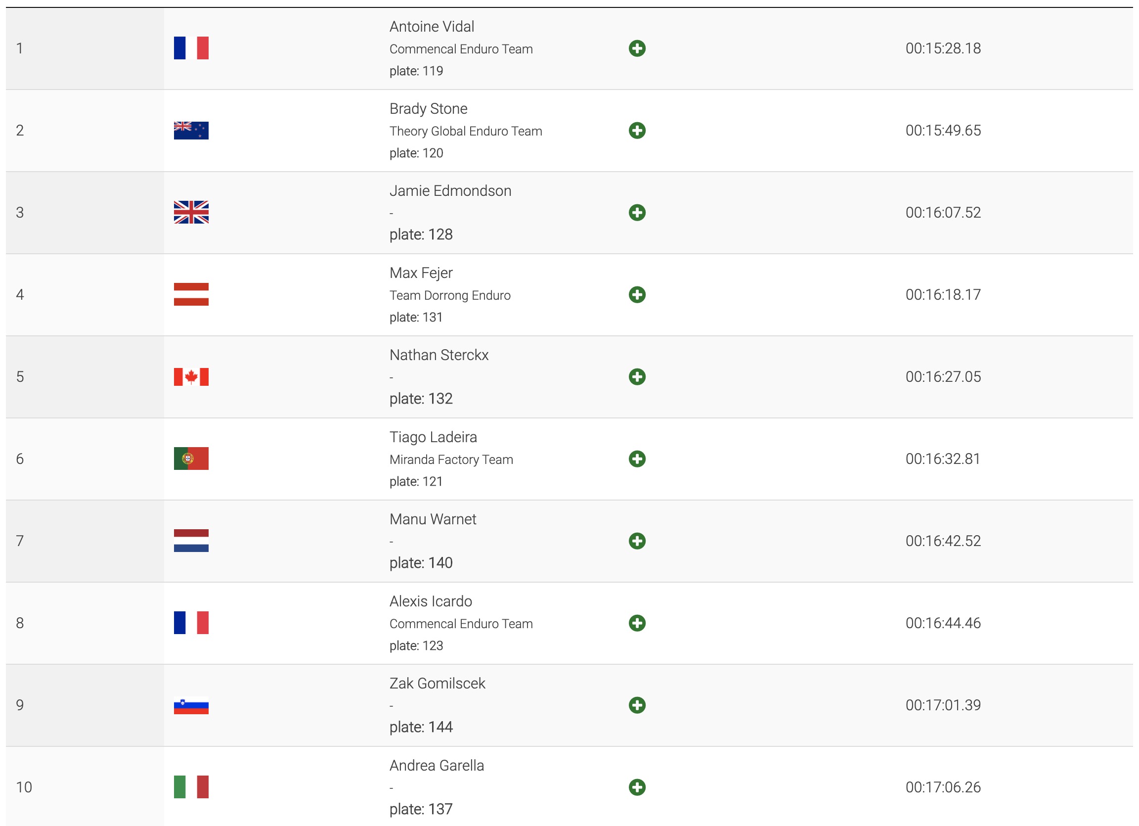 Robin Wallner et Elliott Heap ont quant à eux perdu leur lutte pour le podium face à Martin Maes et terminent respectivement 6e et 7e. Le top 10 final est complété par Mathew Stuttard, Louis Jeandel – 2e Français ! – et Vid Persak. Alex Rudeau impressionne avec une belle 11e place, tout comme Guillaume Larbeyou, 16e. Au rayon des déceptions françaises, on retiendra la 13e place de Flo Nicolai, la 23e de Damien Oton, la 33e de Thomas Lapeyrie, la 47e de Kevin Miquel ou encore la 89e d’Adrien Dailly, victime de pépins mécaniques comme de nombreux pilotes…
