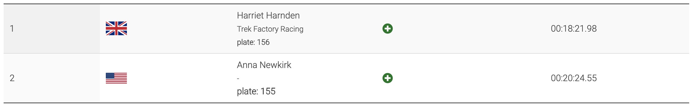Chez les Dames U21, c’est Harriet Harnden qui l’emporte devant son unique concurrente, Anna Newkirk.