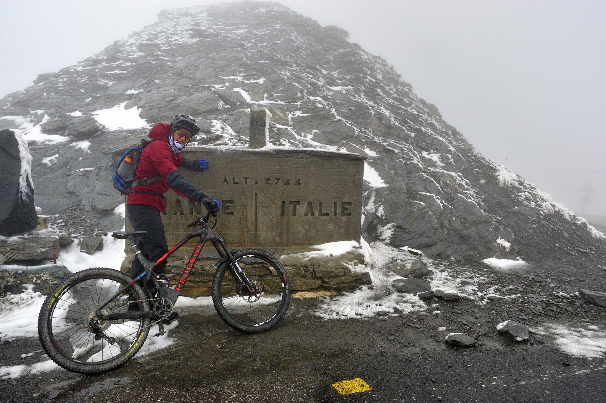 Le lendemain, les nuages s’amoncellent de plus en plus : dans le col Agnel, je distingue à peine la pente, frisant les 11%. 8 km d’ascension où je me bats contre la dure loi de l’attraction des Maxxis qui collent à la route. Ce col était l’une des sorties naturelles du Queyras où les échanges commerciaux et culturels s’effectuaient naturellement vers le Piémont, la seule vraie échappatoire. Paradoxalement, il était plus aisé de franchir ces passes que les gorges du Guil, bien plus dangereuses : la route les surplombant ne fut construite qu’en 1855. En montagne, les vraies frontières ne sont pas toujours celles délimitées par les crêtes mais celles établies entre les hommes, entre ceux de la montagne et ceux de la plaine…