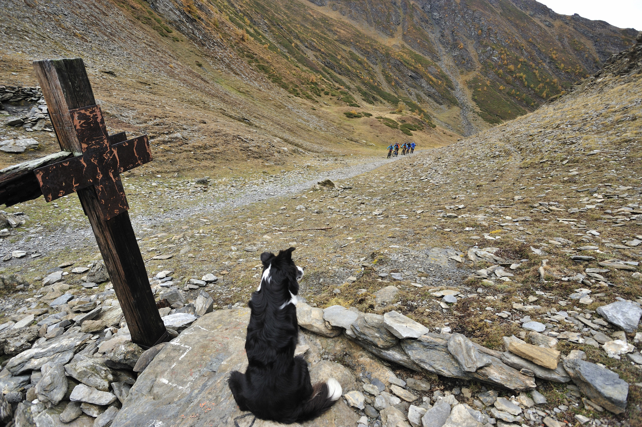 Au col, Vincent, Xavier et Bastien emprunteront le chemin des 3 Lacs et le col Vieux pour rejoindre, via un des plus beaux singles trails, L’Echalp. Transi, je file de mon côté sur les pentes du col Agnel, vidé de ses voitures : ce 10 octobre fut le dernier jour ouvert du col. J’en profite pour prendre toute la largeur et couper les virages. Avec une telle descente, la journée sera courte.