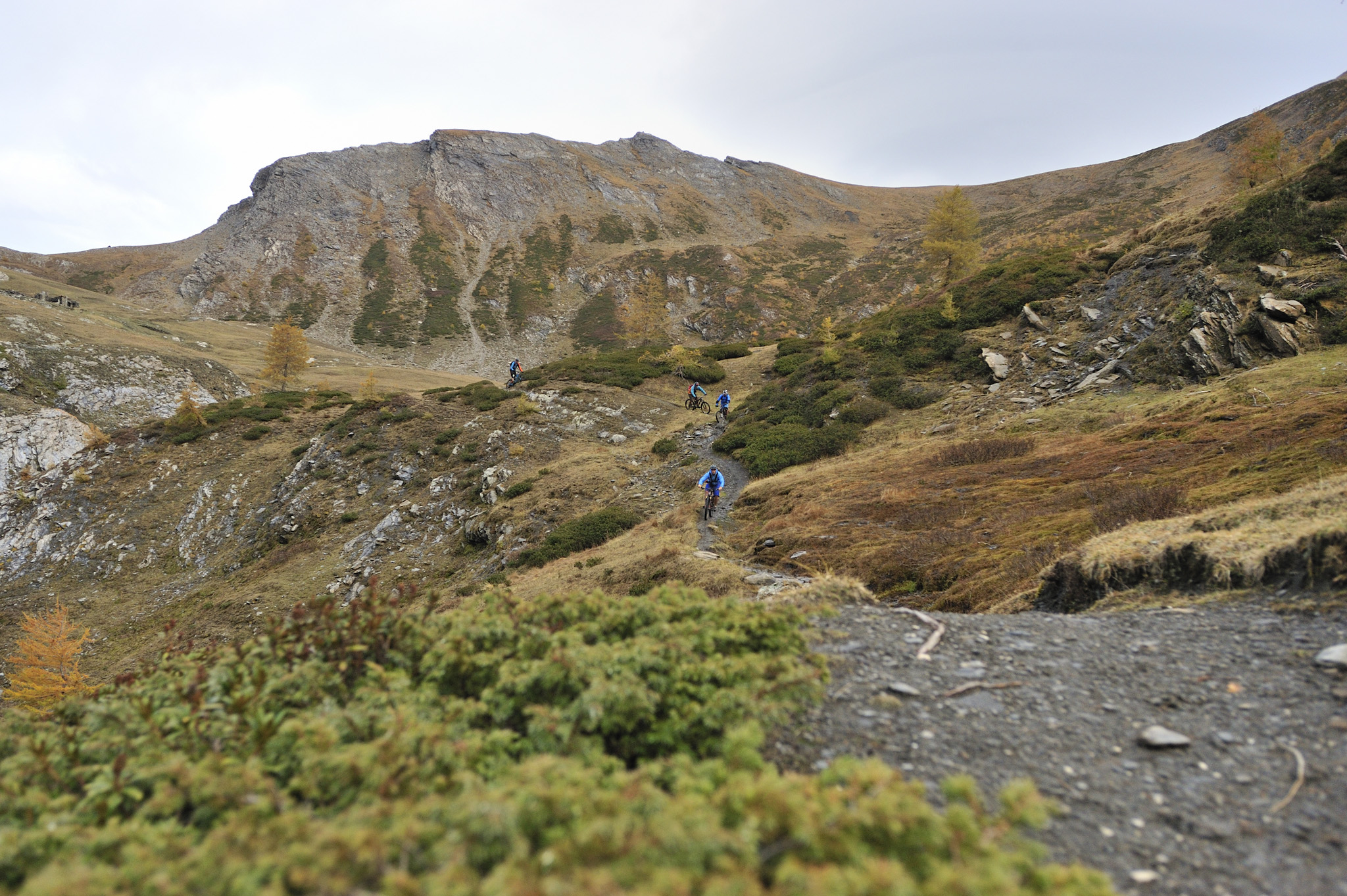 Une longue ascension, avec le bike sur le dos : telle est l’acceptation du pur VTT dans le Queyras.
