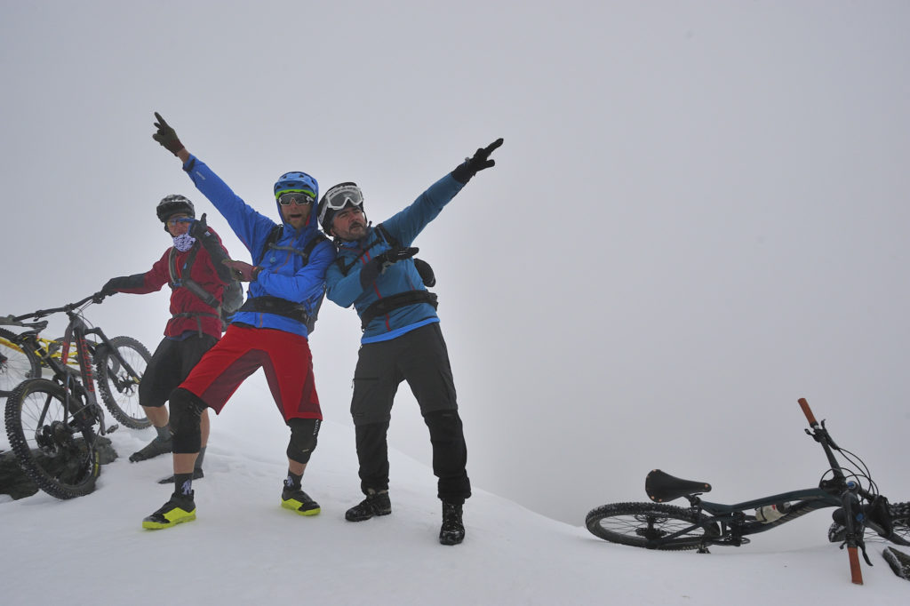 A 2950 m, Vincent en premier touche le sommet battu par le vent. Le périple prend de la hauteur et flirte avec la haute montagne.