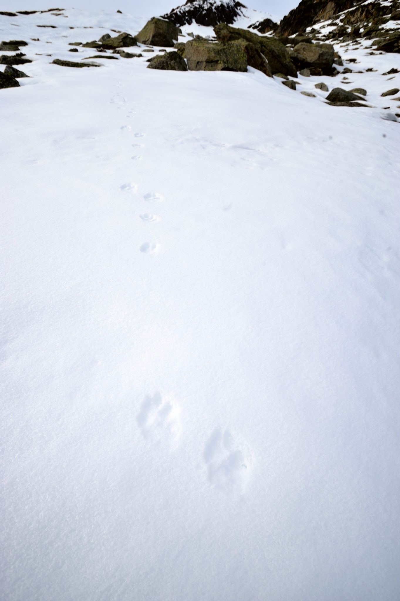 Vision de la vie sauvage quand nous apercevons ces empreintes à plus de 2600 m : chien sauvage ou loup ?