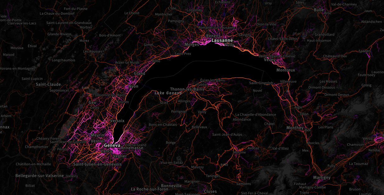 – Les centres urbains et leur périphérie sont les endroits les plus fréquentés, ce qui est assez logique puisque c’est là que la densité de population est la plus grande. Mais aussi parce que l’application Runkeeper est peu utilisée par les vttistes.