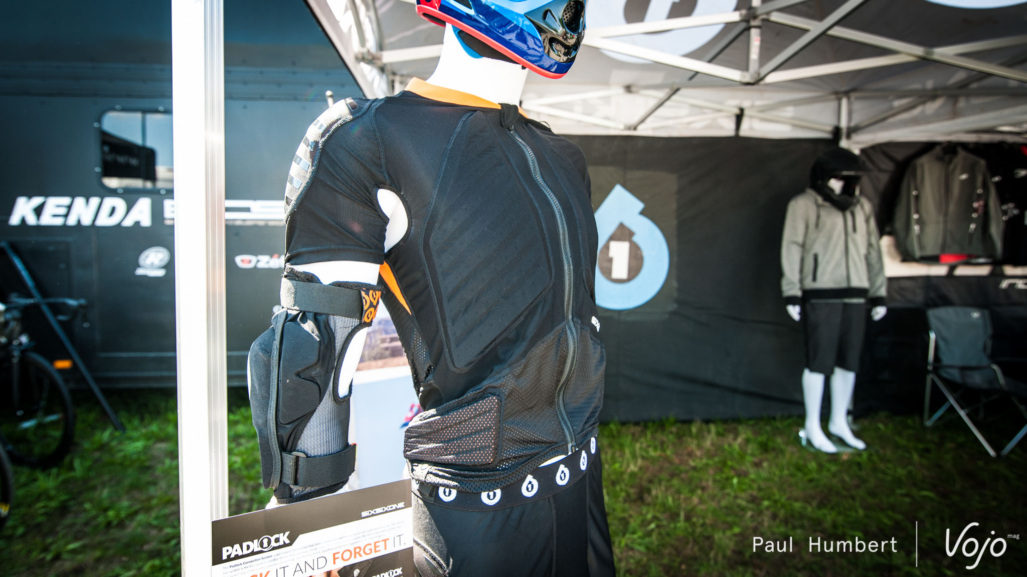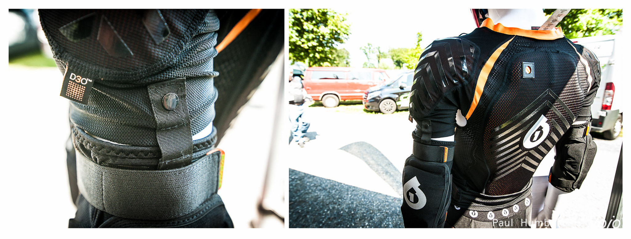La protection de l’abdomen est constituée de mousse EVA taillée en V afin de ne pas gêner le pilote quand ce dernier se penche en avant. La veste existe également en manches longues mais il est possible de « clipser » les coudières de la marque sur ce gilet.